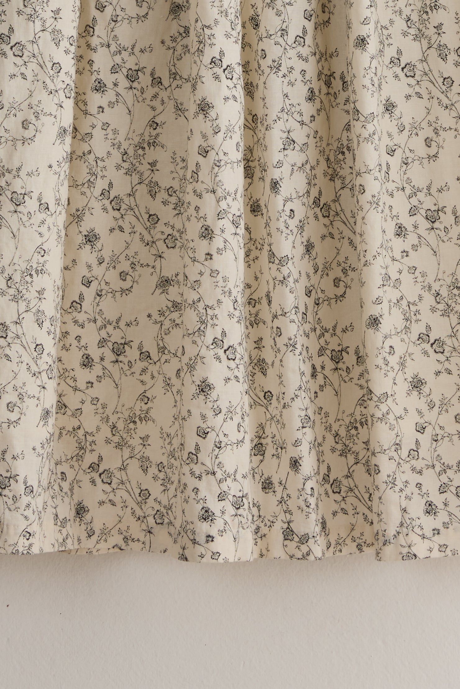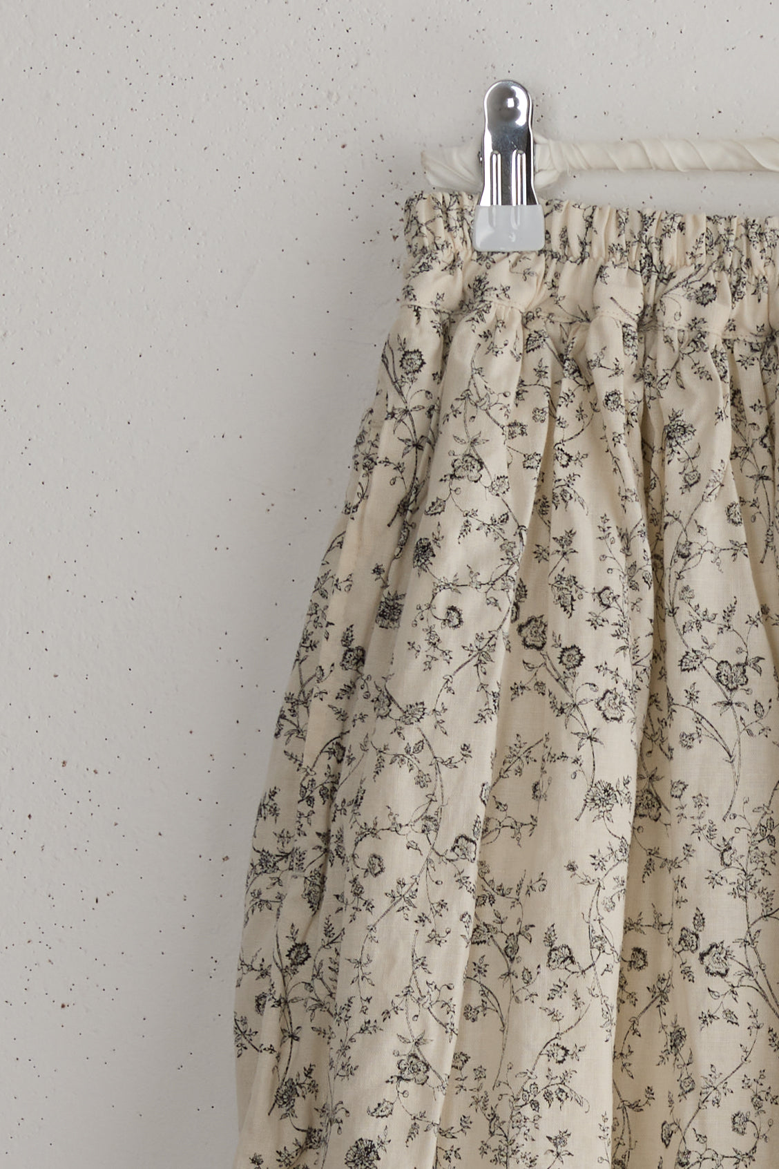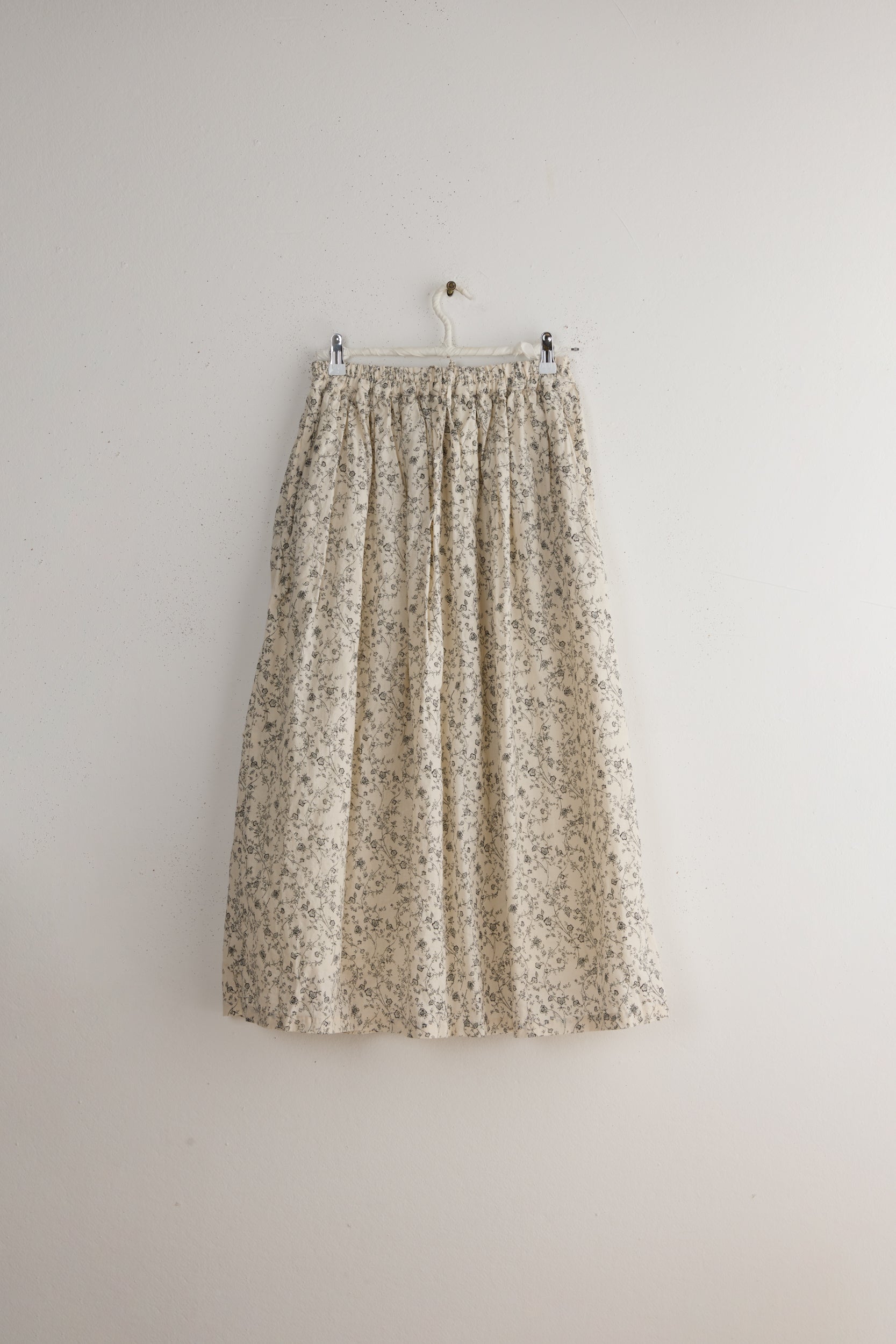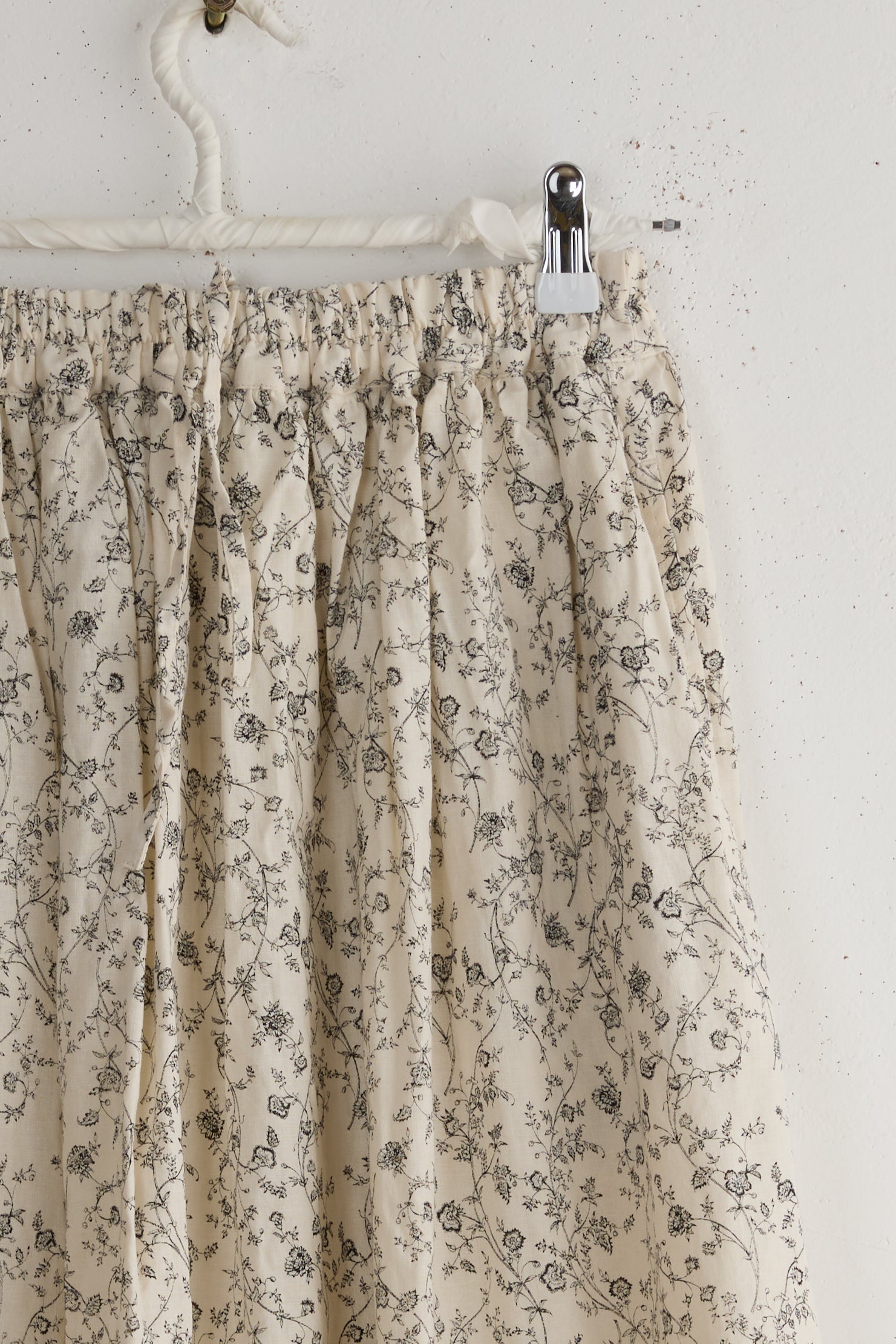 L\C flower skirt by Ichi Antiquités. A long, voluminous printed skirt made from a breathable cotton linen fabric. Features an elastic waist, side seam pockets and a delicate floral print. lined. Measurements: waist 35 cm, length 89 cm.