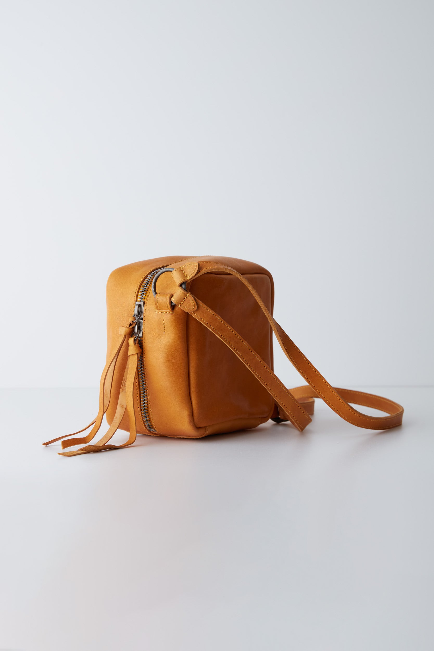 Tagliovivo’s Camera cube bag is a high-quality unisex leather handbag. Rectangular shaped with zipper closure and small inner pocket. Two straps, one short, for hand carrying, and one long, adjustable for crossbody. Loosely tied leather cords facilitate the opening and closing of the zip. made in Italy with traditional Tuscan craftsmanship.