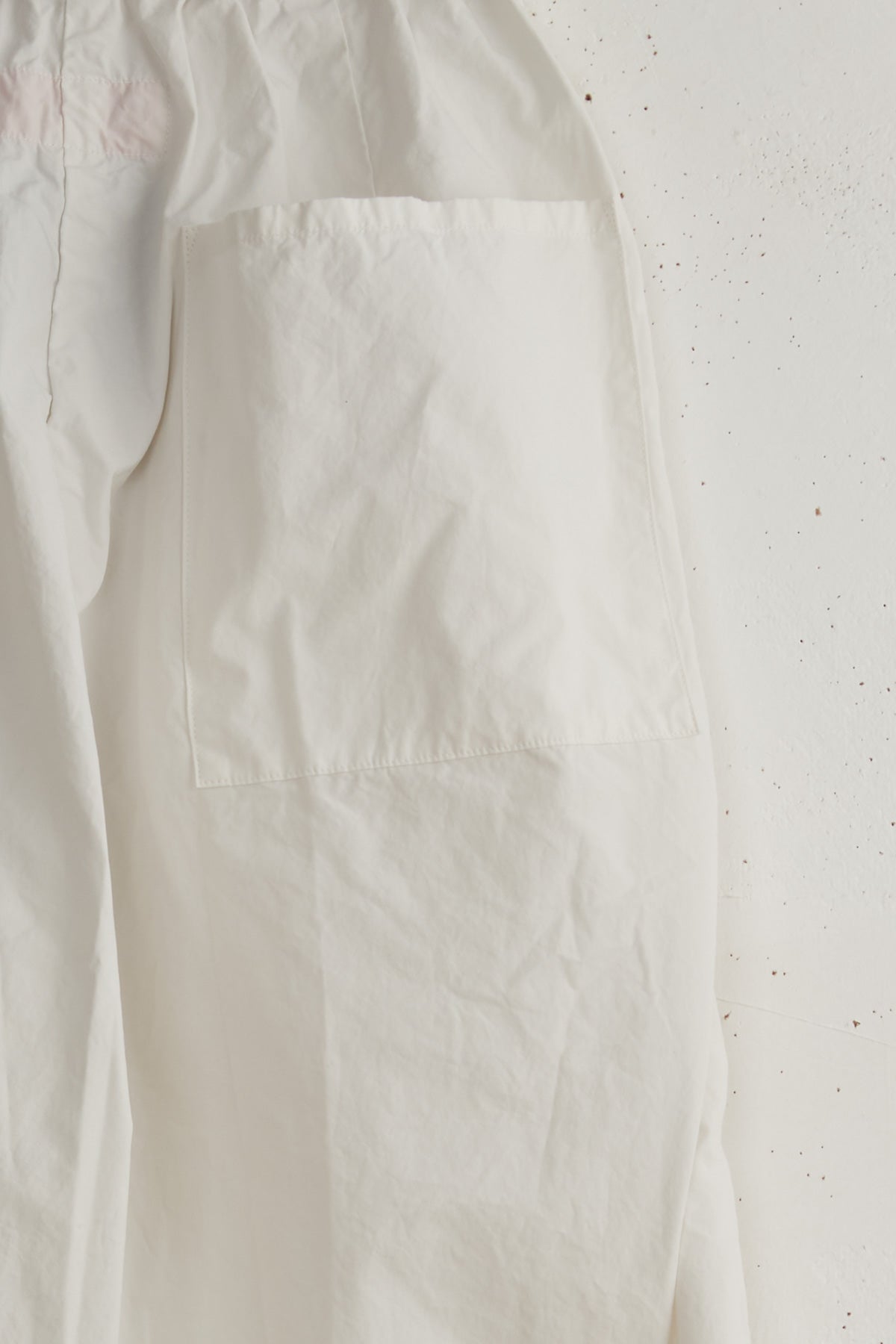 Cool Pants Noma H by Manuelle Guibal. Relaxed and comfortable long pants made of a crisp semi-thick cotton. Tapered leg, elastic waist, Horn buttons, false fly, side pockets and patch pockets behind.