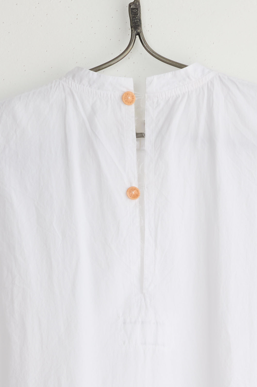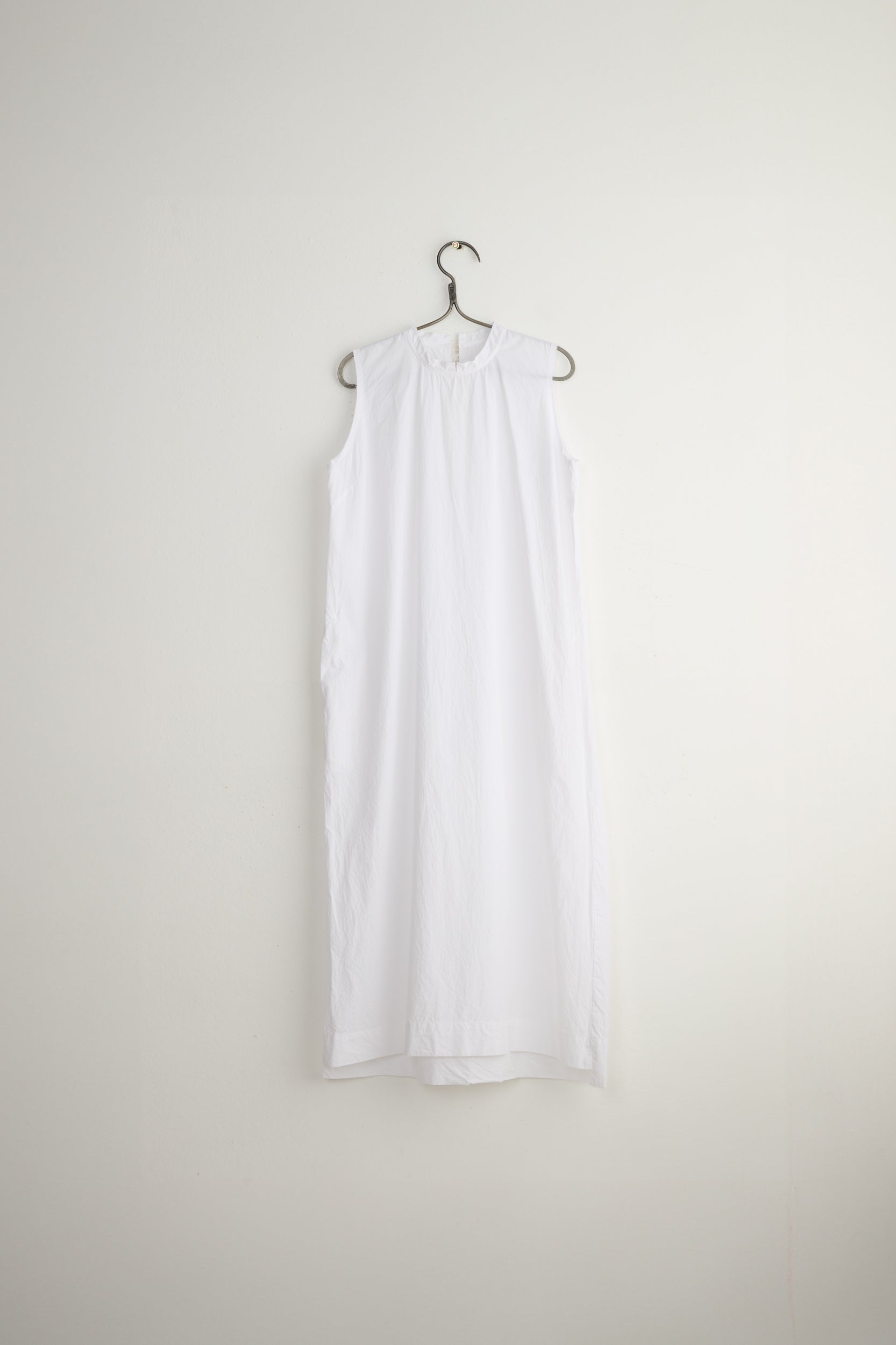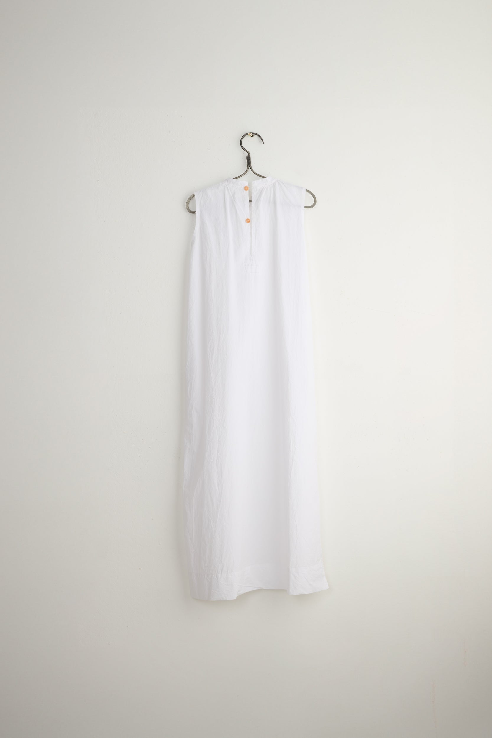 Andrea dress by Maya Zukerman is a breezy full length sleeveless dress made of thin Japanese paper cotton. Details include a split mandarin collar with a buttoned back slit, side seam pockets and wide hems. Relaxed slightly oversized fit.