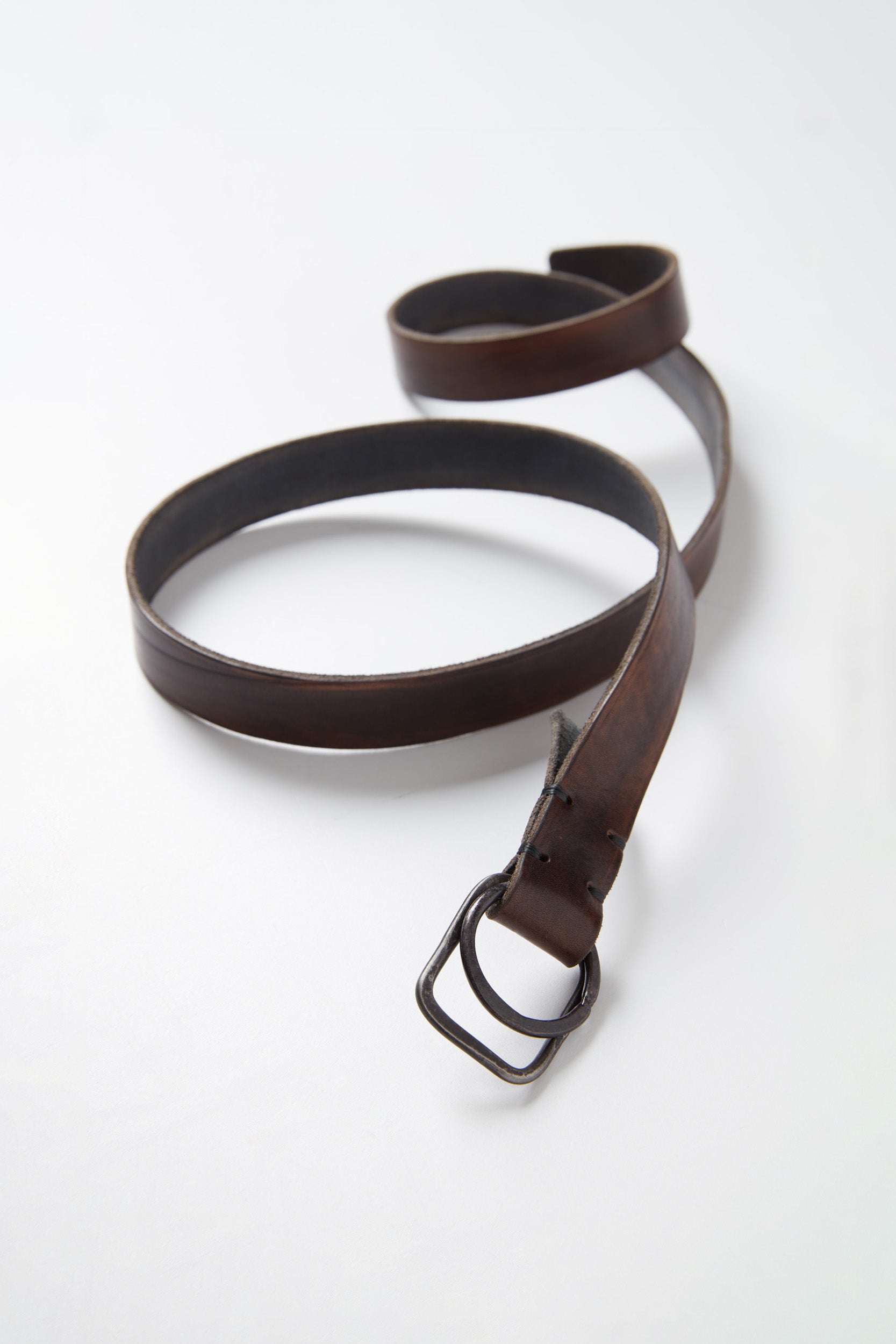 Tagliovivo’s Anello belt. A naturally tanned uneven horse leather belt with a pair of different shaped Hand hammered buckles made from antique metal. Made in Italy with traditional Tuscan craftsmanship.