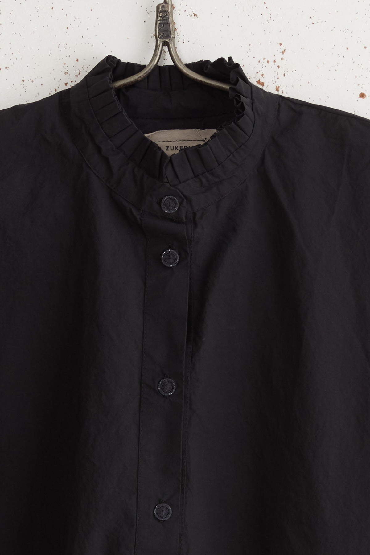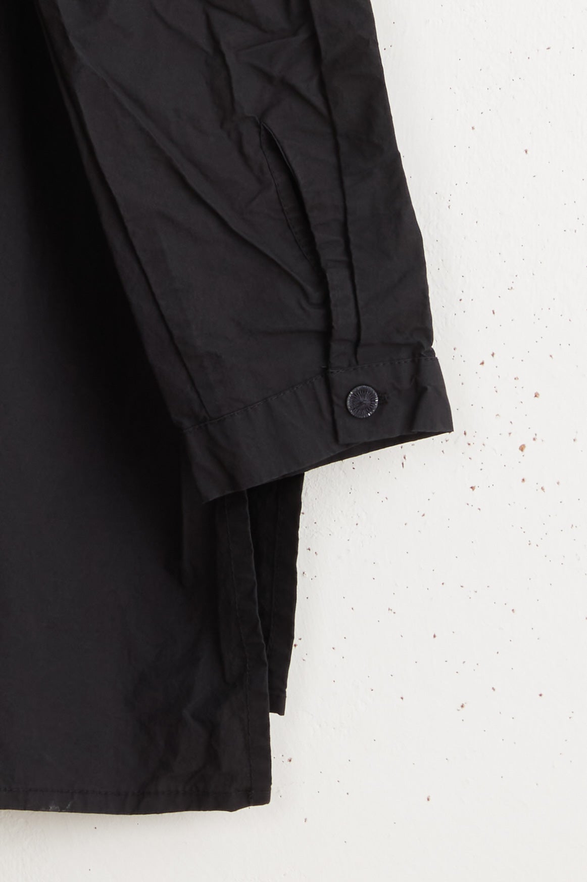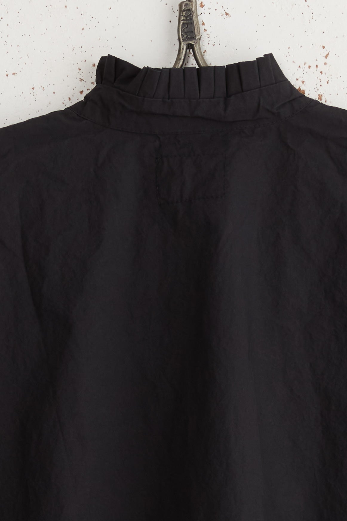 Anthony SLV shirt by Maya Zukerman is a light and crisp collar shirt made of 100% Japanese paper cotton. An oversized fit with a hand-stitched pleated stand collar. Deep, semi-closed side slits, slightly shorter on the front, hand-dyed Dorset button closure, and dropped shoulder.