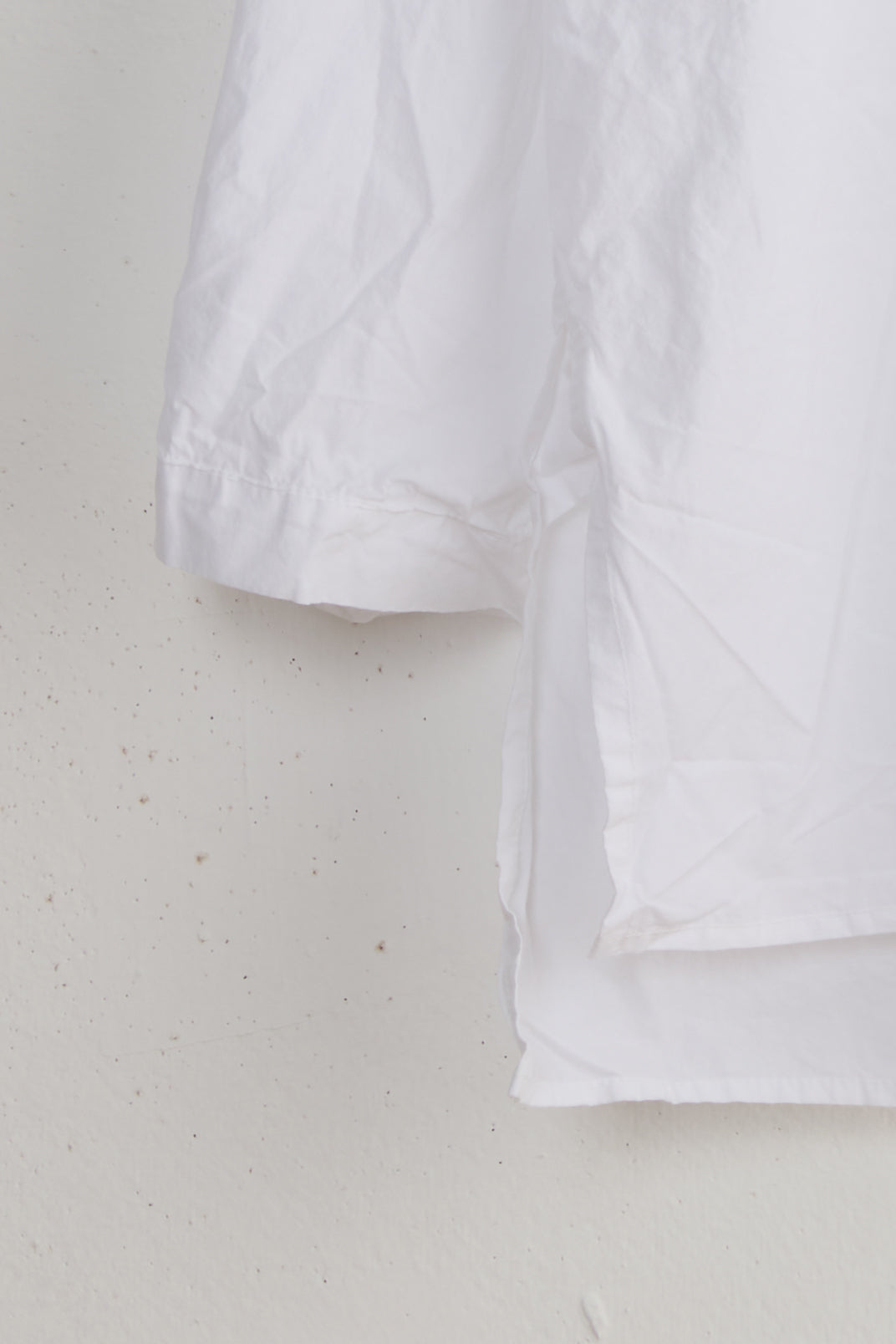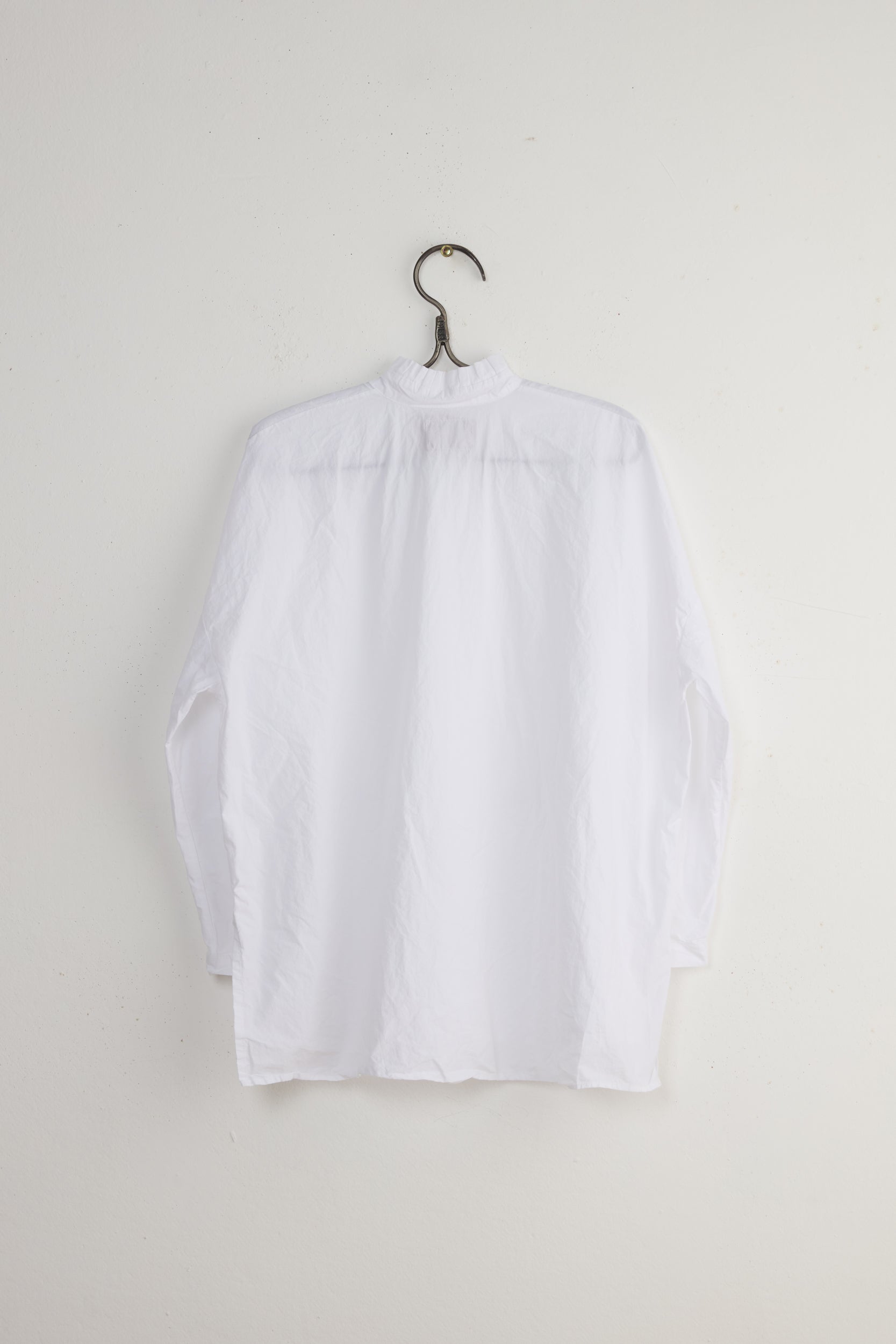 Anthony SLV shirt by Maya Zukerman is a light and crisp collar shirt made of 100% Japanese paper cotton. An oversized fit with a hand-stitched pleated stand collar. Deep, semi-closed side slits, slightly shorter on the front, hand-dyed Dorset button closure, and dropped shoulder.