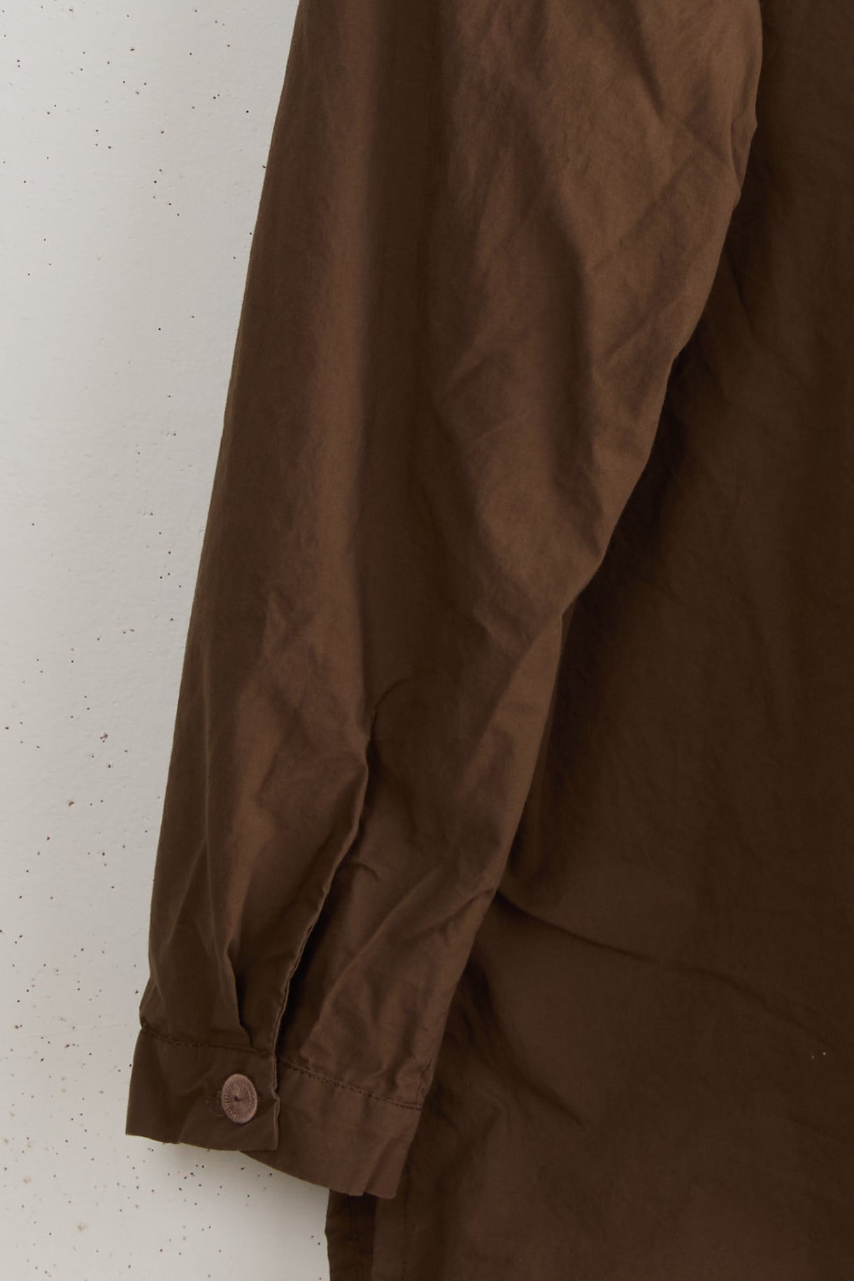 Anthony SLV shirt by Maya Zukerman is a light and crisp collar shirt made of 100% Japanese paper cotton. An oversized fit with a hand-stitched pleated stand collar. Deep, semi-closed side slits, slightly shorter on the front, hand-dyed Dorset button closure, and dropped shoulder.
