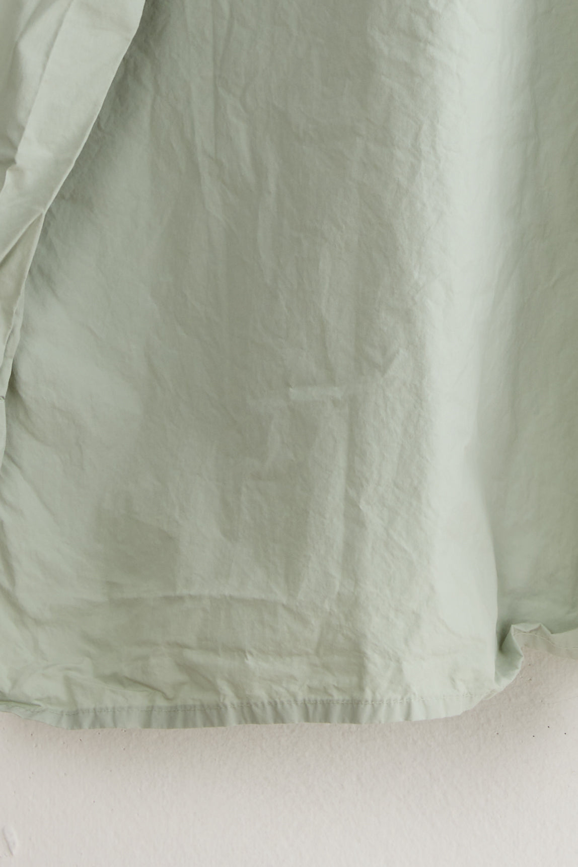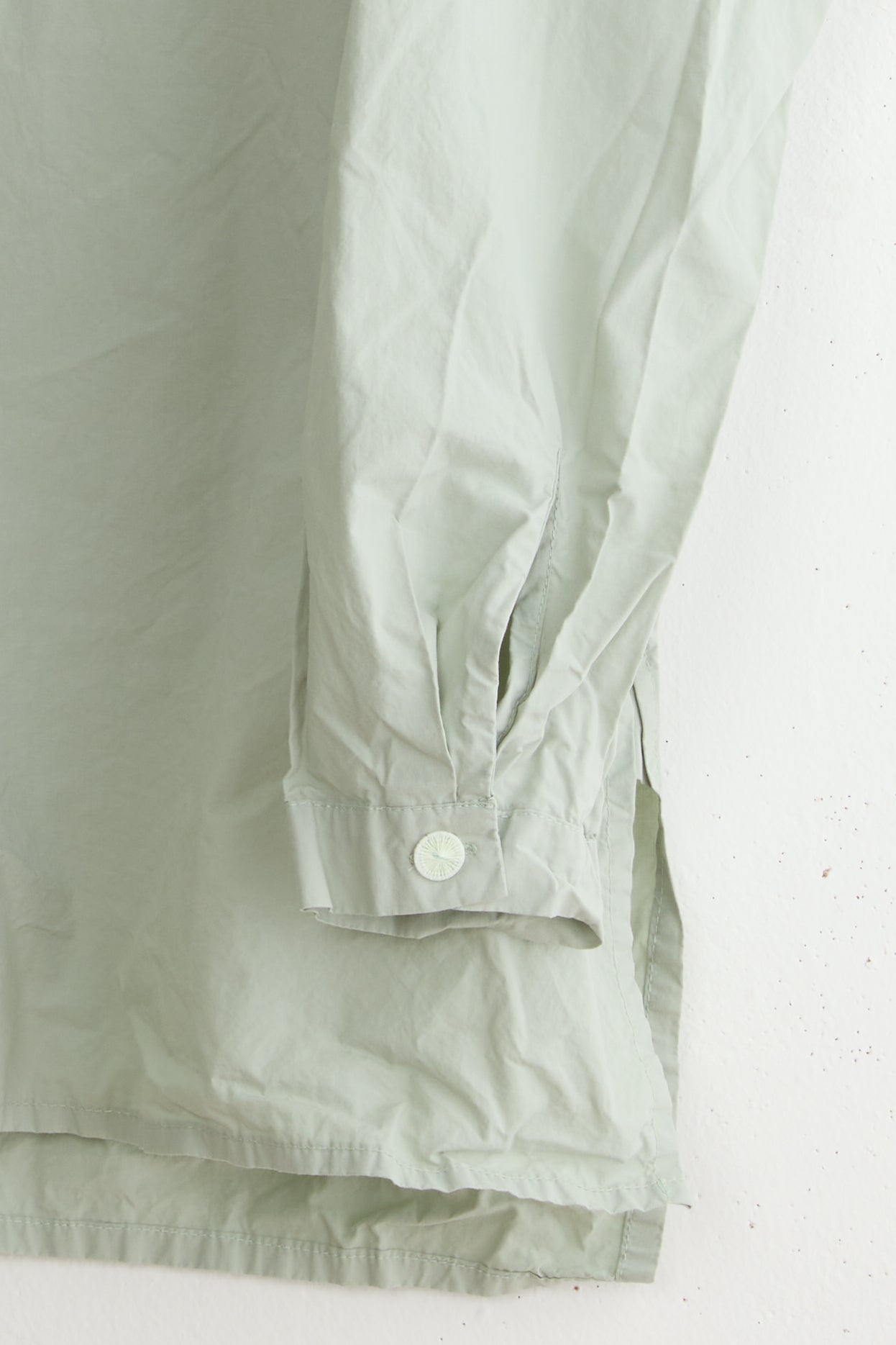 Anthony SLV shirt by Maya Zukerman is a light and crisp collar shirt made of 100% Japanese paper cotton. An oversized fit with a hand-stitched pleated stand collar. Deep, semi-closed side slits, slightly shorter on the front, hand-dyed Dorset button closure, and dropped shoulder.
