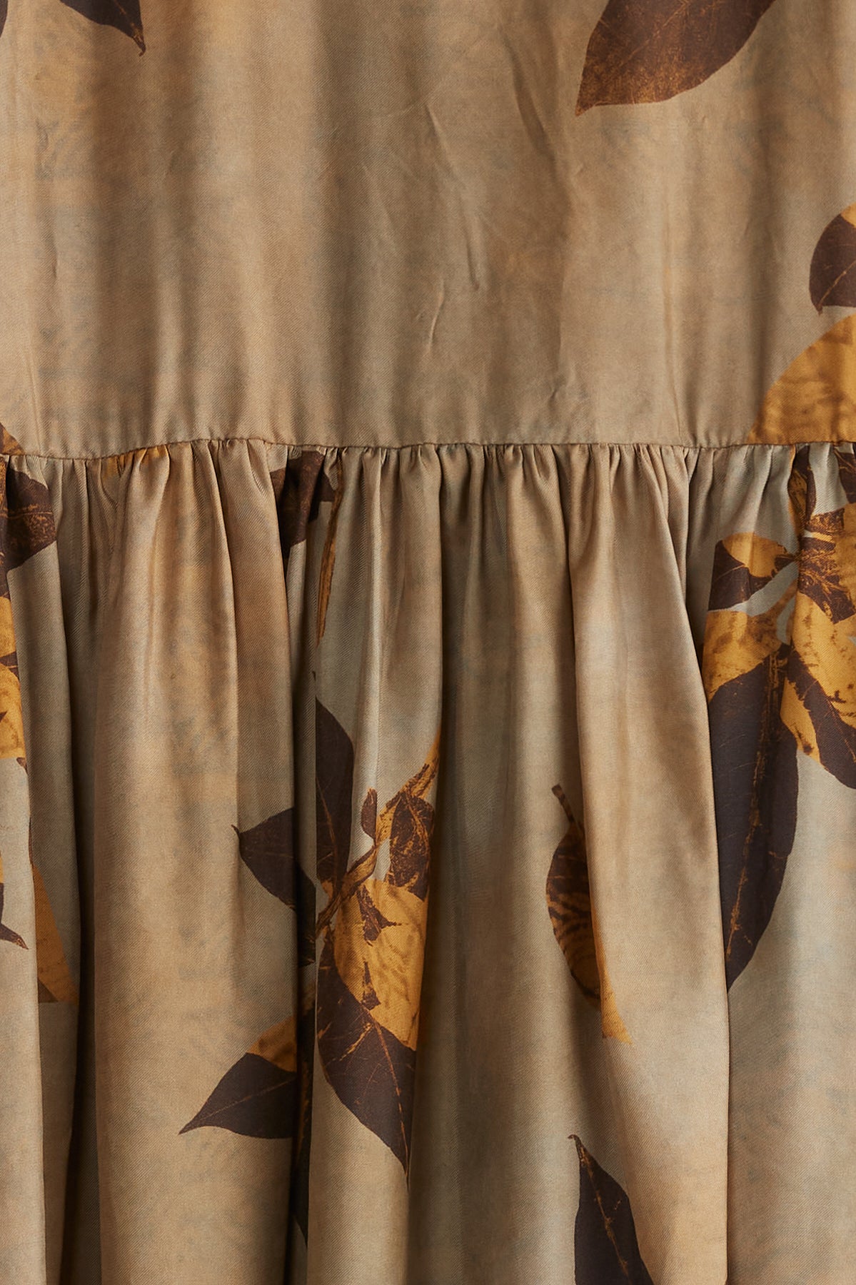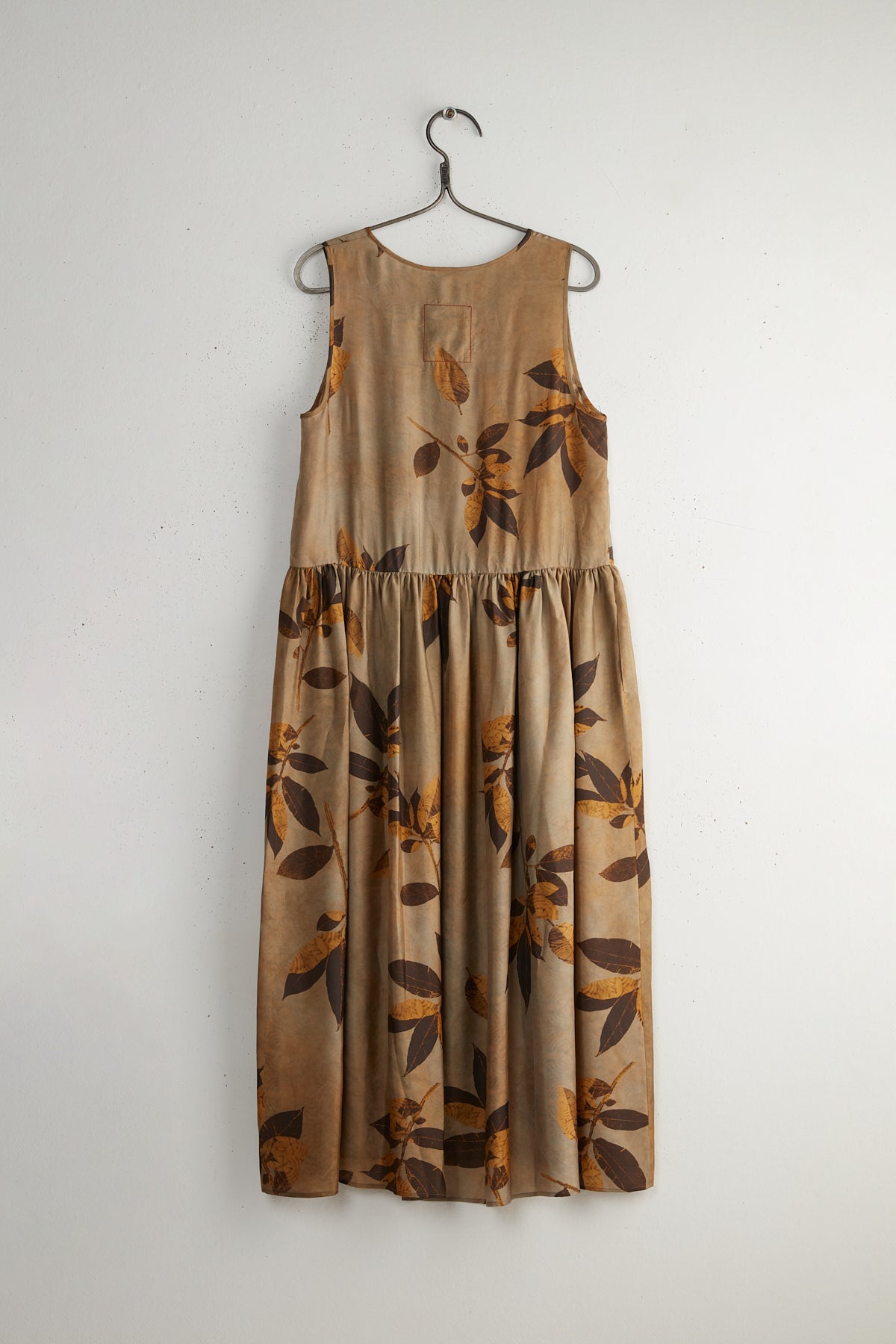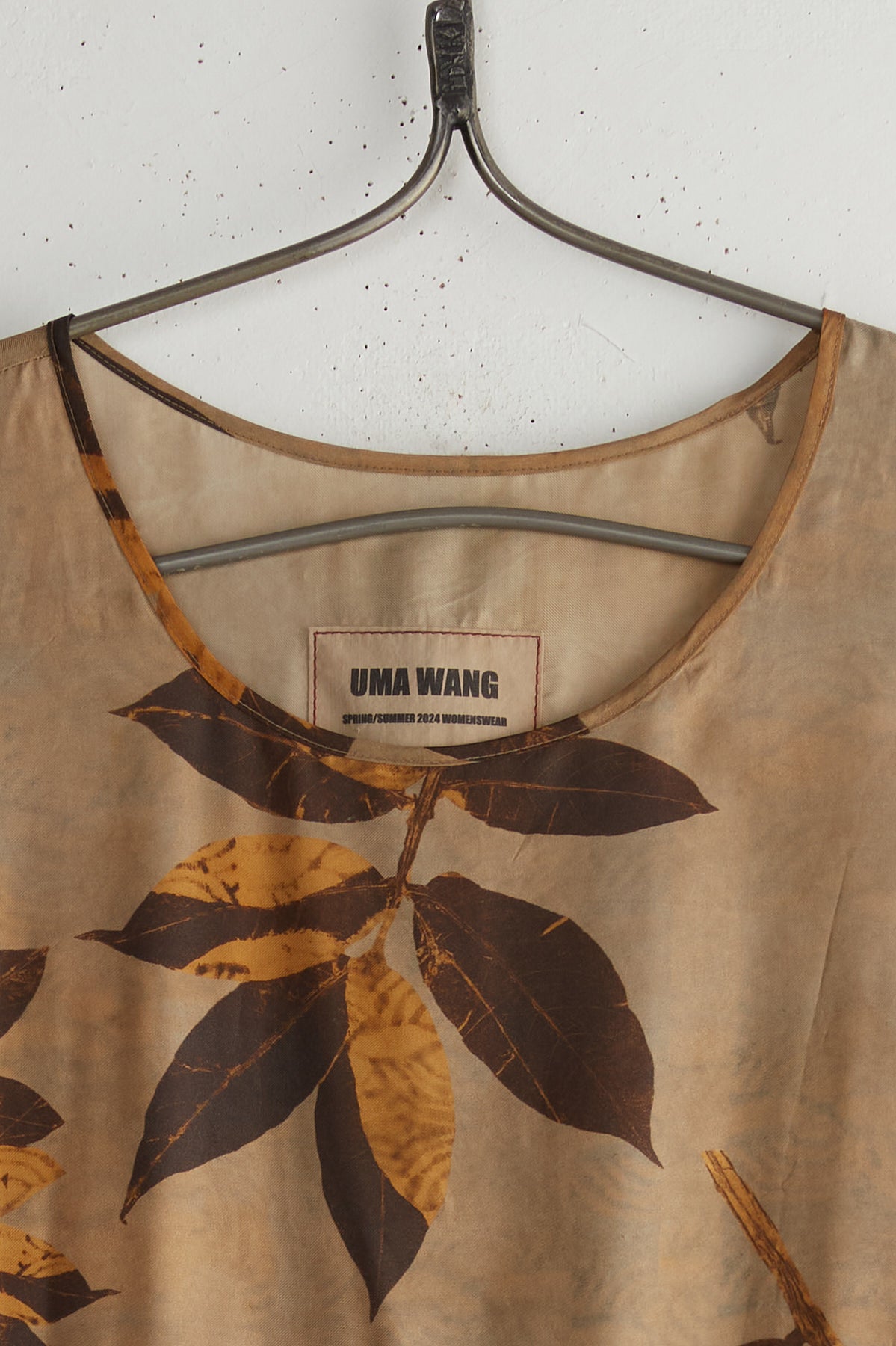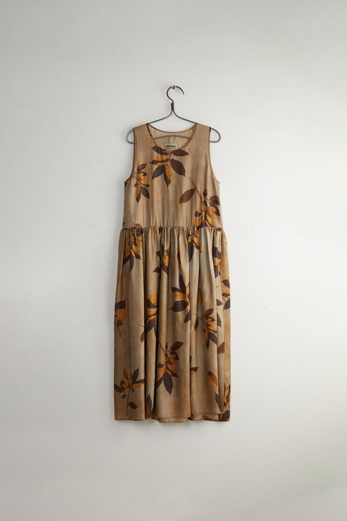 Ardal dress from the house of Chinese designer Uma Wang. Printed full-length sleeveless dress, round neck, and gathered skirt with two side pockets.Straight hem, relaxed fit and a light satin weave fabric.