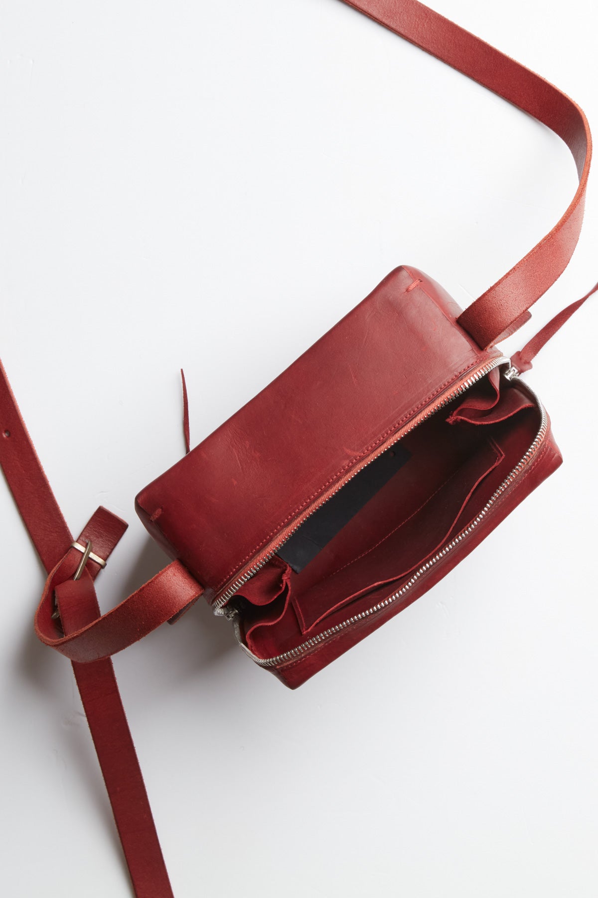 Small Zipped Brief Case bag With Long Strap by m.a+. Handmade in Italy out of cow leather, this is a small-sized shoulder bag with a boxy silhouette. The strap part is designed to be slightly longer, and you can adjust the length by replacing the holes like a belt. The zipper opens wide, making it easy to use, and the wide gusset provides ample storage space. the m.a cross logo is embossed in Silver.