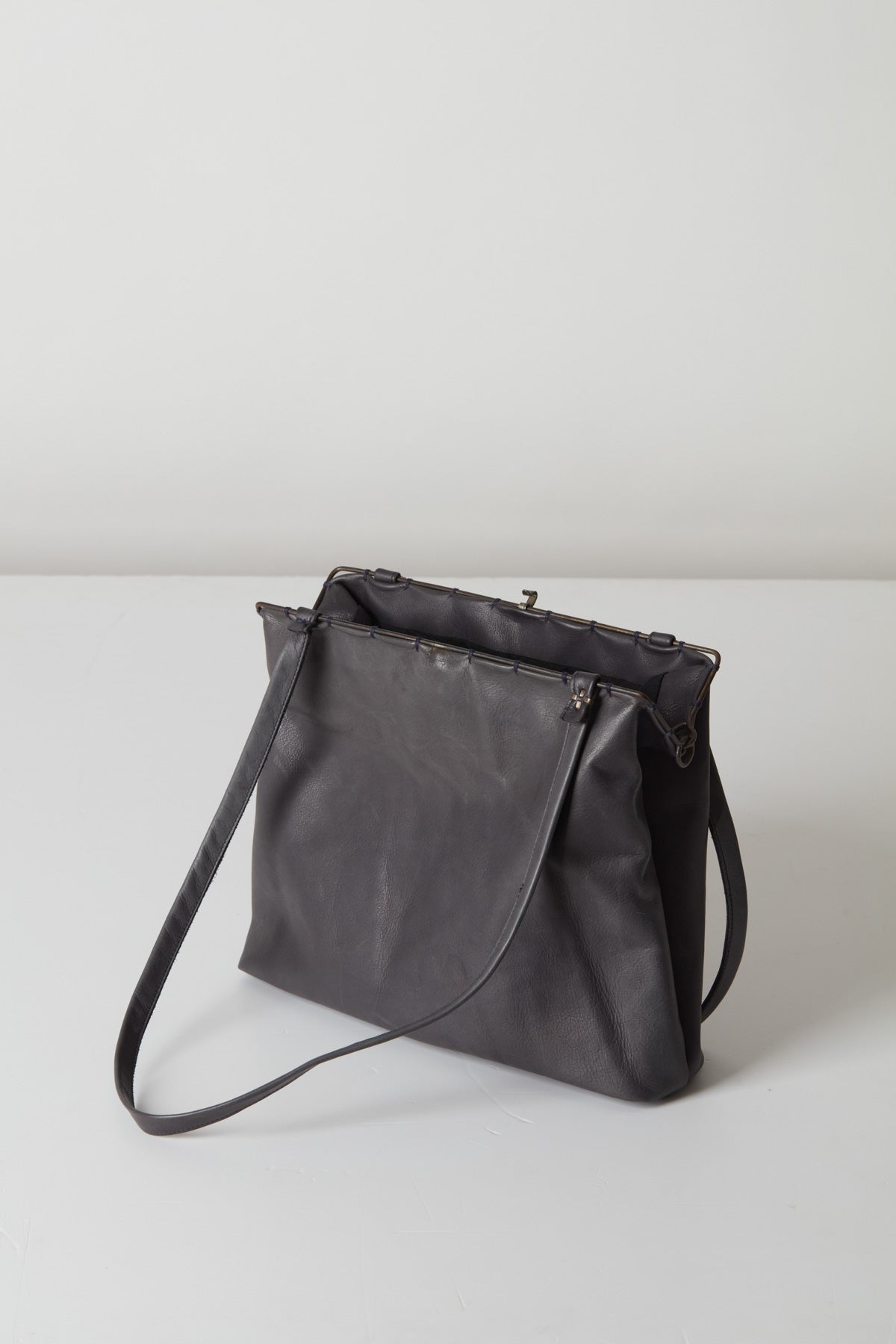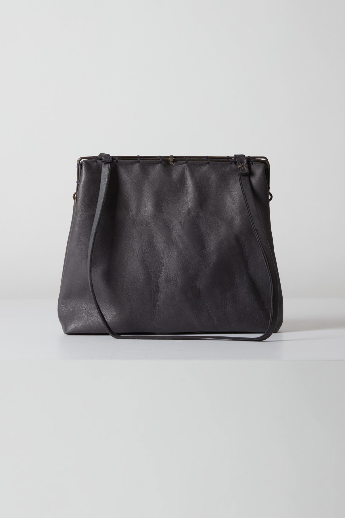 Silver Rim Flat shoulder bag by m.a+. Handmade in Italy out of calf leather, the bag features a rectangular shape with double Hand-stitched leather straps and silver hardware stitched to the rim of the opening. On the straps, the MA cross logo is embossed in Silver.