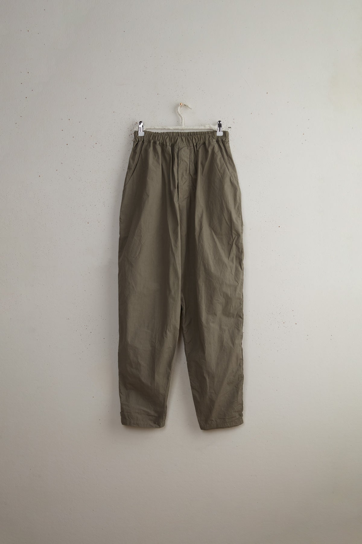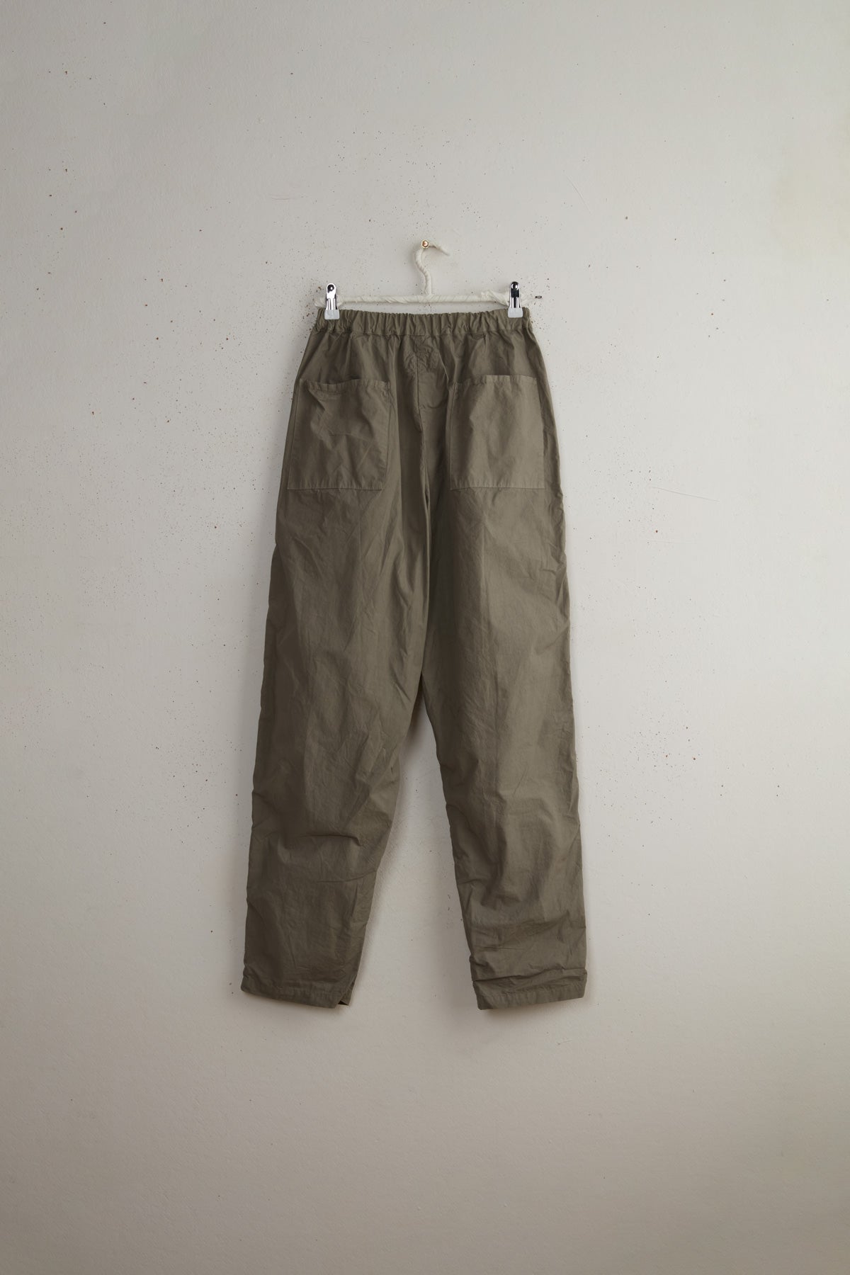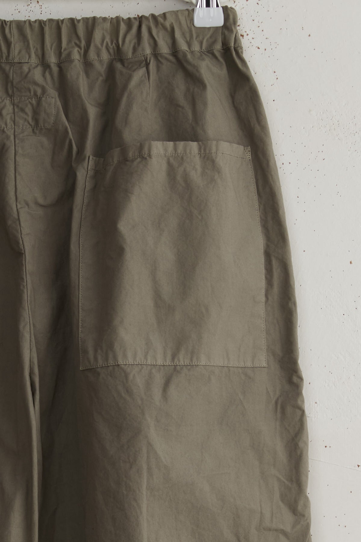 Cool Pants Noma H by Manuelle Guibal. Relaxed and comfortable long pants made of crisp semi-thick cotton. Tapered leg, elastic waist, Horn buttons, false fly, side pockets, and patch pockets behind.