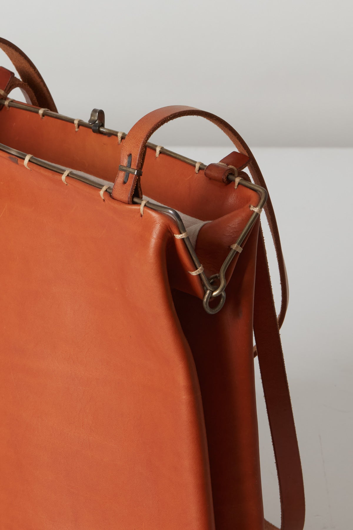 Silver Rim Flat shoulder bag by m.a+. Handmade in Italy out of calf leather, the bag features a rectangular shape with double Hand-stitched leather straps and silver hardware stitched to the rim of the opening. On the straps, the MA cross logo is embossed in Silver.