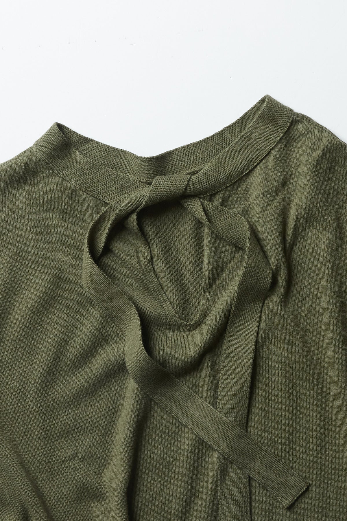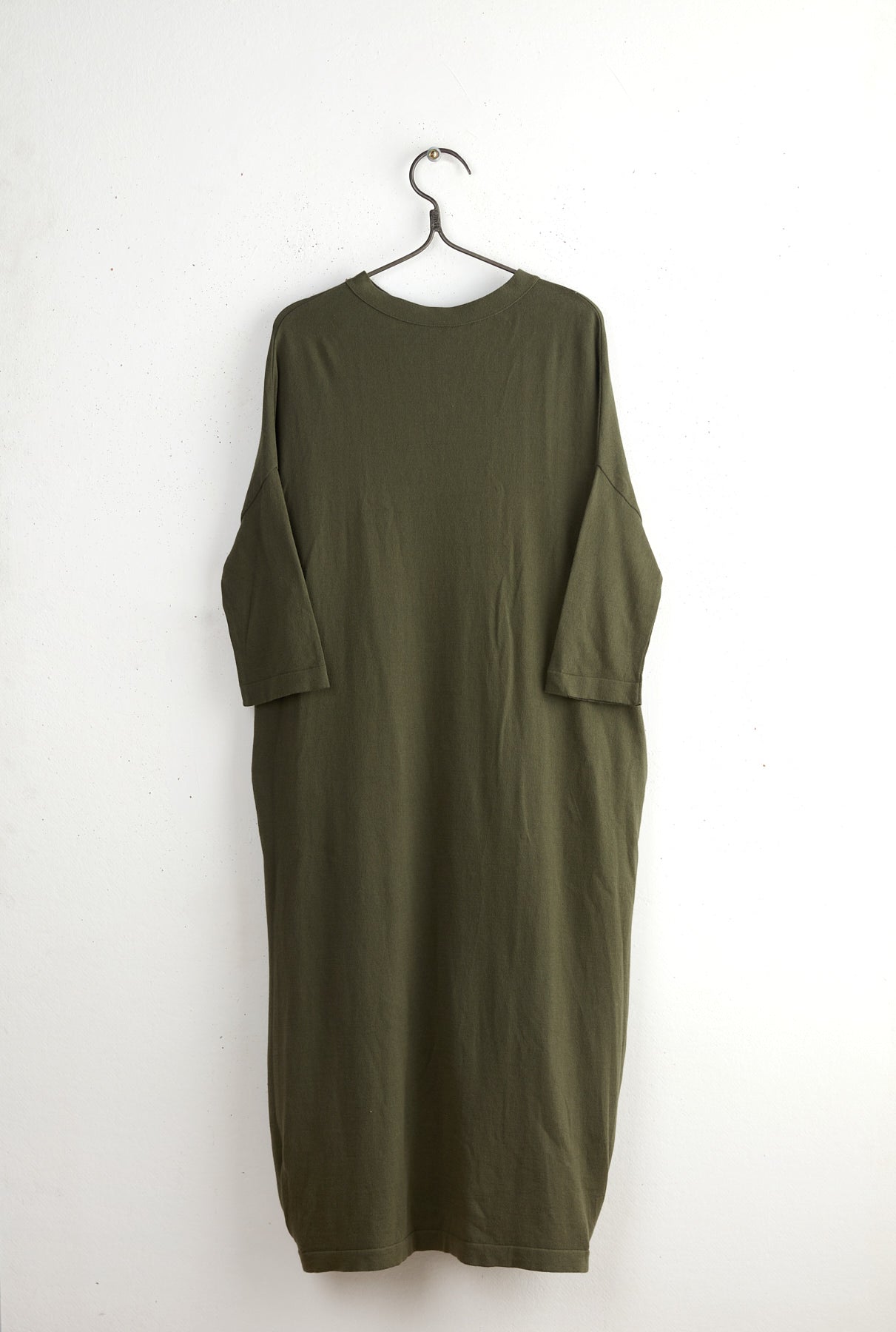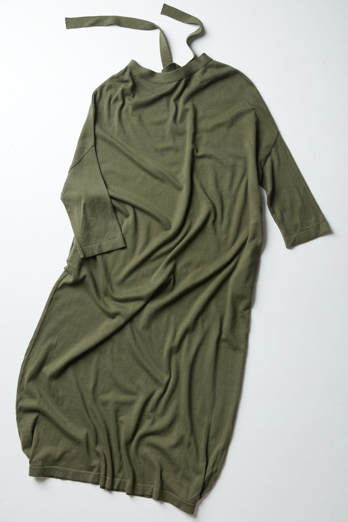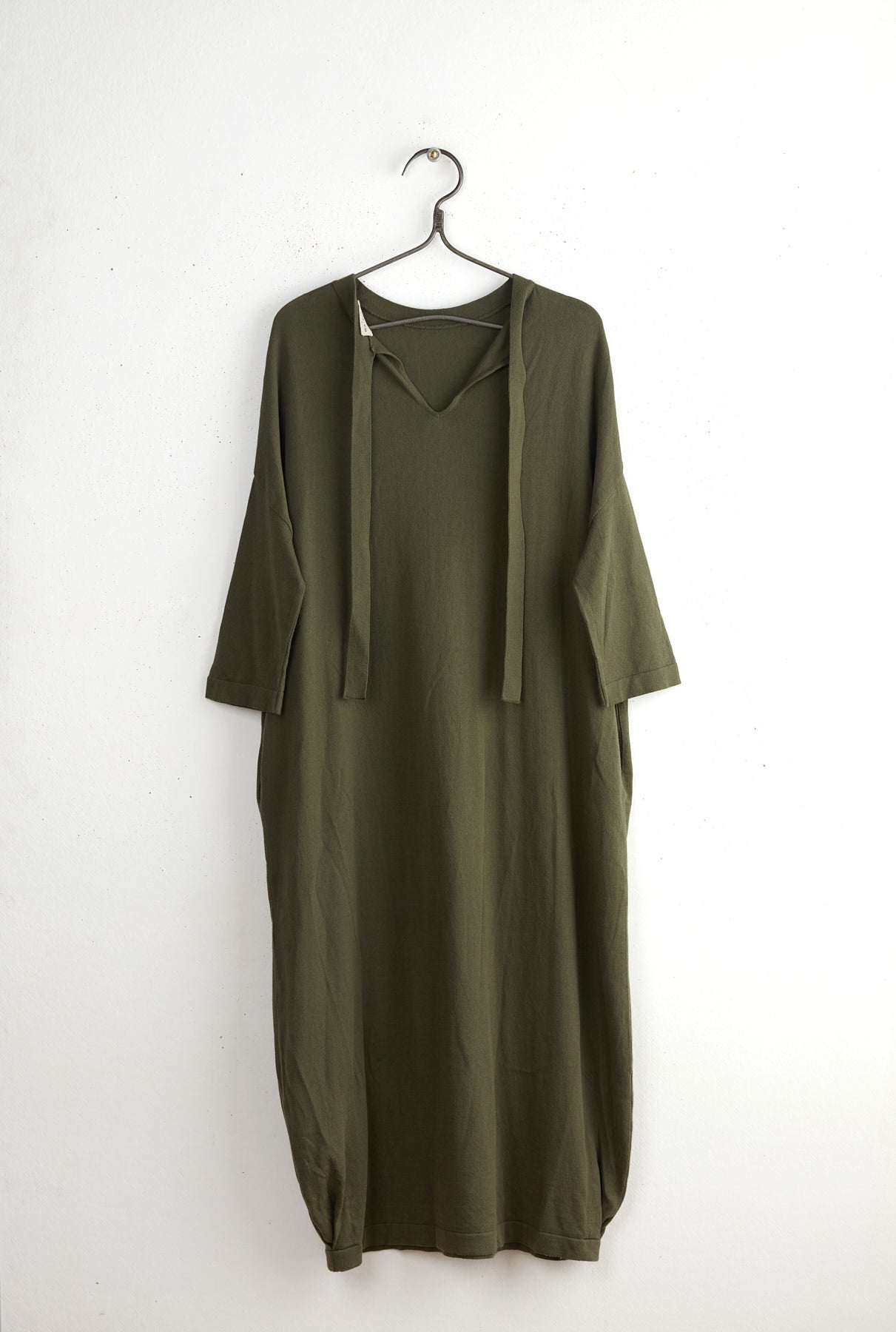 Dress with Ribbon by Italian knitwear brand Ma'ry'ya. made of a soft light Cotton fiber, a cozy, light weight maxi dress with mid-length sleeves and a relaxed fit. Featuring a back slit with ribbon tie closure and a gathered hem creating volume.