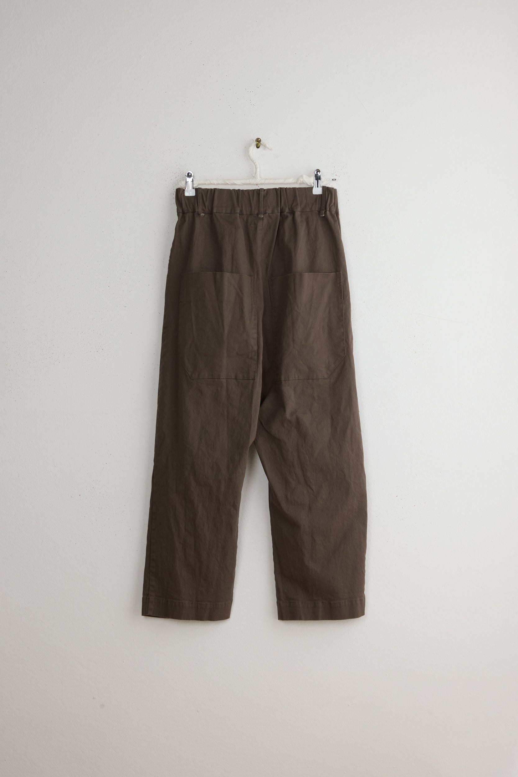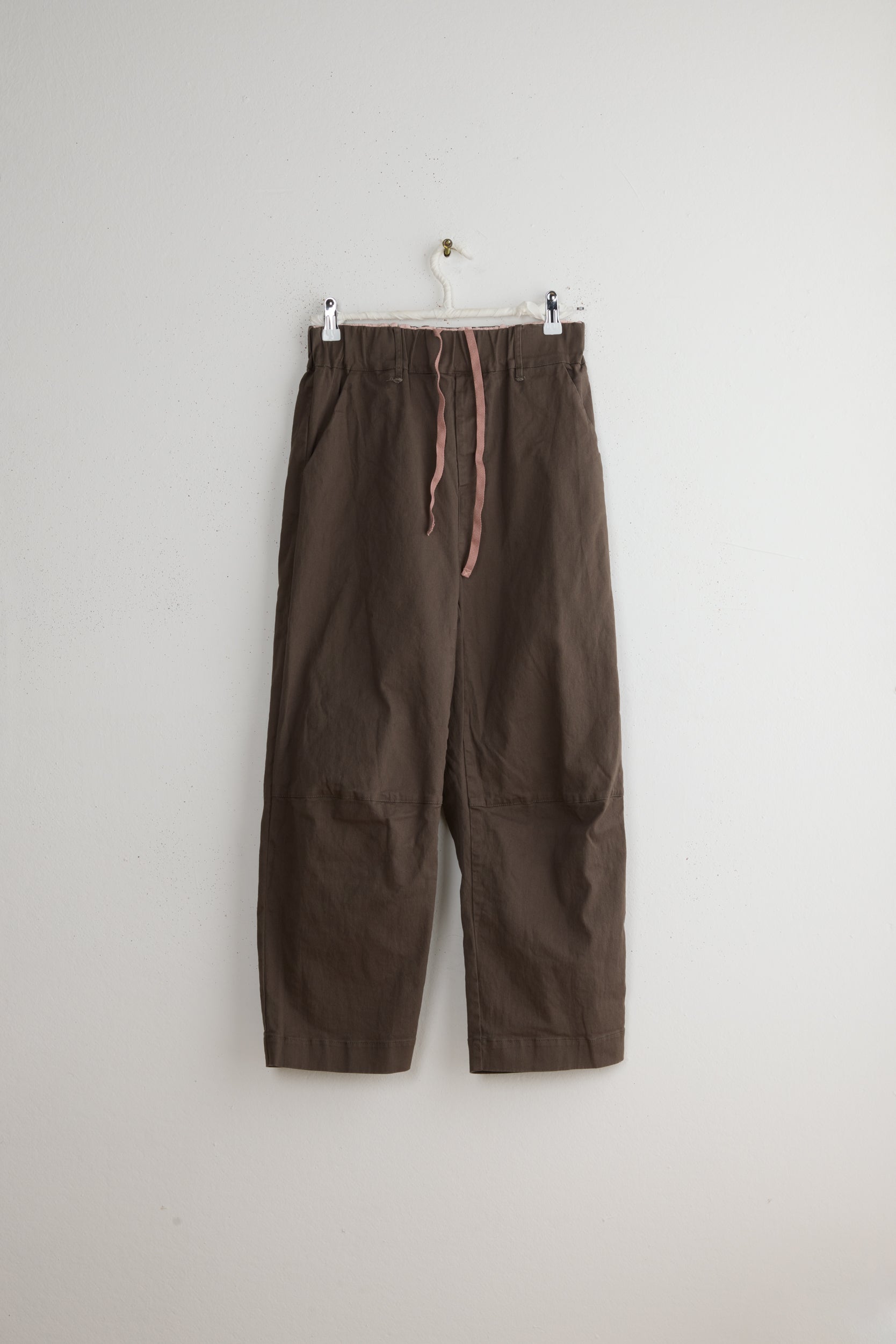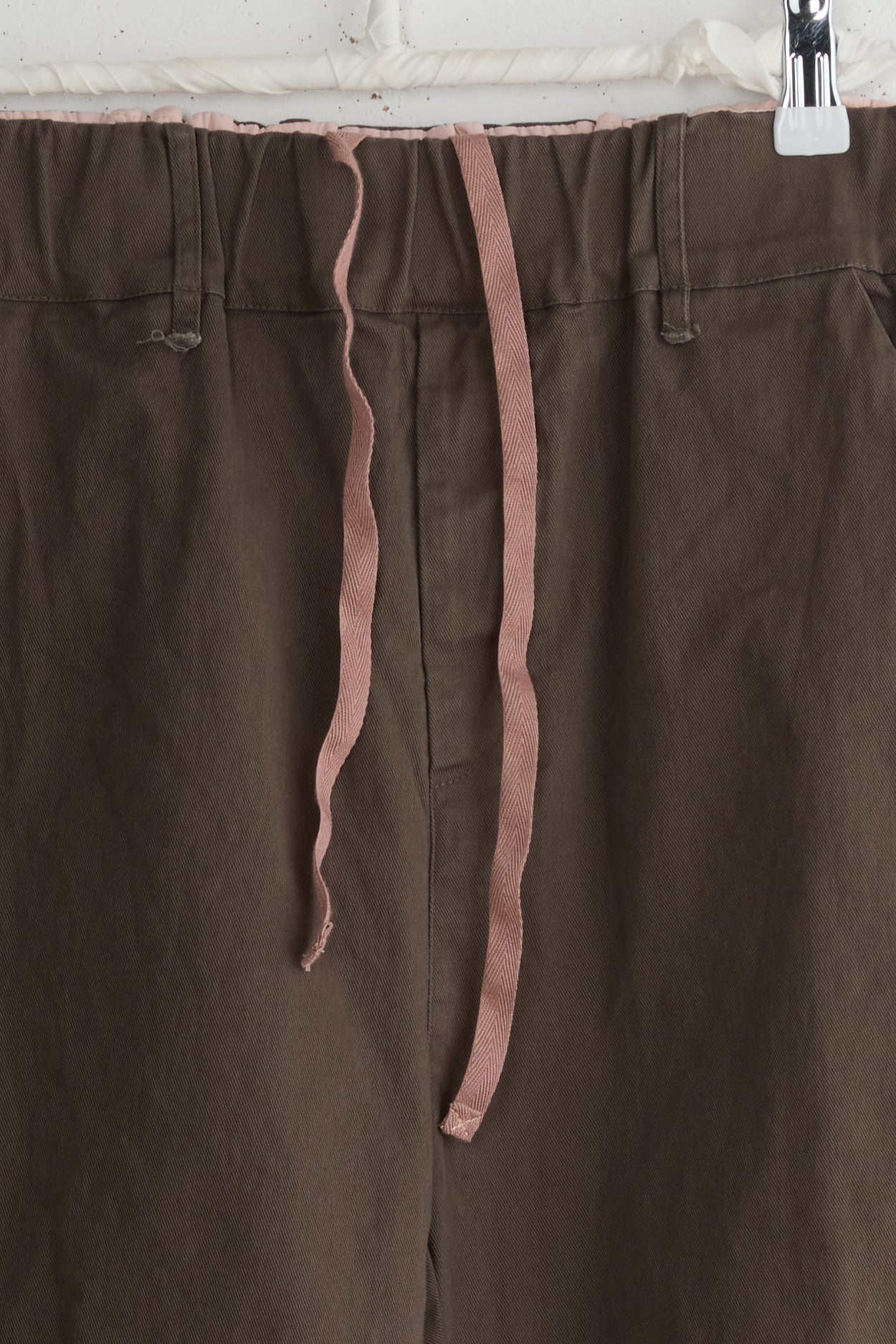 Duke pants by Maya Zukerman. The beloved silhouette is back for summer in new fabrics. Wide legged, but not flared, mid-weight cotton trousers. Elastic waist, belt loops, and inner drawstring. Slightly dropped crotch. Slash pockets at the sides and low back patch pockets. This cotton fabric is super soft with a little bit of stretch to it. Somewhat tapered leg with stitch detail below the knee.