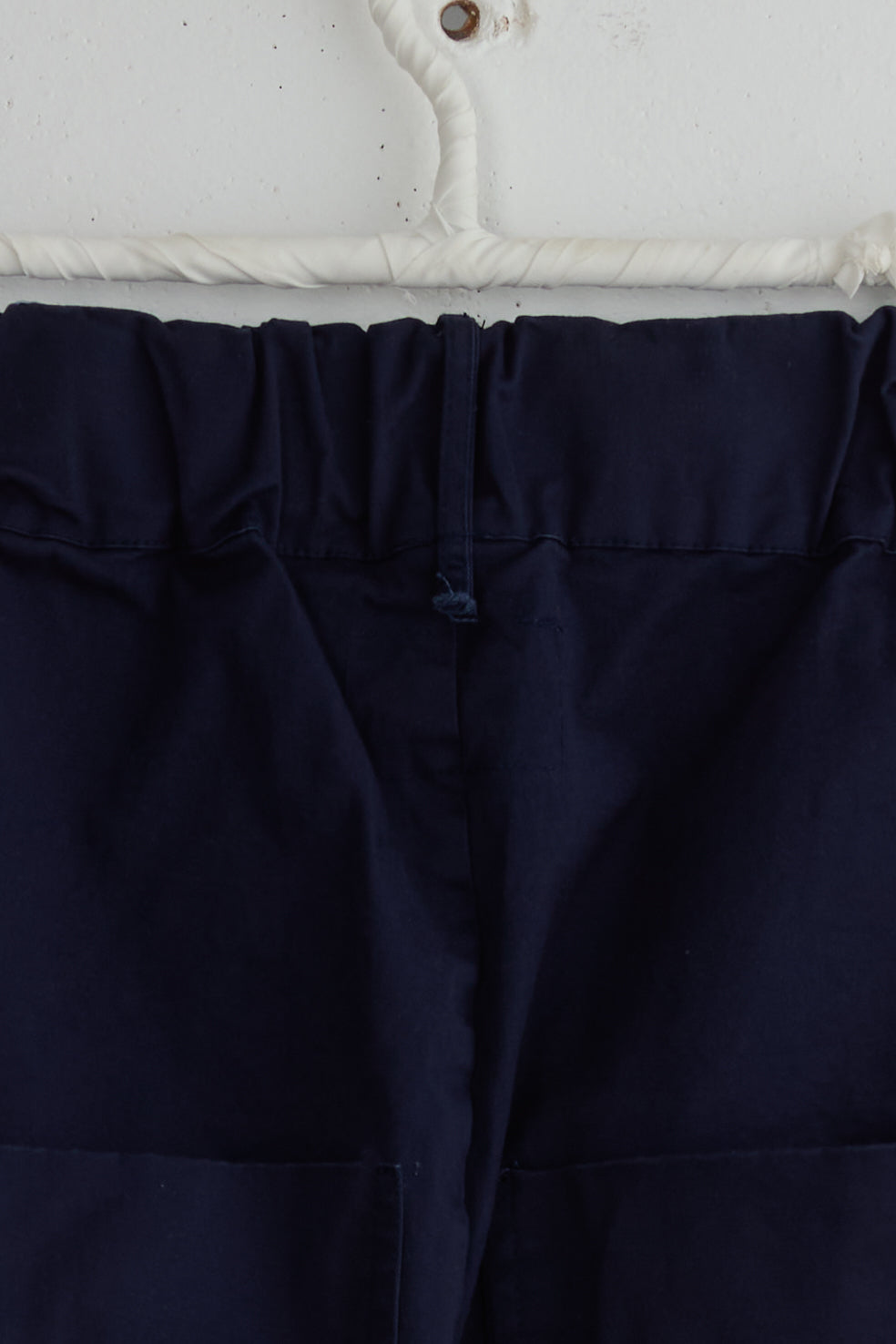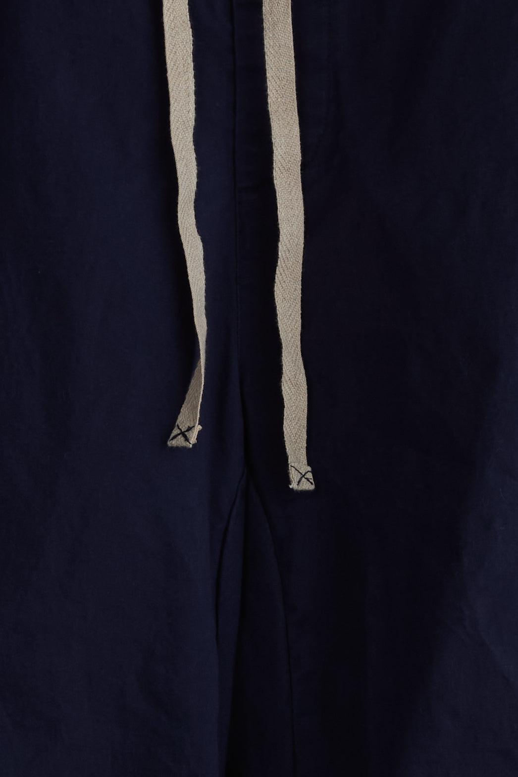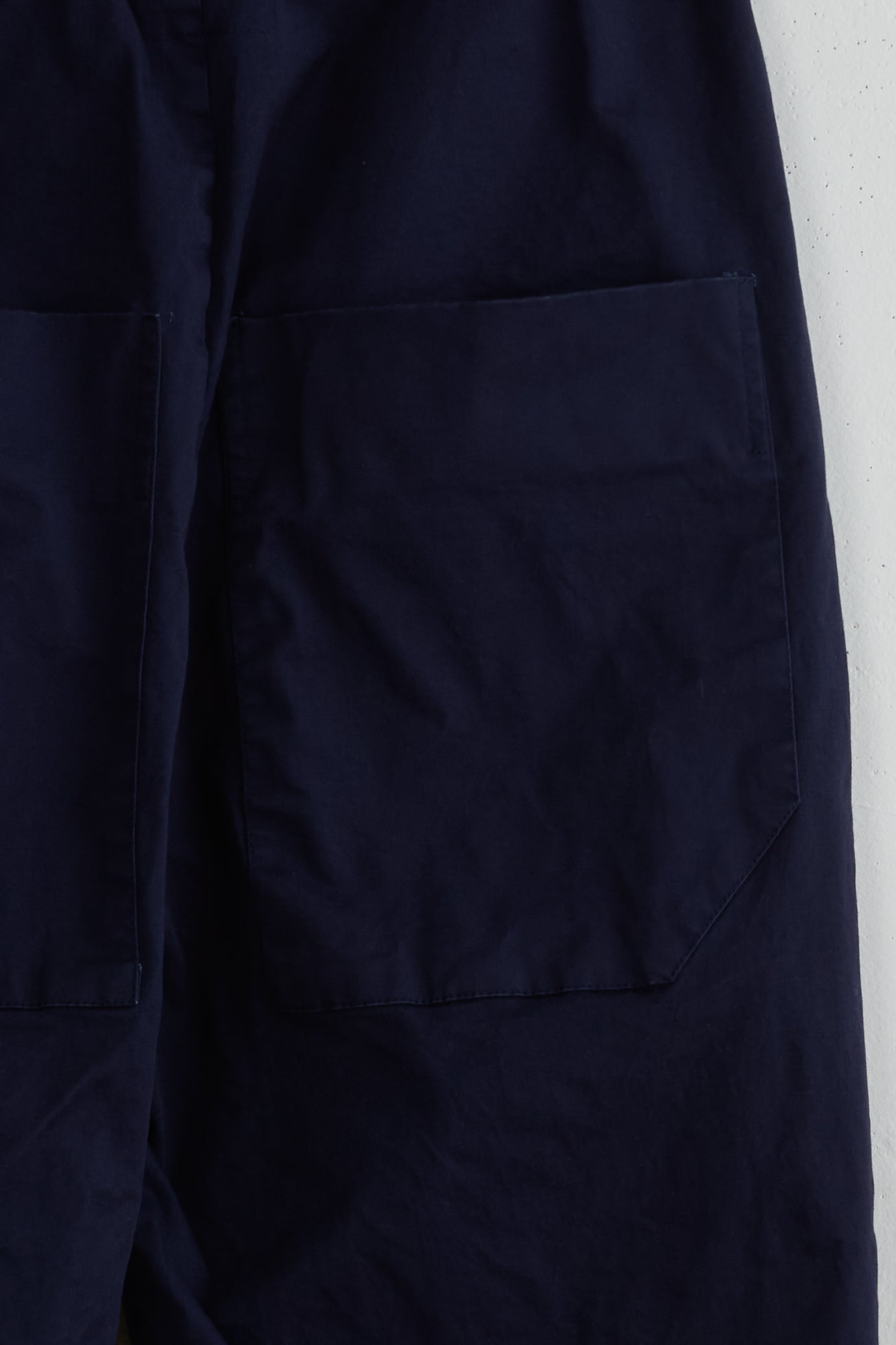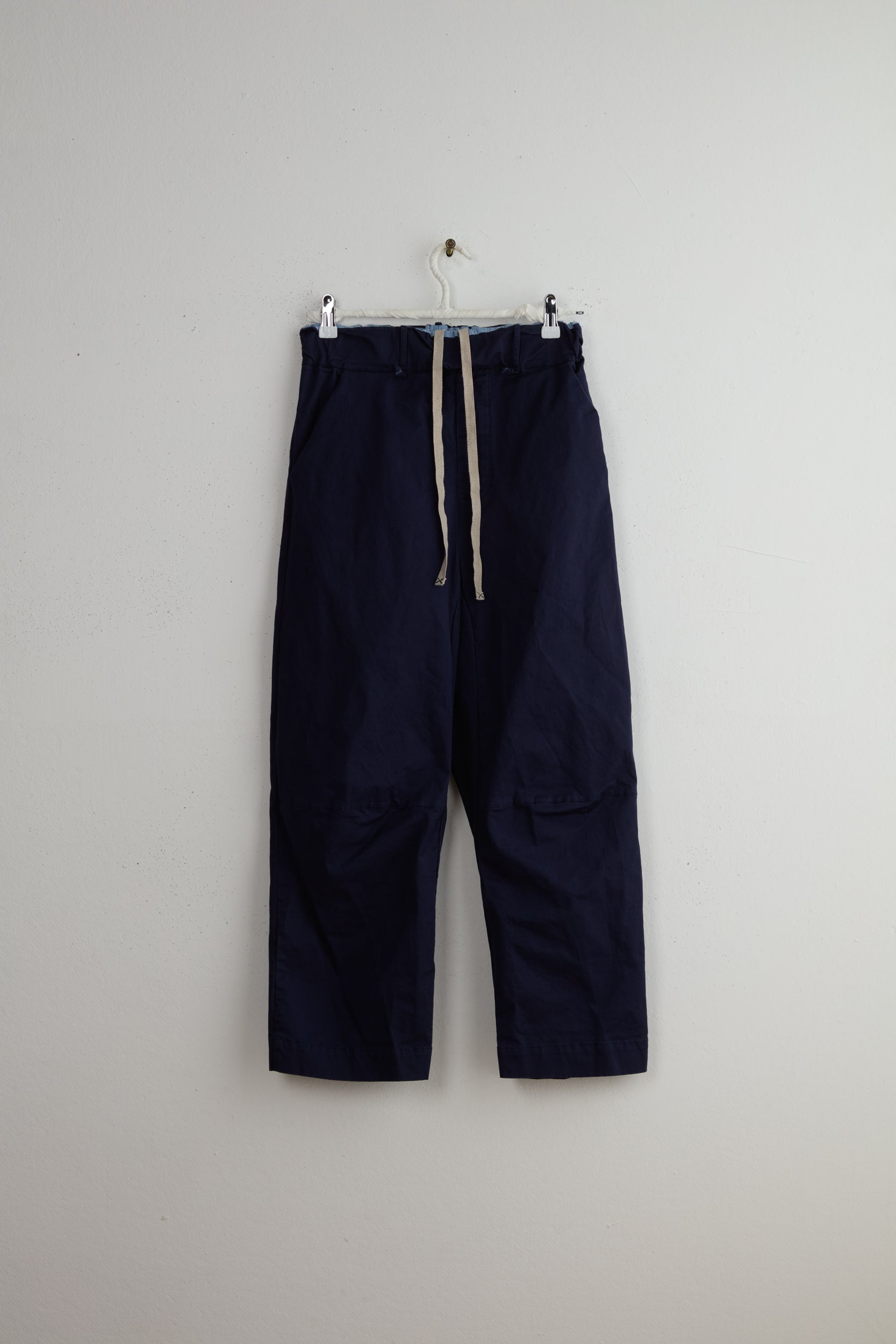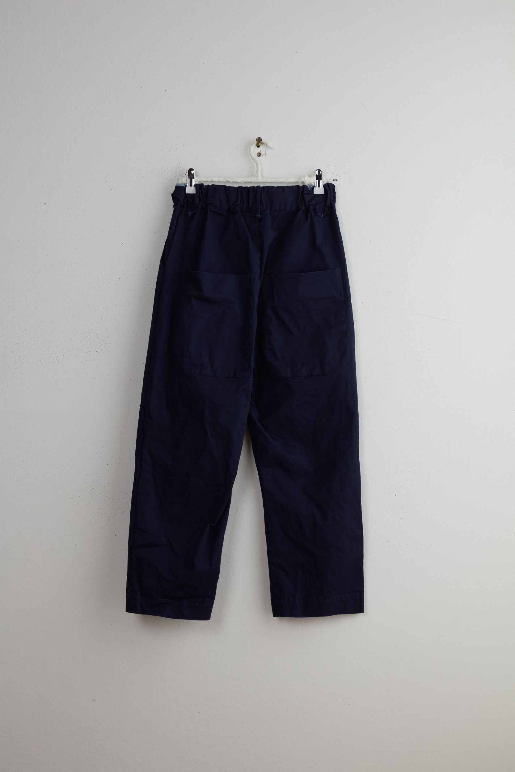 Duke pants by Maya Zukerman. The beloved silhouette is back for summer in new fabrics. Wide legged, but not flared, mid-weight cotton trousers. Elastic waist, belt loops, and inner drawstring. Slightly dropped crotch. Slash pockets at the sides and low back patch pockets. This cotton fabric is super soft with a little bit of stretch to it. Somewhat tapered leg with stitch detail below the knee.