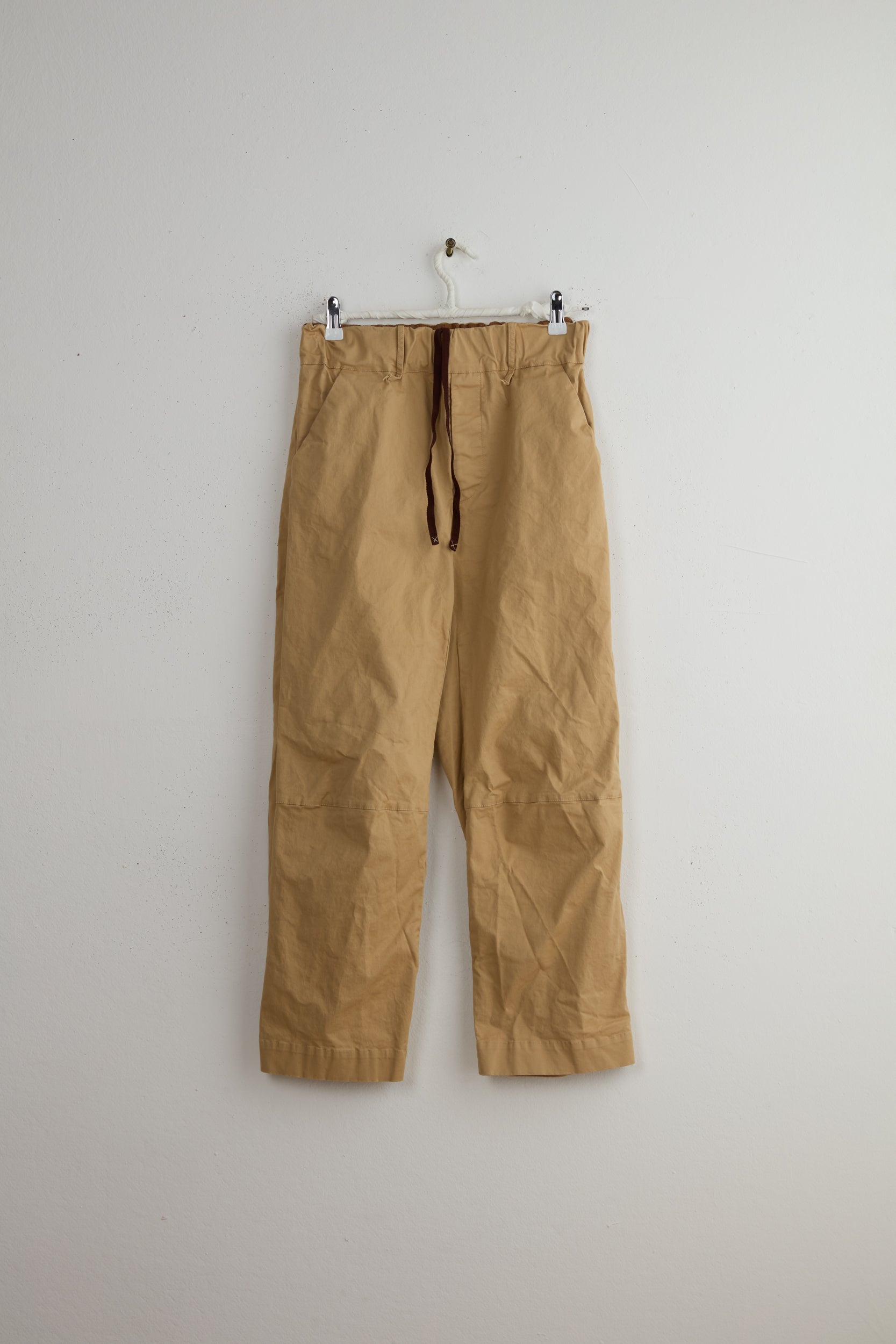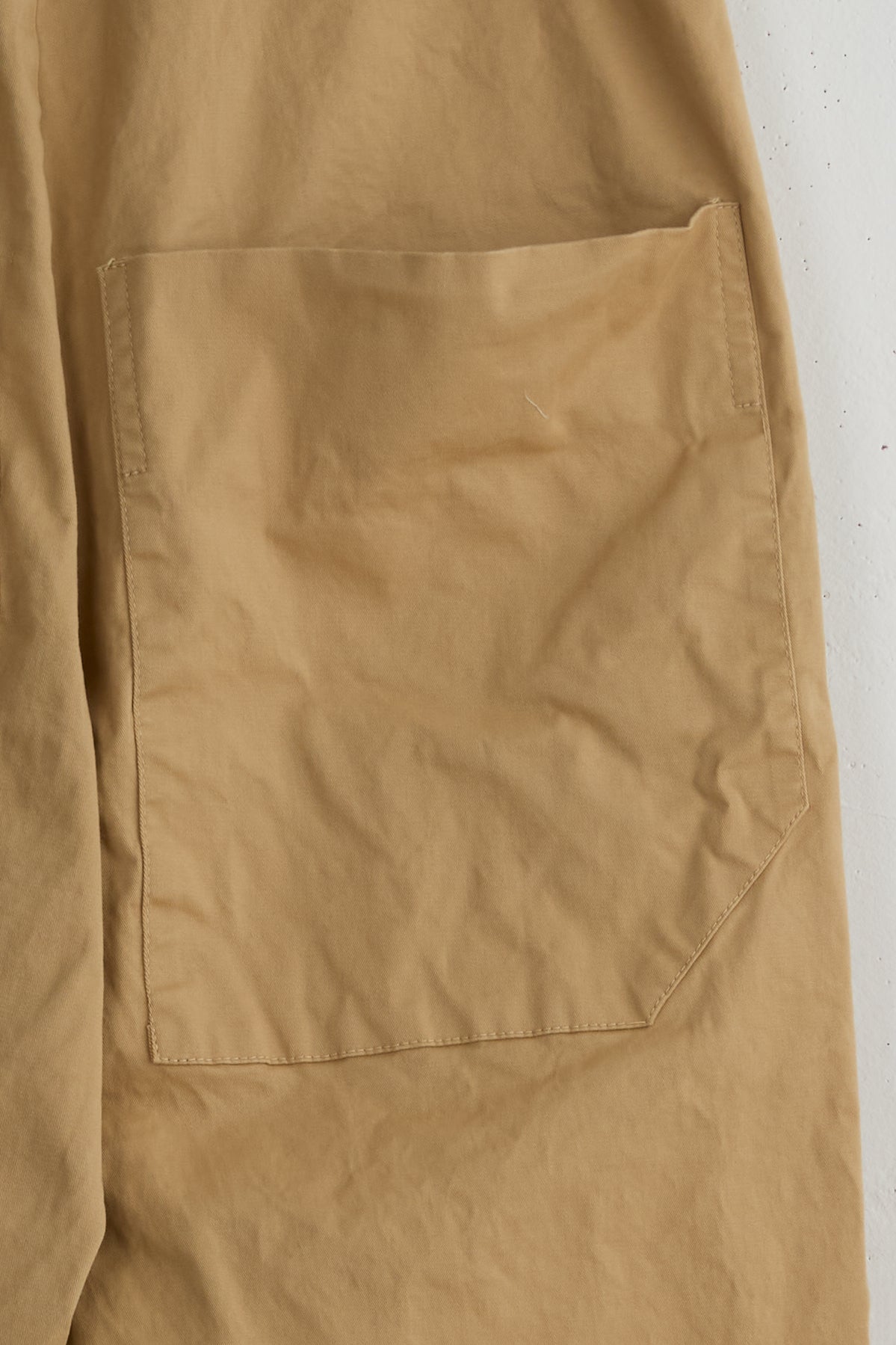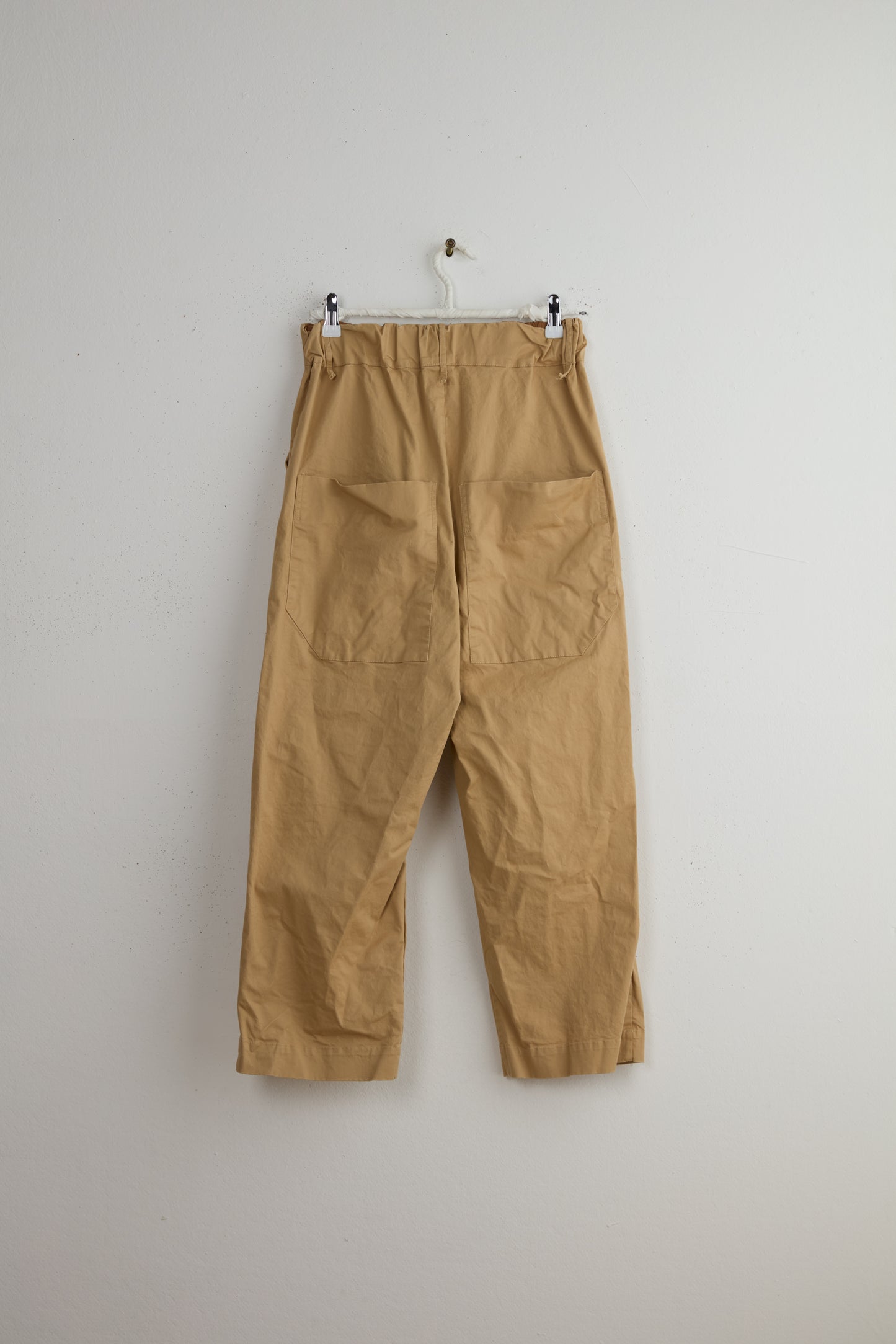 Duke pants by Maya Zukerman. The beloved silhouette is back for summer in new fabrics. Wide legged, but not flared, mid-weight cotton trousers. Elastic waist, belt loops, and inner drawstring. Slightly dropped crotch. Slash pockets at the sides and low back patch pockets. This cotton fabric is super soft with a little bit of stretch to it. Somewhat tapered leg with stitch detail below the knee.