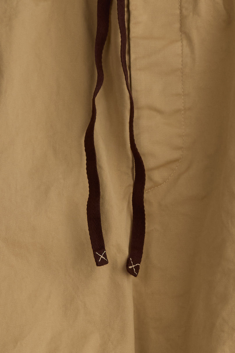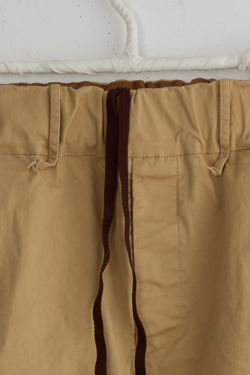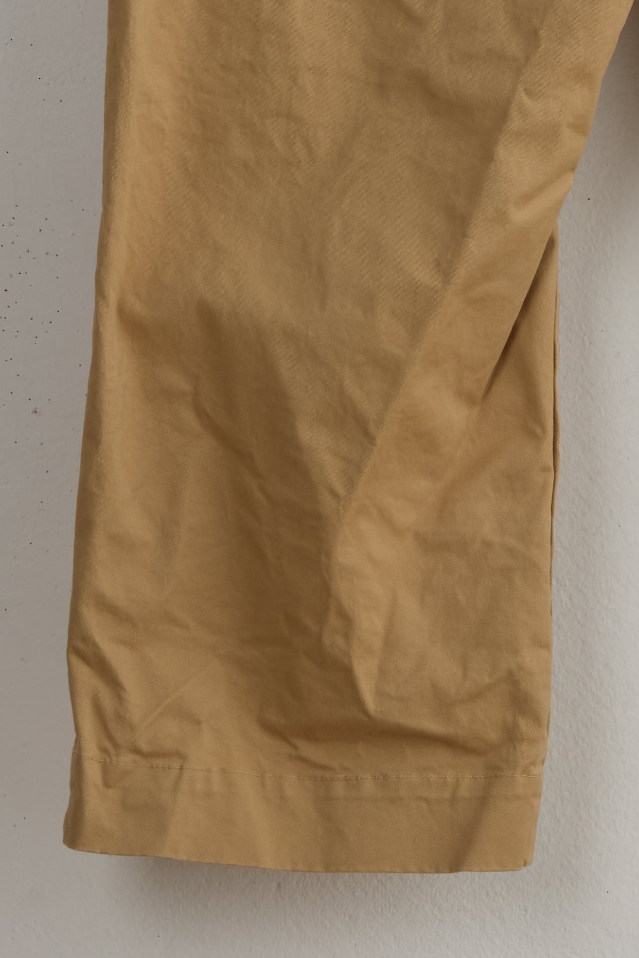 Duke pants by Maya Zukerman. The beloved silhouette is back for summer in new fabrics. Wide legged, but not flared, mid-weight cotton trousers. Elastic waist, belt loops, and inner drawstring. Slightly dropped crotch. Slash pockets at the sides and low back patch pockets. This cotton fabric is super soft with a little bit of stretch to it. Somewhat tapered leg with stitch detail below the knee.