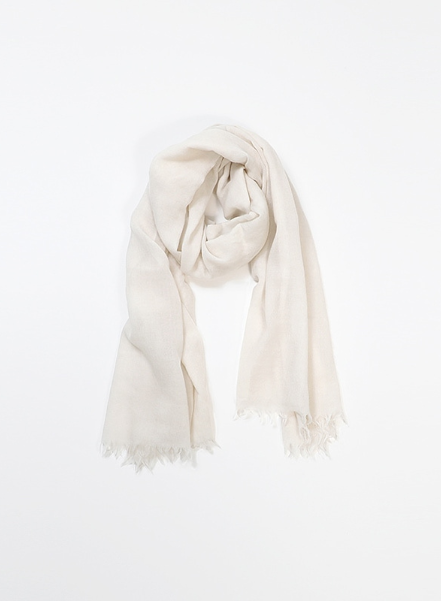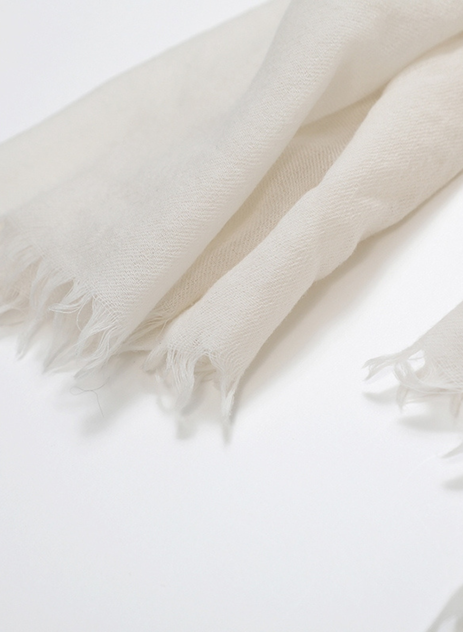 Wool stole by Japanese brand Evam Eva. fine wool threads woven on a shuttle machine and then washed to produce a soft and smooth texture.
