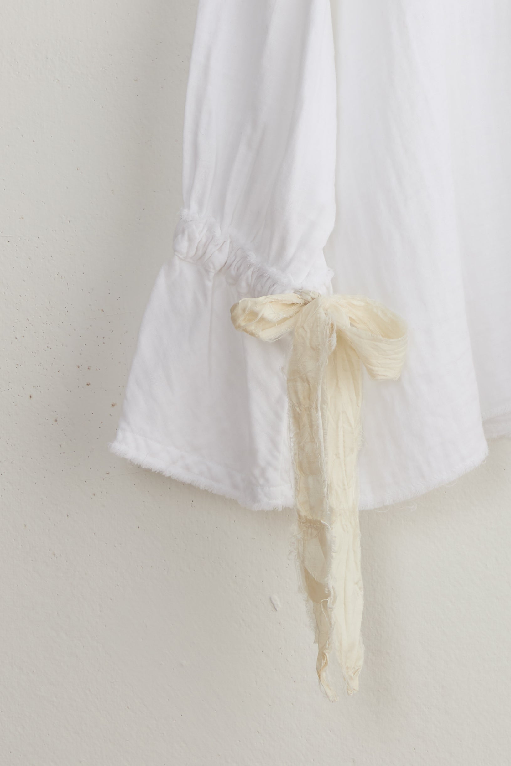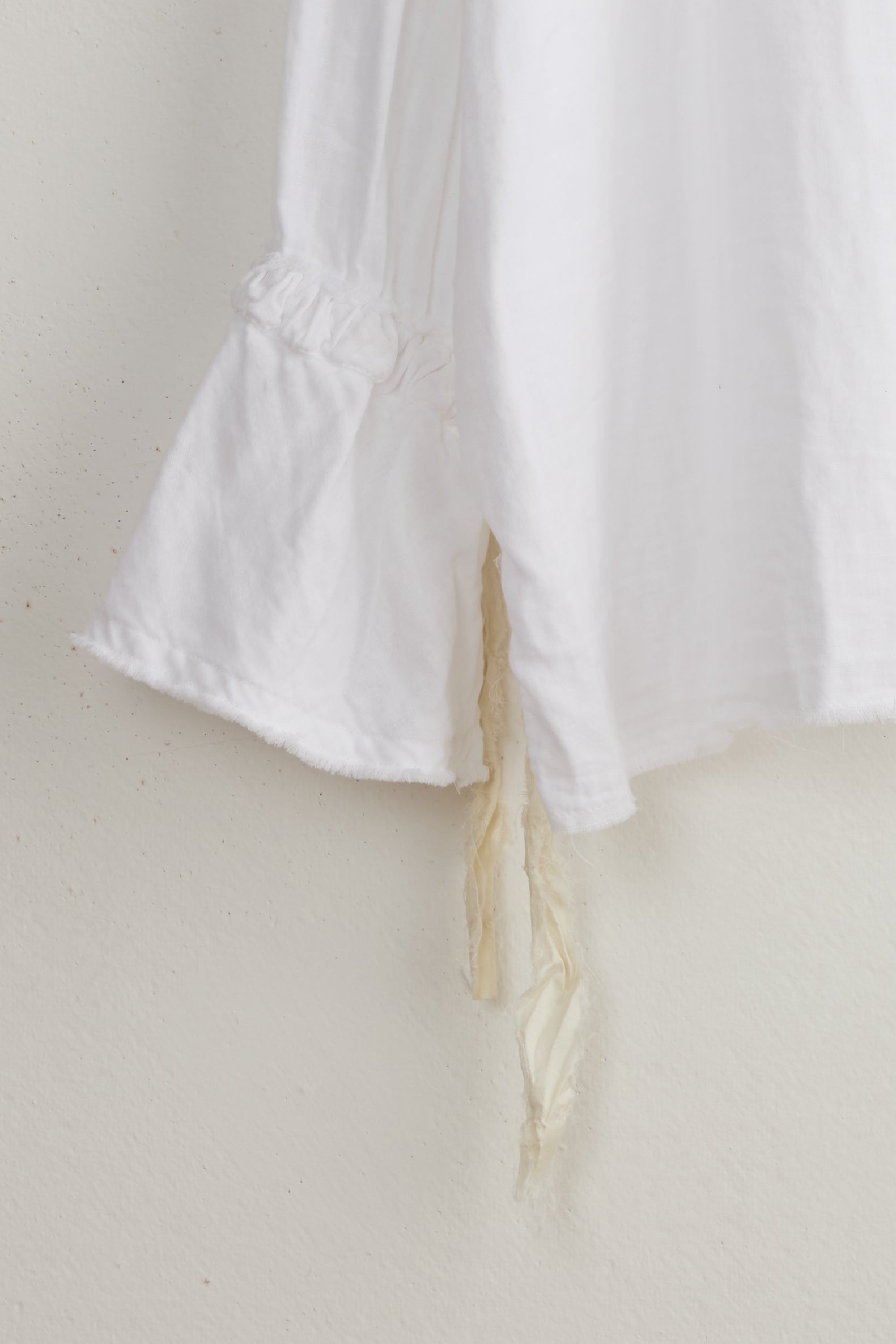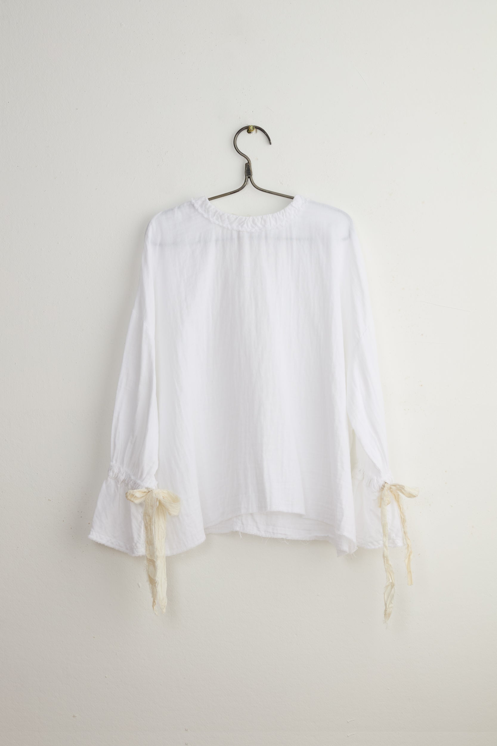 Eloise shirt by Maya Zukerman is a super soft double cloth blouse with a boxy, relaxed fit. The crew neck and the extra-long sleeves are laced with ribbons made from recycled Sari.