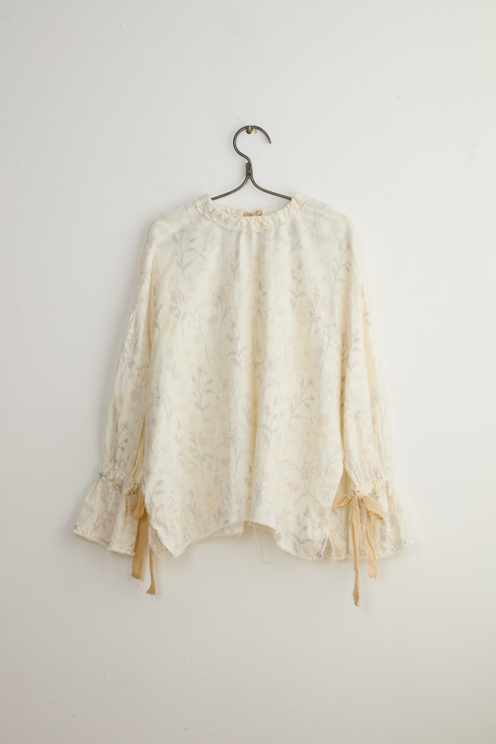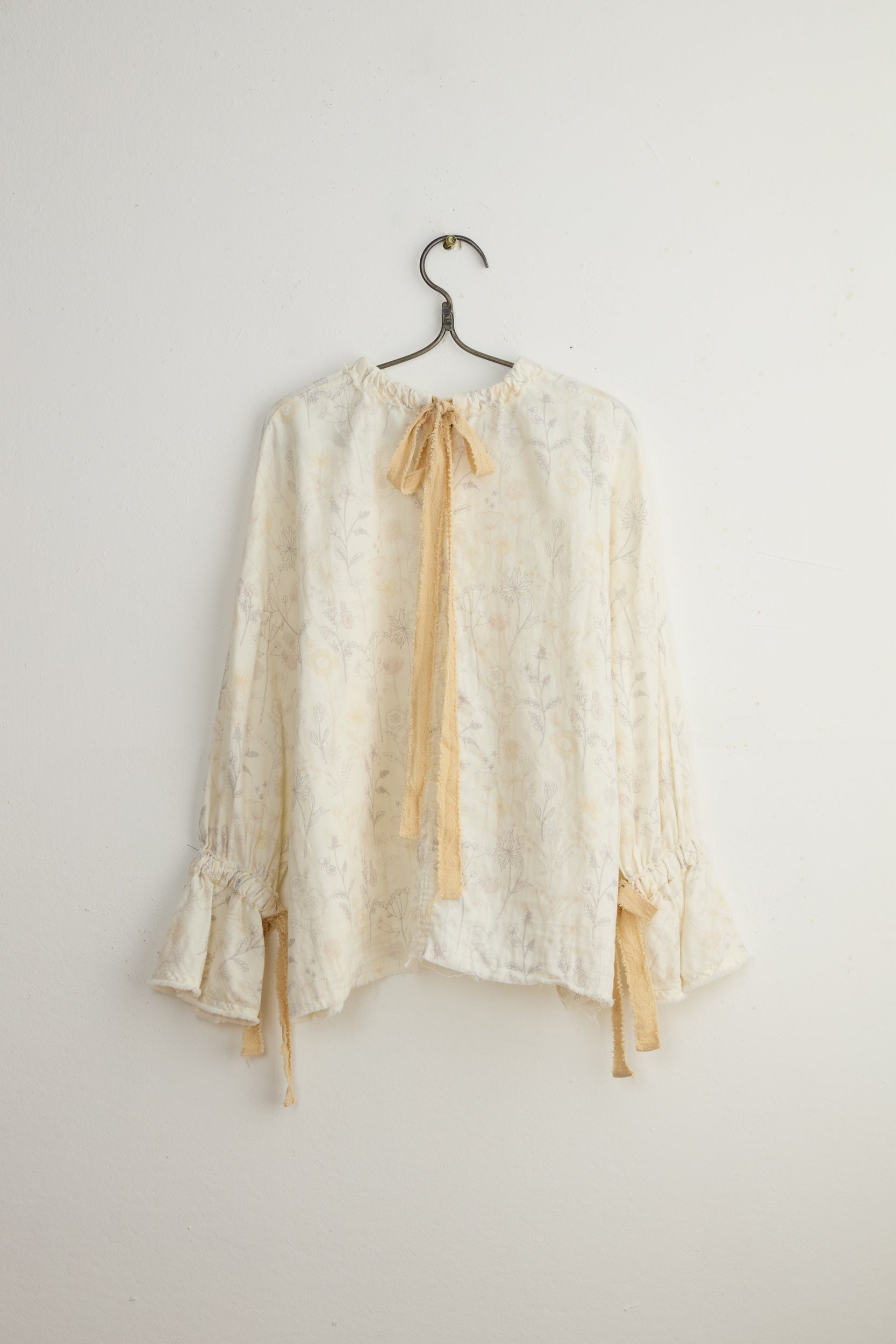 Eloise shirt by Maya Zukerman is a super soft double cloth blouse with a boxy, relaxed fit. The crew neck and the extra-long sleeves are laced with ribbons made from recycled Sari.