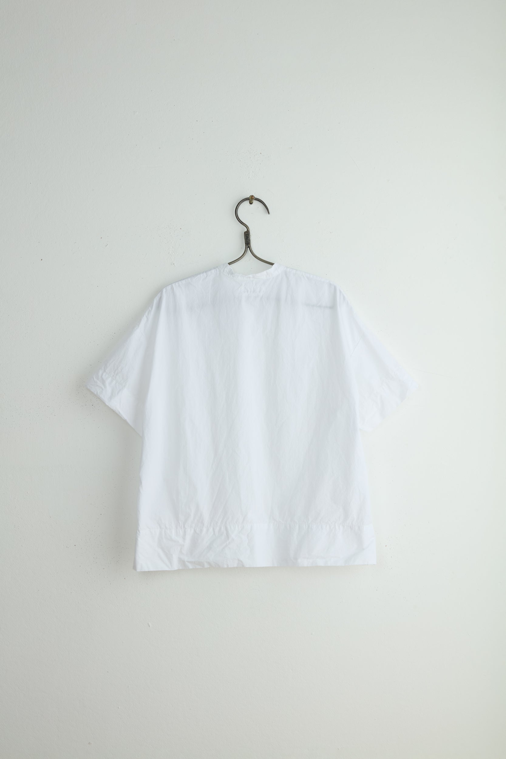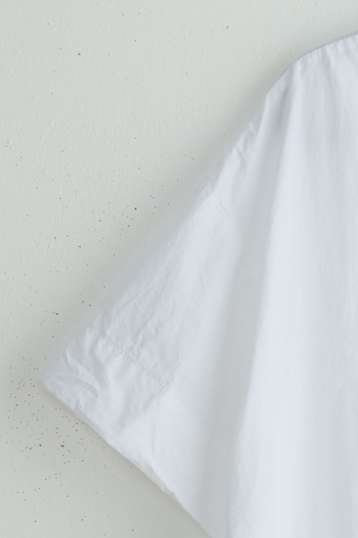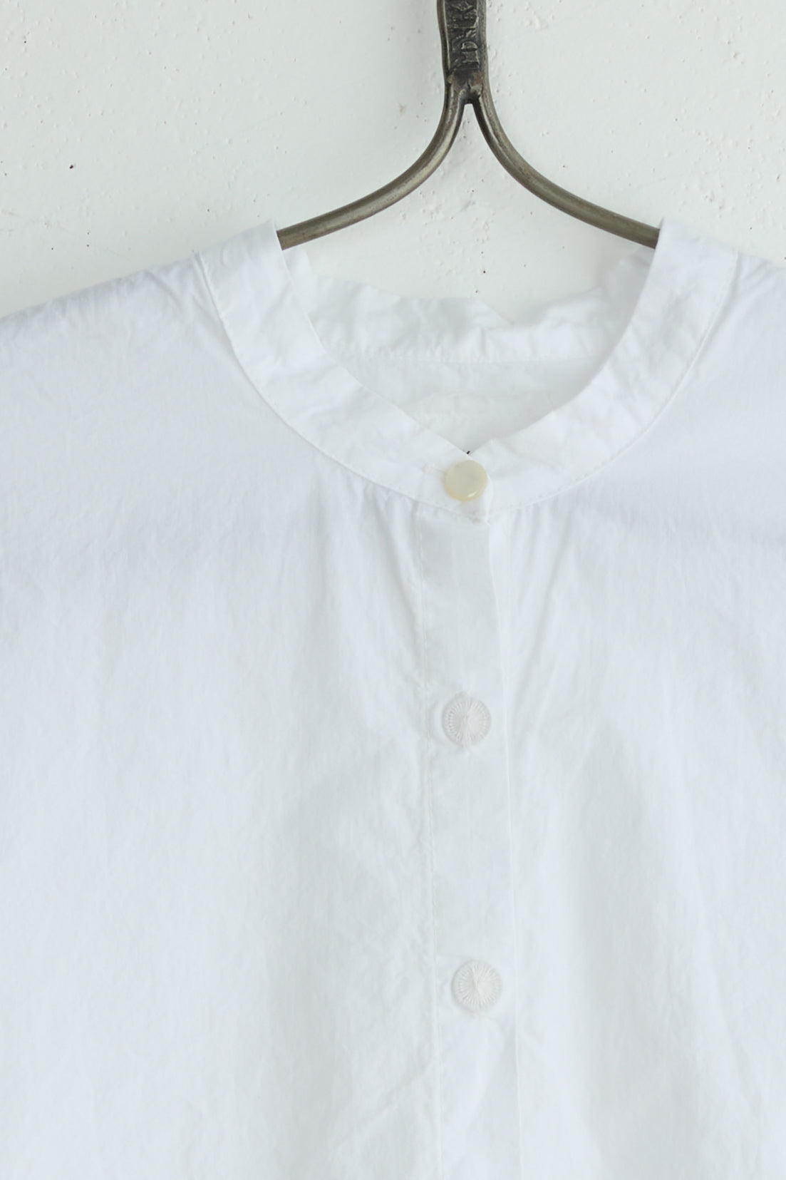 Emi shirt by Maya Zukerman. A simple, elegant blouse made from crisp Japanese paper cotton. A relaxed silhouette with mid-length notched sleeves, a mandarin collar, dropped shoulders and side slits.