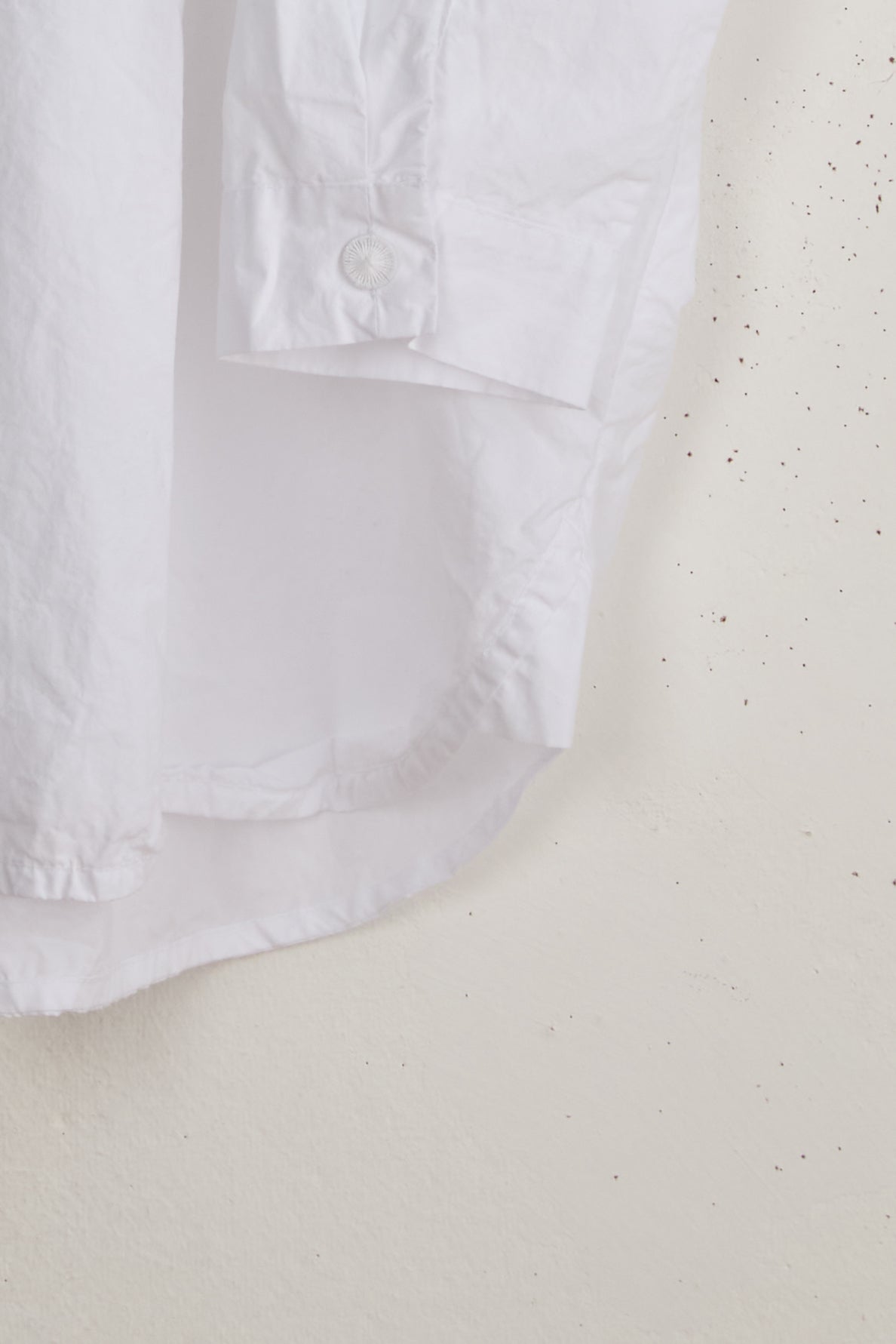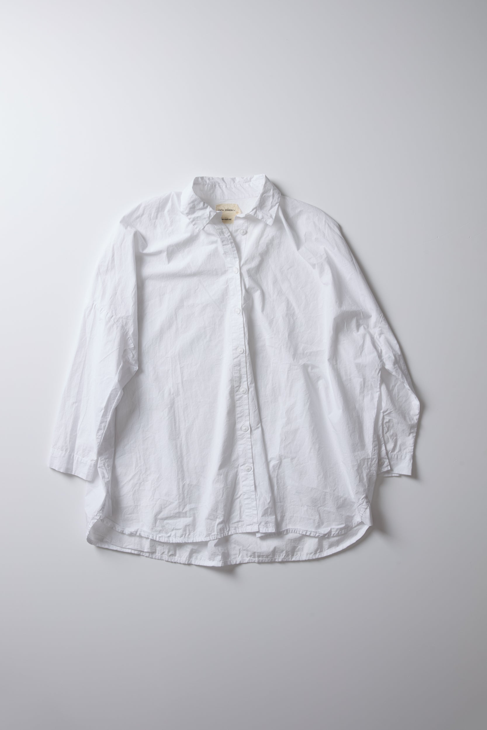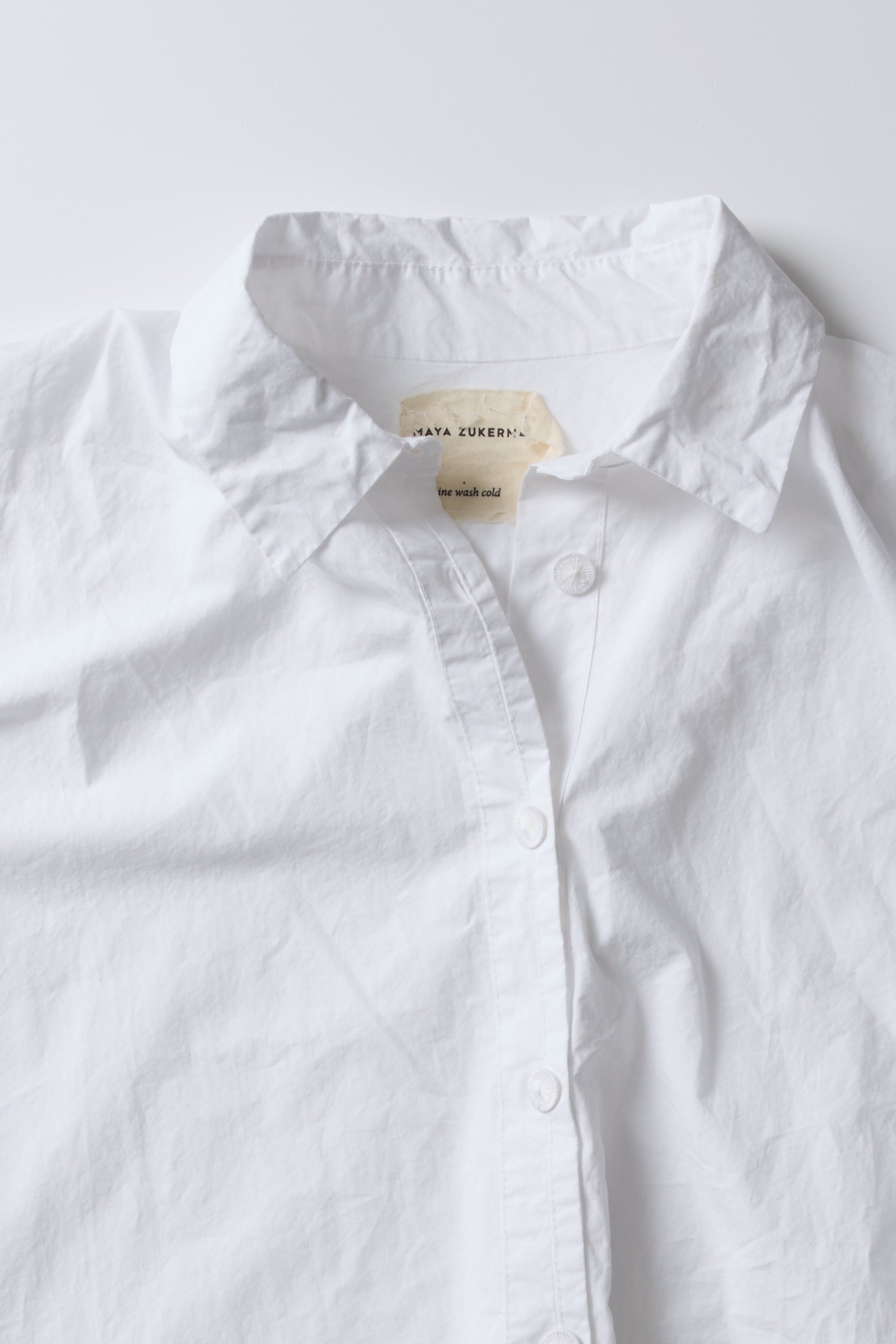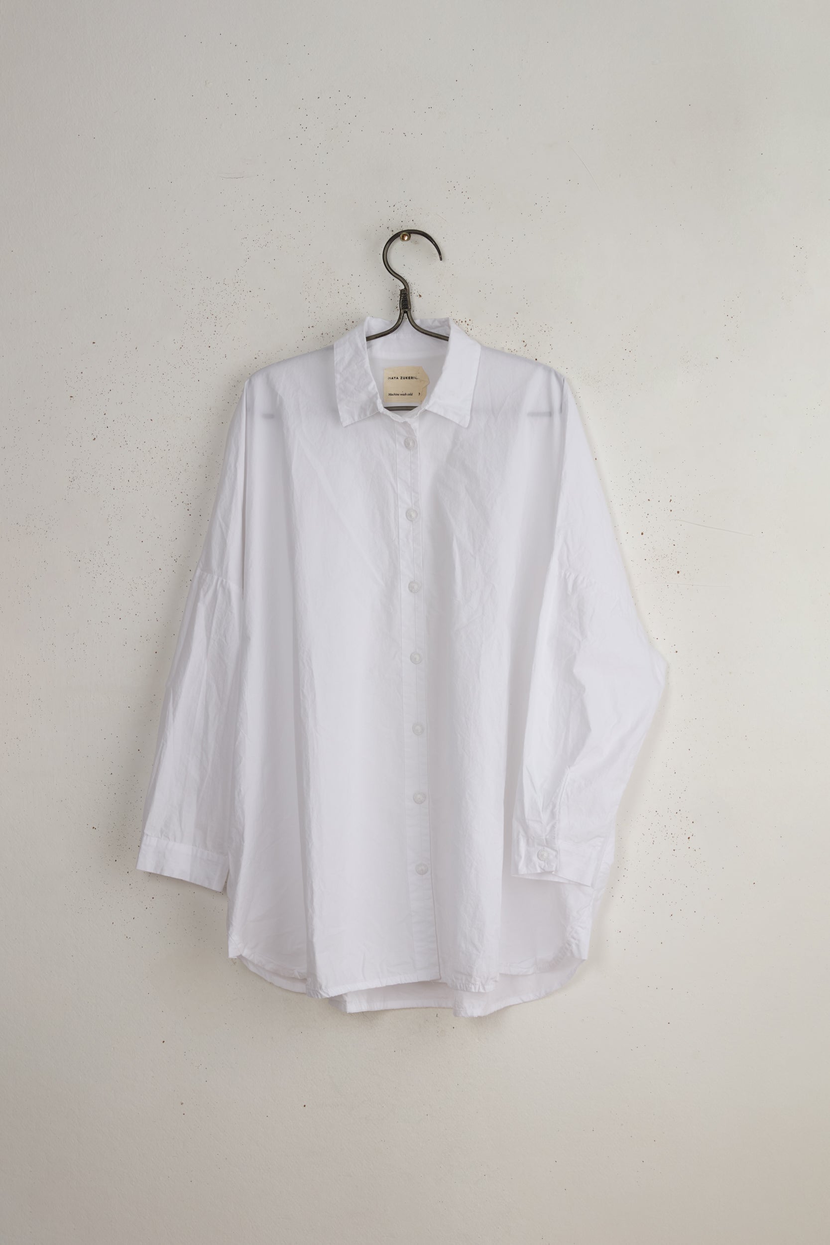 The Evelyn shirt by Maya Zukerman is a light oversized collared shirt made of 100% Japanese paper cotton. hand dyed Dorset button closure and a middle stitch button hole detail. boyfriend fit, dropped shoulder slightly shorter on the front, finished with a rounded hem, closed side slits and round cuff slits with button closure.