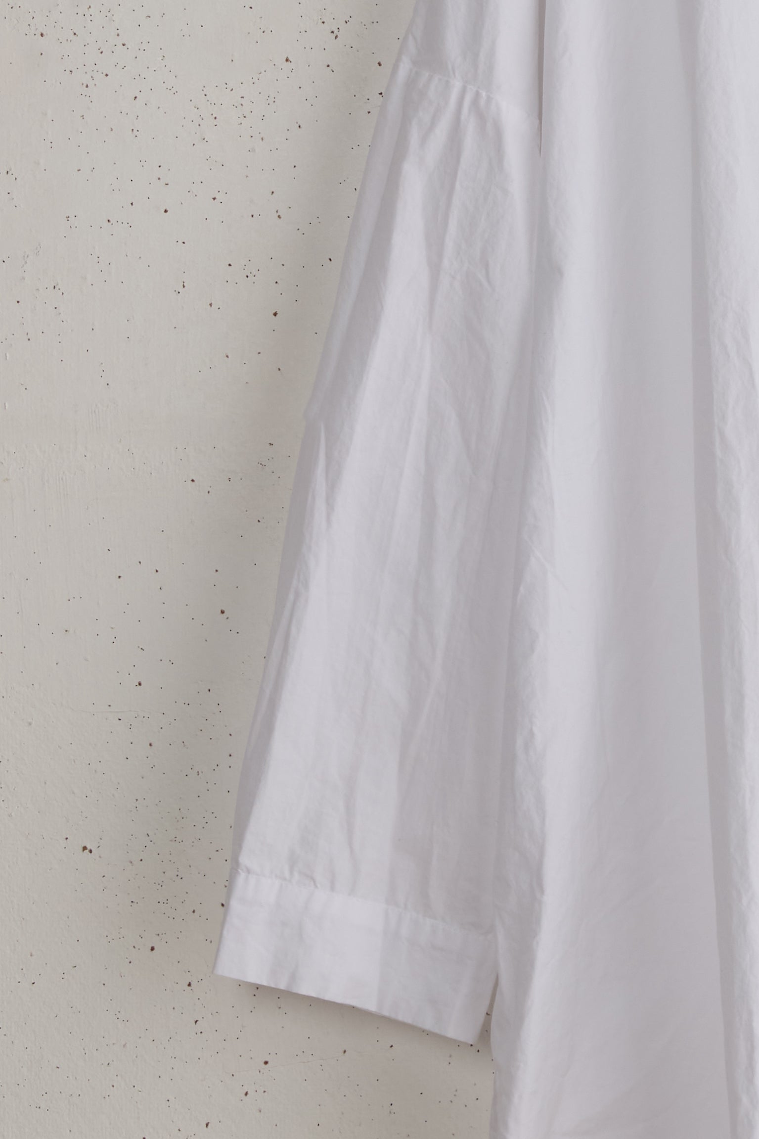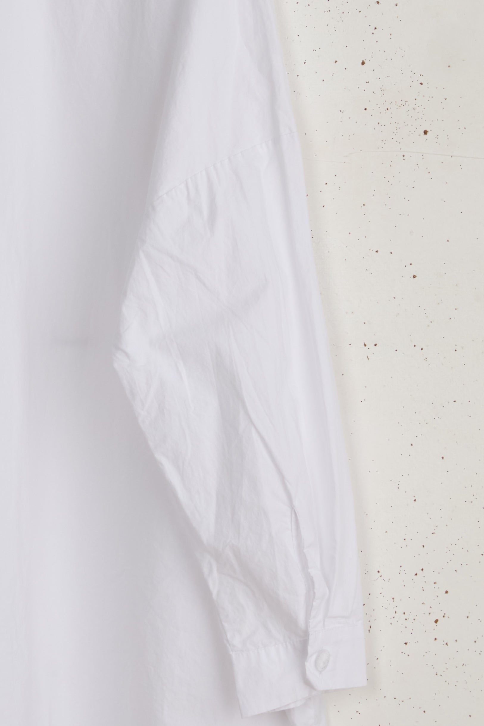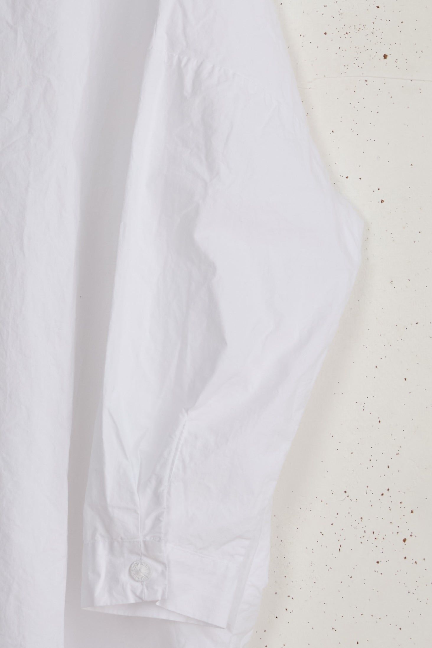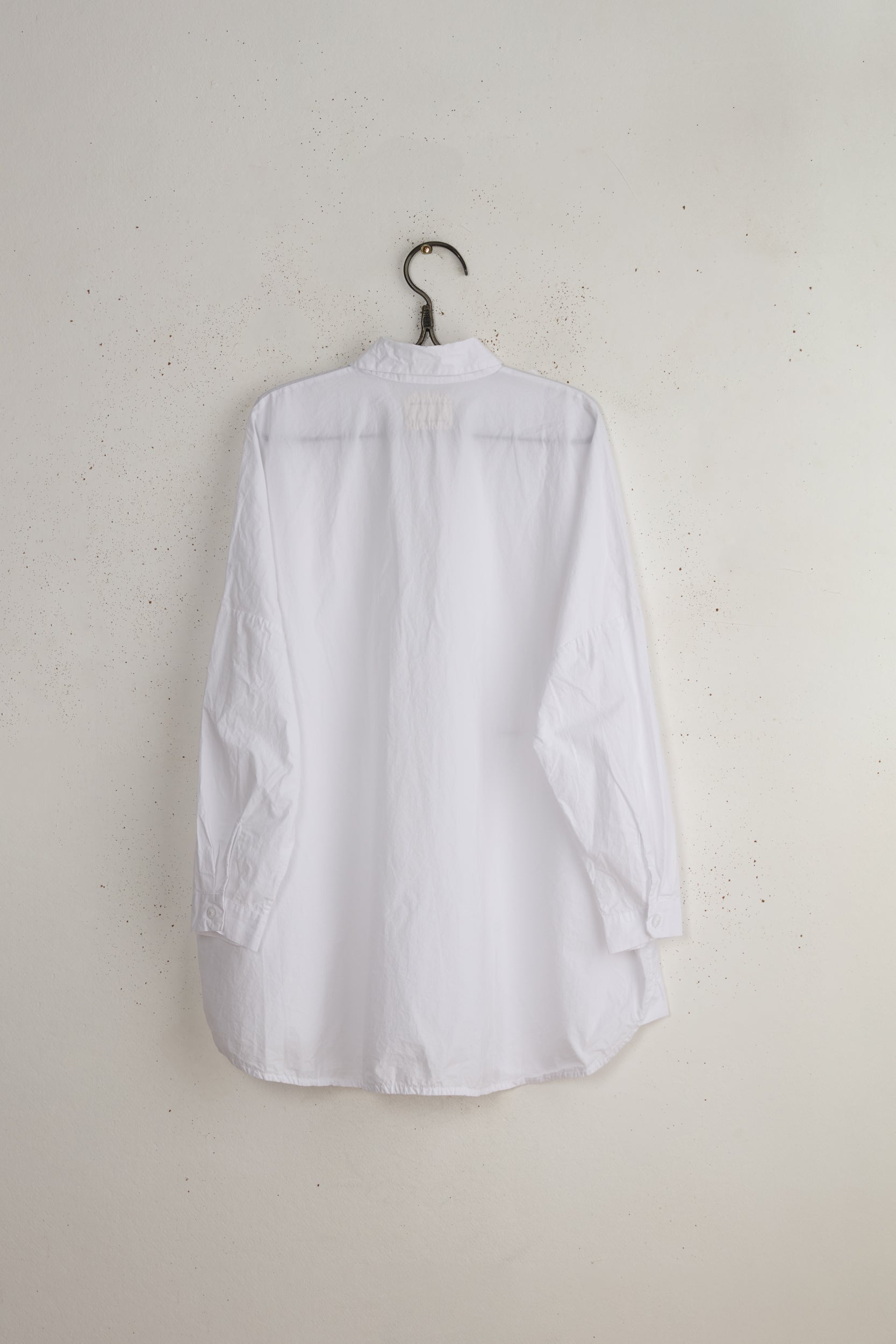 The Evelyn shirt by Maya Zukerman is a light oversized collared shirt made of 100% Japanese paper cotton. hand dyed Dorset button closure and a middle stitch button hole detail. boyfriend fit, dropped shoulder slightly shorter on the front, finished with a rounded hem, closed side slits and round cuff slits with button closure.