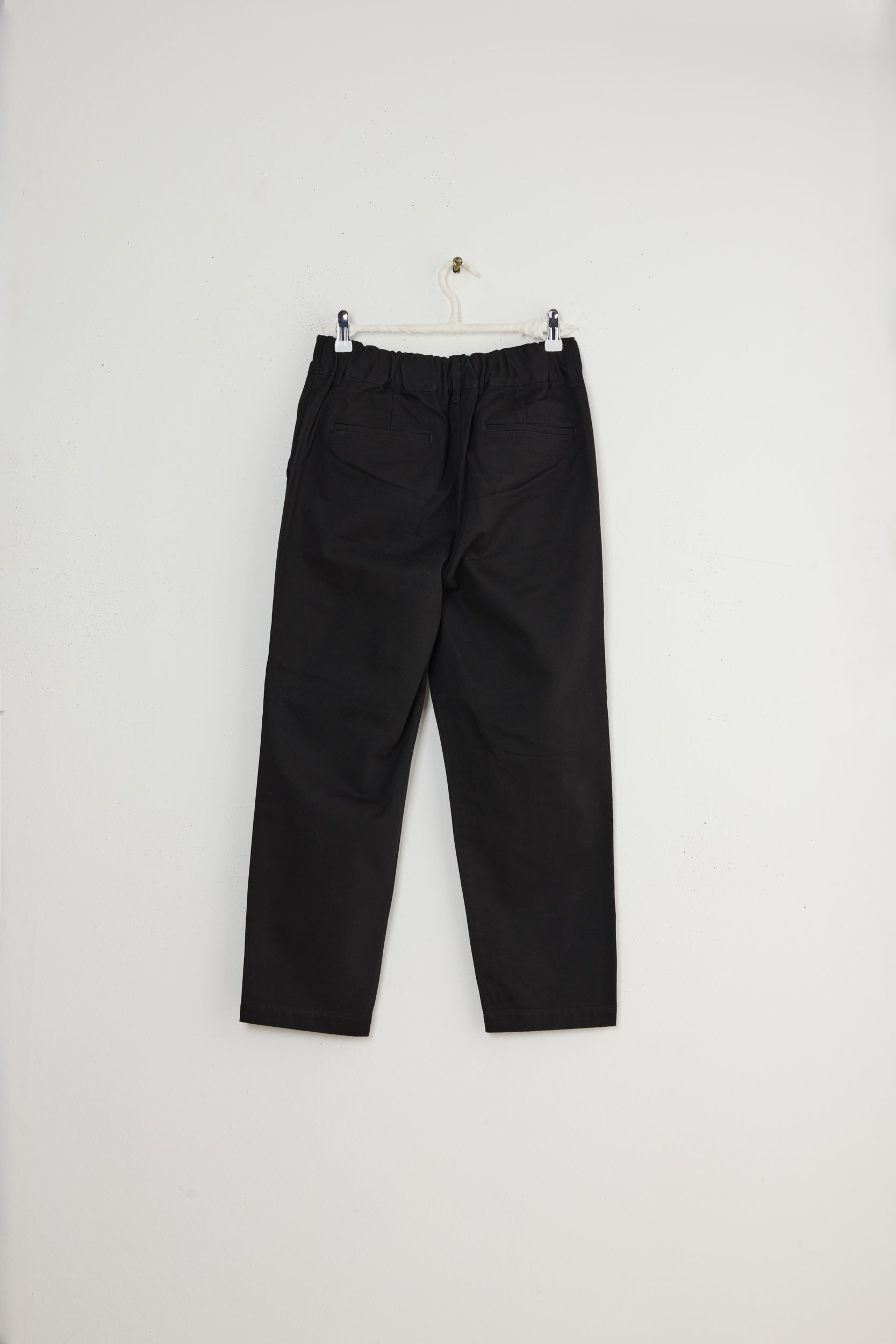 Woven pants by Ichi Antiquités. Relaxed, tapered pants made from mid-weight cotton. Classic, clean silhouette with a slightly dropped crotch, two side pockets, two back welt pockets, elastic waist and mock fly.