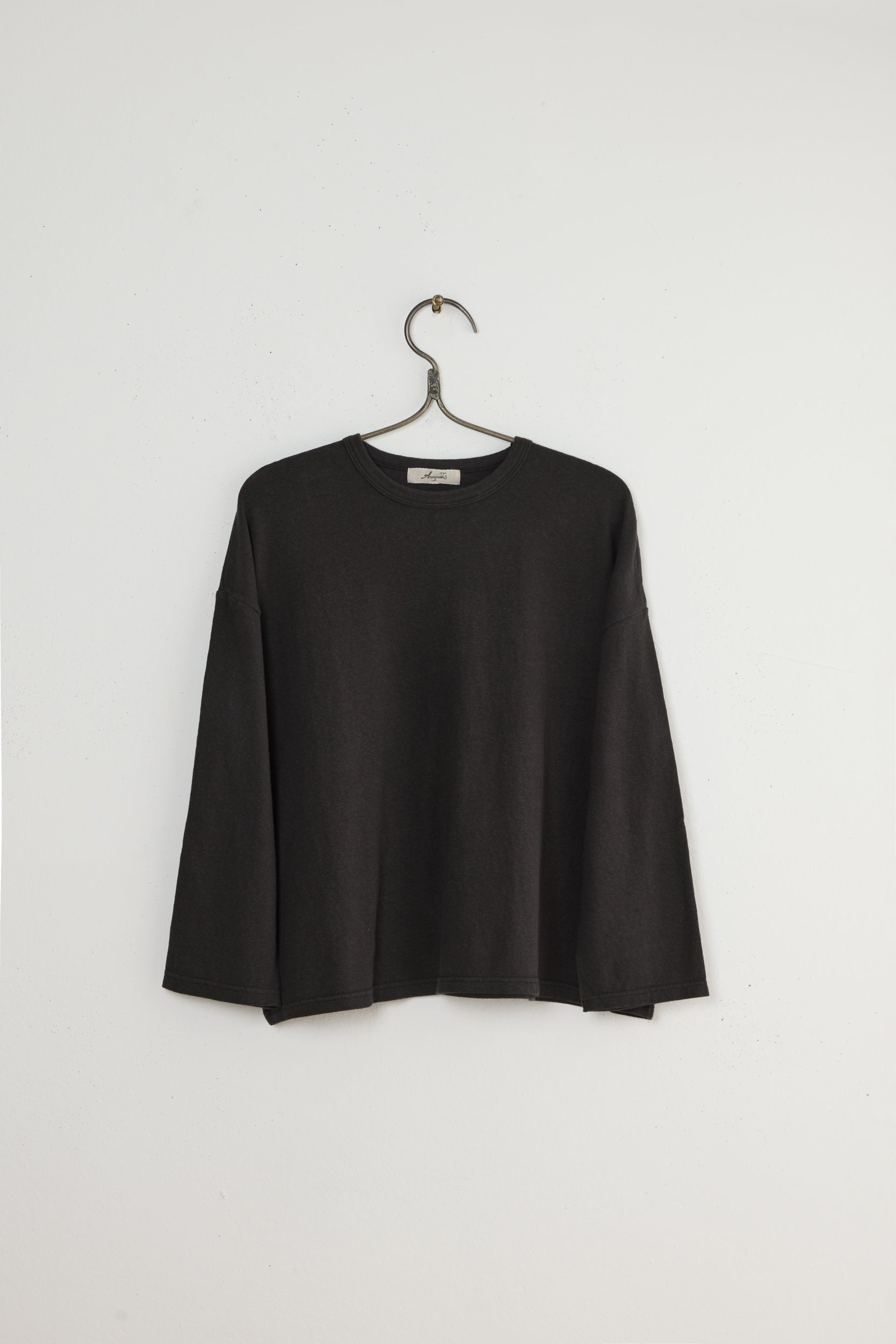 Pullover by Ichi Antiquités. A soft, cozy long T-shirt made of the brand’s signature cotton that has a natural unevenness and washed texture. relaxed, slightly short fit, crew neck and dropped shoulder.