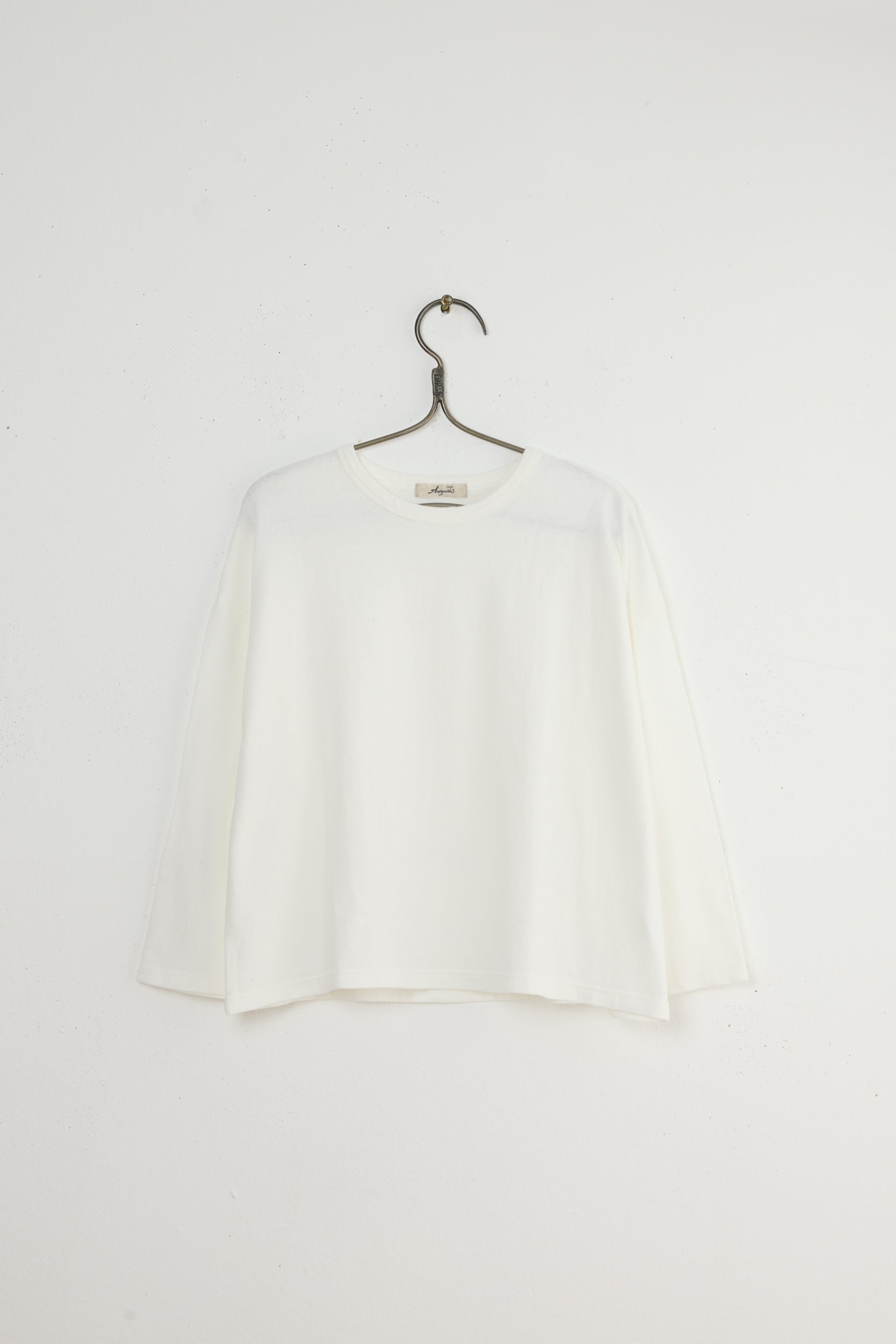 Pullover by Ichi Antiquités. A soft, cozy long T-shirt made of the brand’s signature cotton that has a natural unevenness and washed texture. relaxed, slightly short fit, crew neck and dropped shoulder.