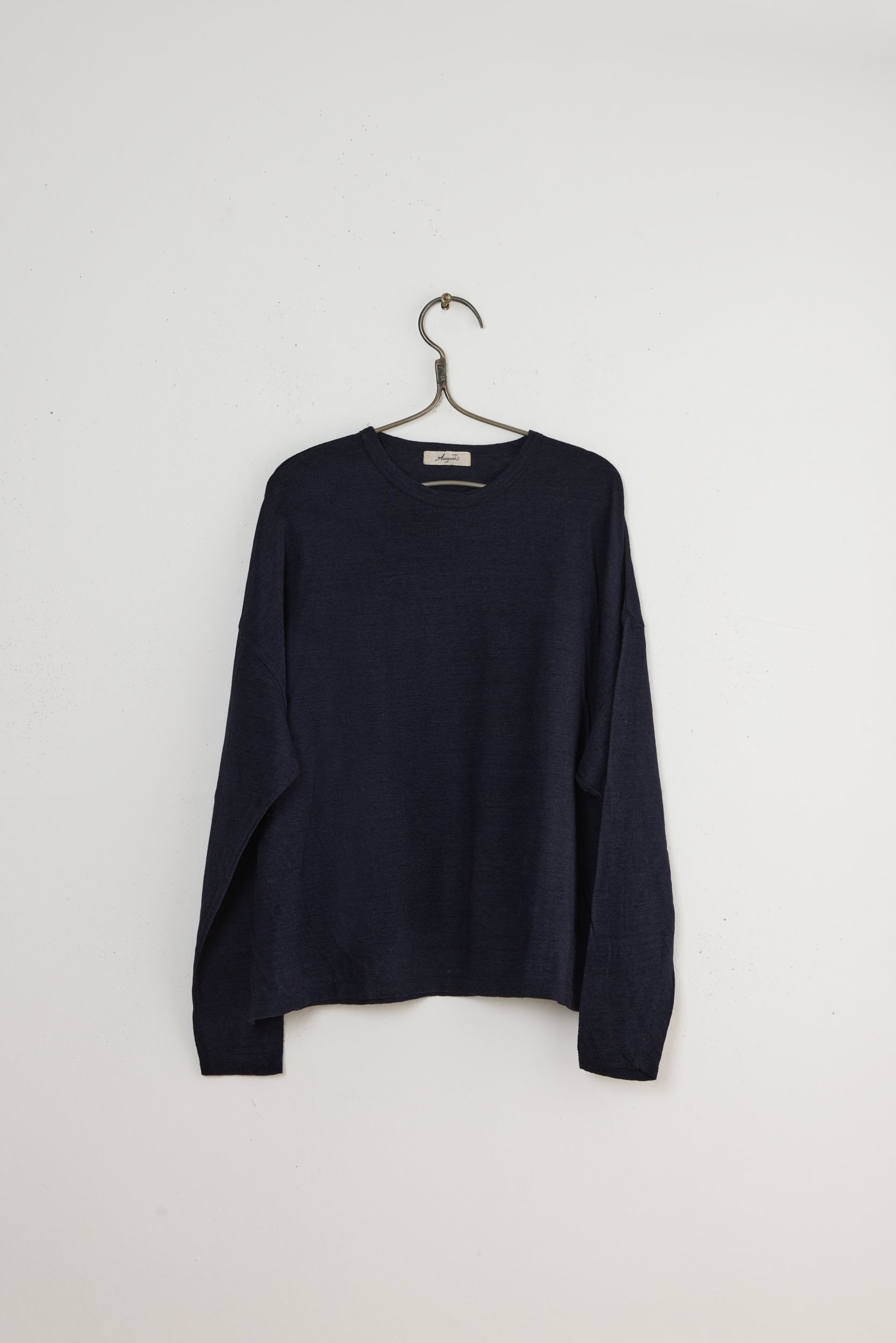 Loose Pullover by Ichi Antiquités. A soft, cozy long T-shirt made of soft slightly stretchy cotton. Oversized, wide fit, crew neck, dropped shoulder and extra-long sleeves.
