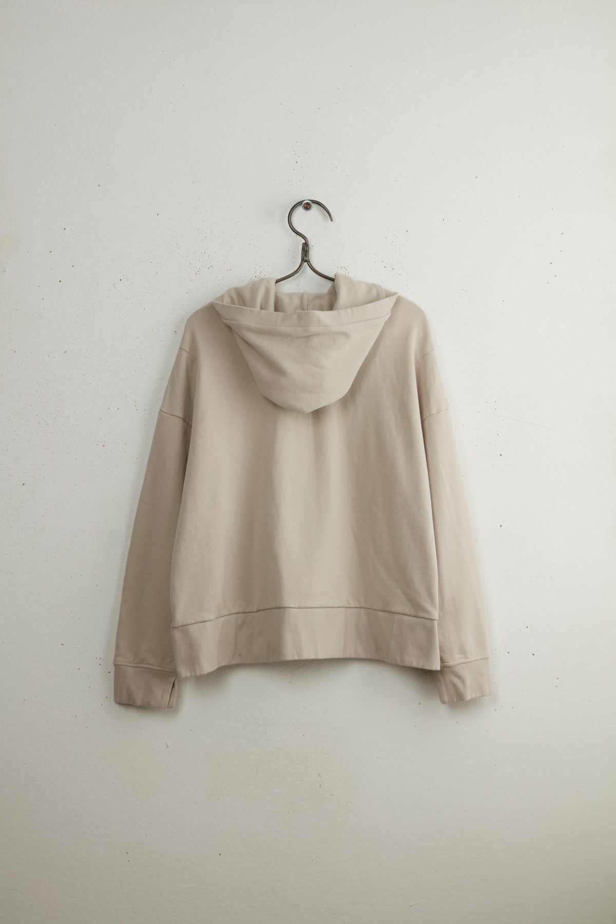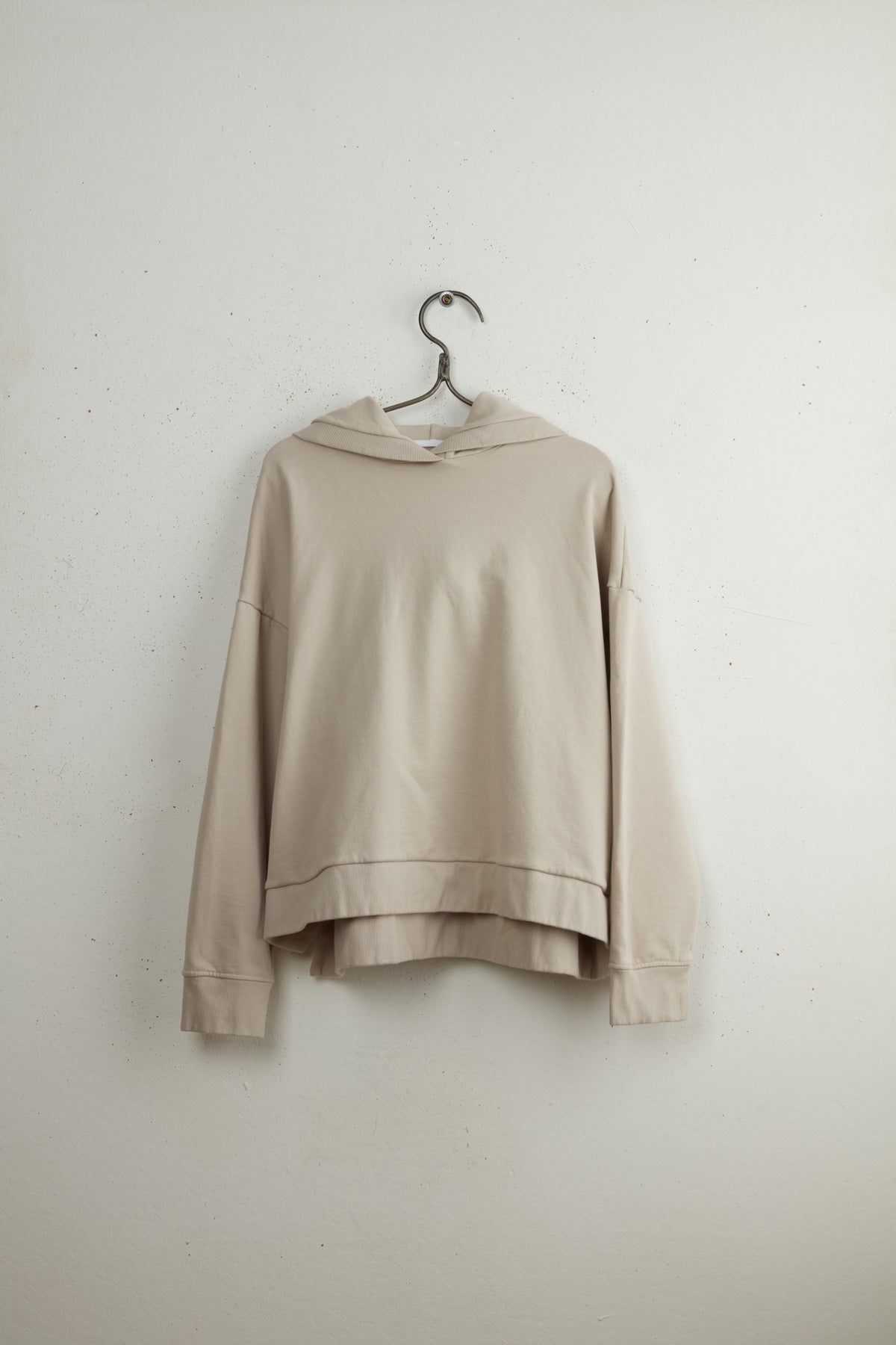 JJ hoodie by Maya Zukerman. A mid-weight soft and cozy hooded sweater made of 100% cotton. A boxy oversized fit, with dropped shoulders and ribbed hem, cuffs and hood. Featuring inner cuff ribbons, side slits and cuff slits. a Double layered hood creating volume and structure.