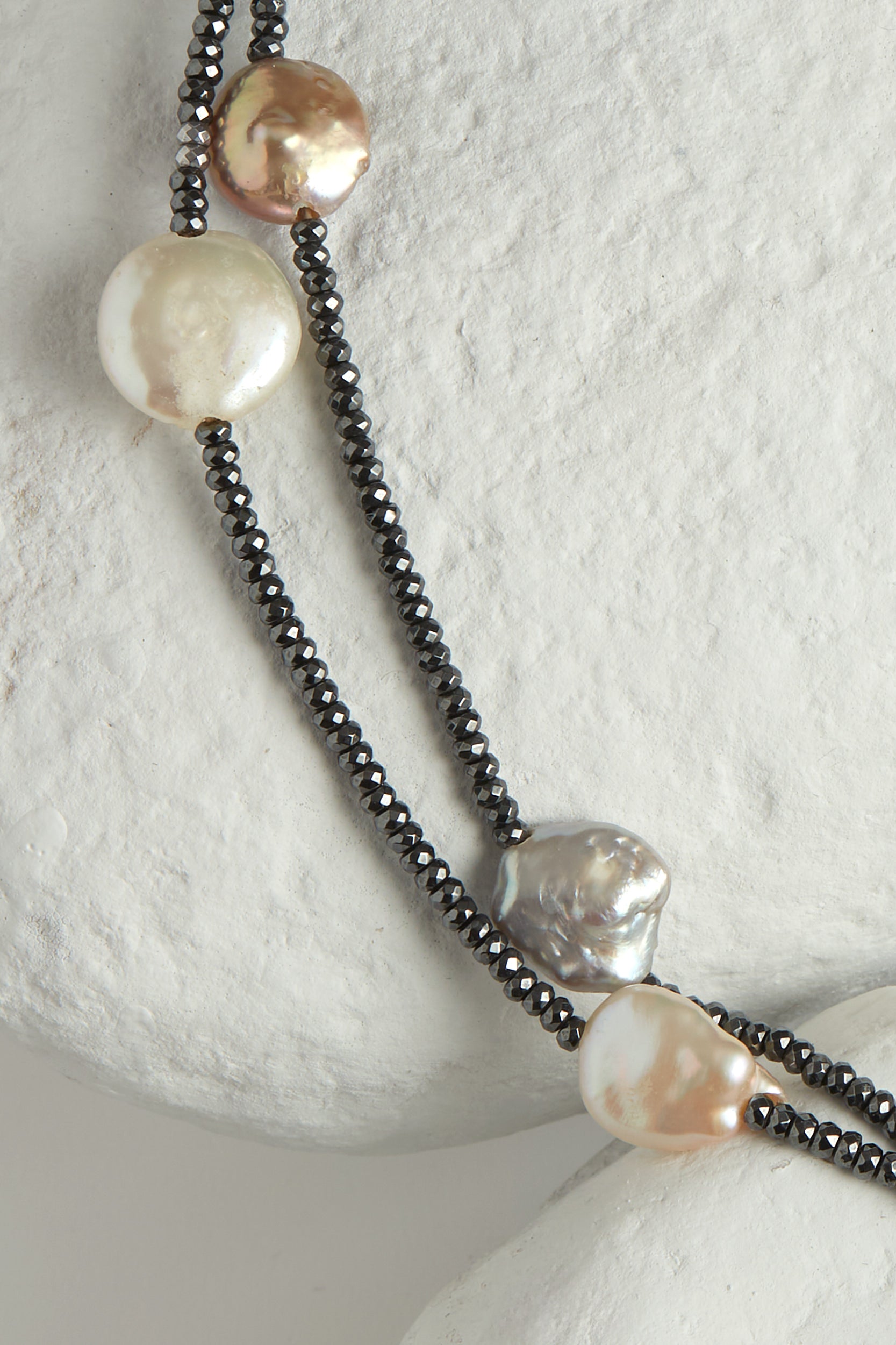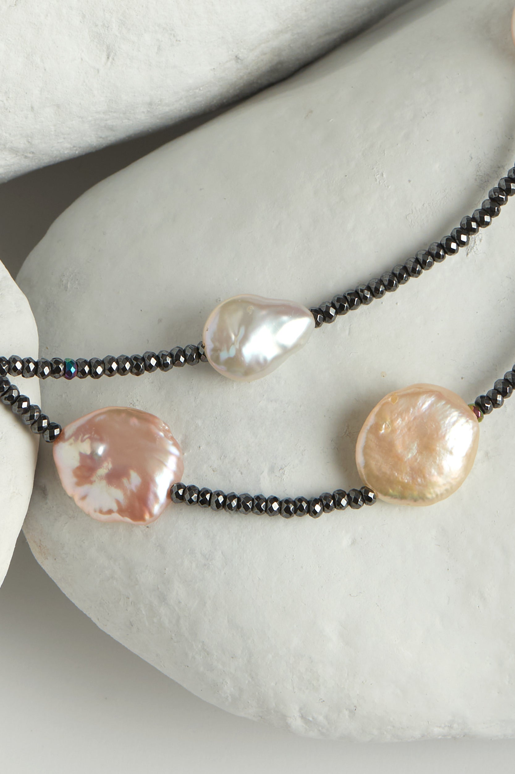 Collier Madras necklace by Jll Pearl. hematite bead necklace with freshwater baroque AA+ quality pearls on a waxed thread.