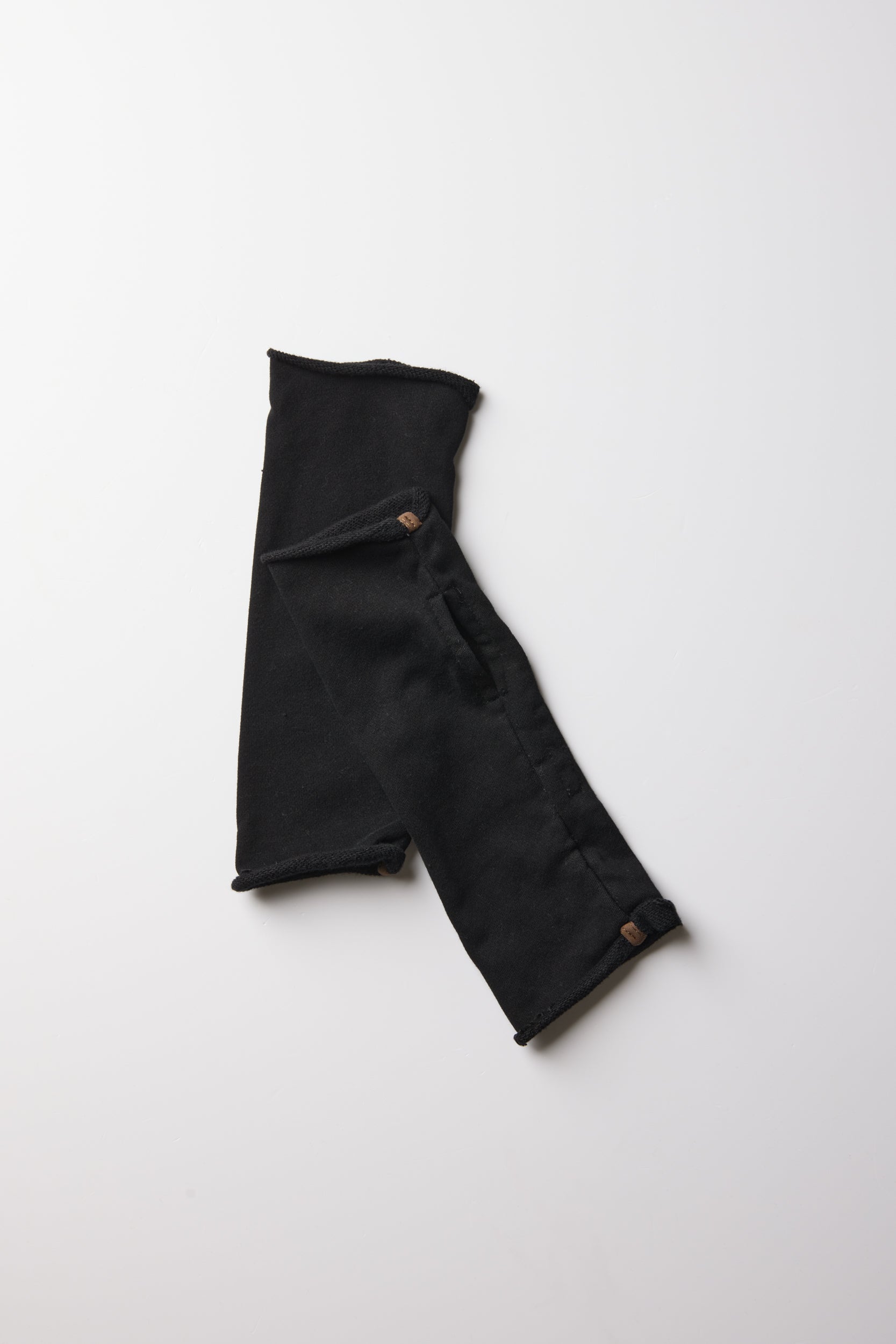 Laurel gloves by Maya Zukerman. Soft fingerless gloves made from 100% Japanese cotton footer. Unlined with a Thumb hole, a rolled trim and colorful ribbon finish. We love wearing it with the matching Hardy hat and Lina pullover.