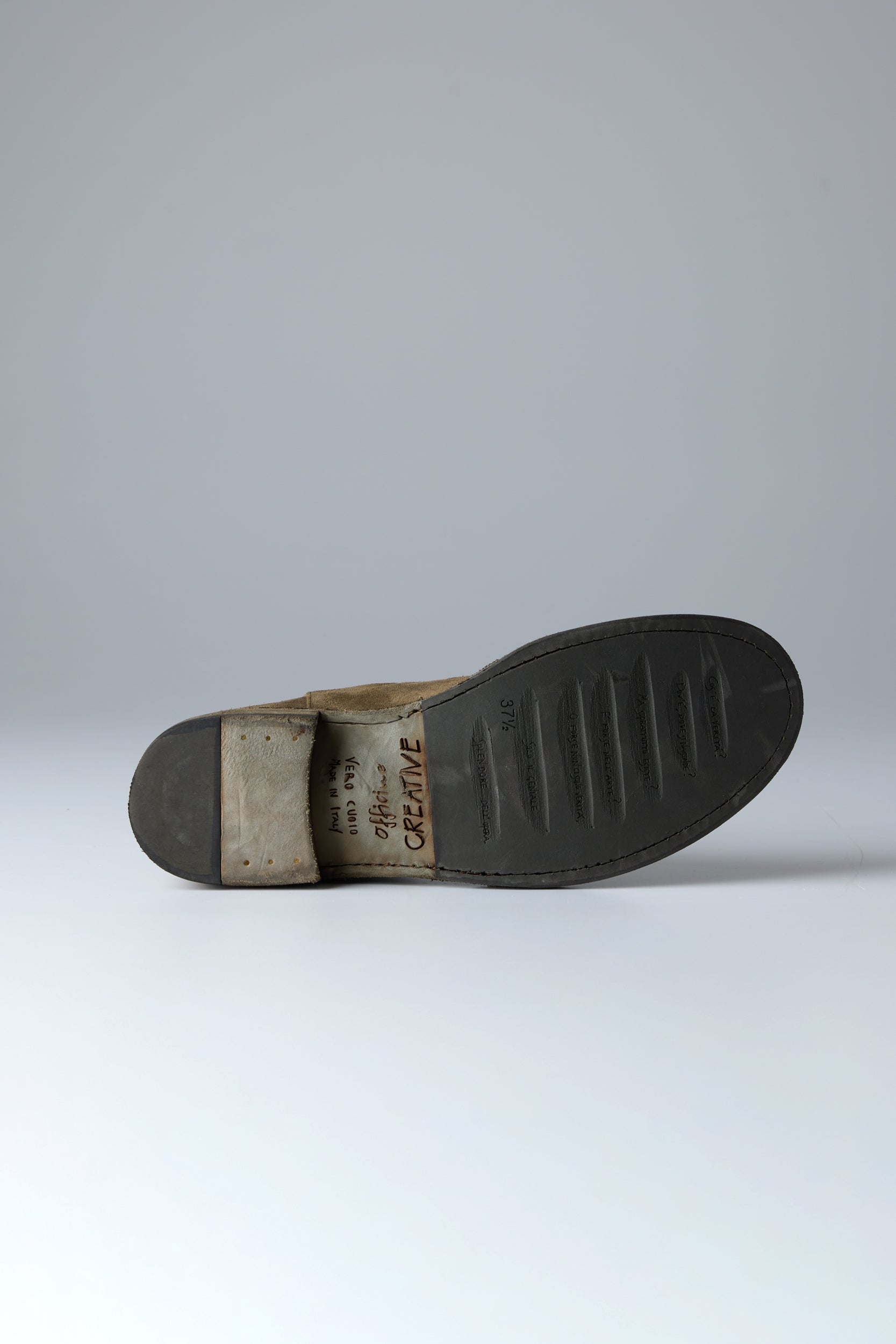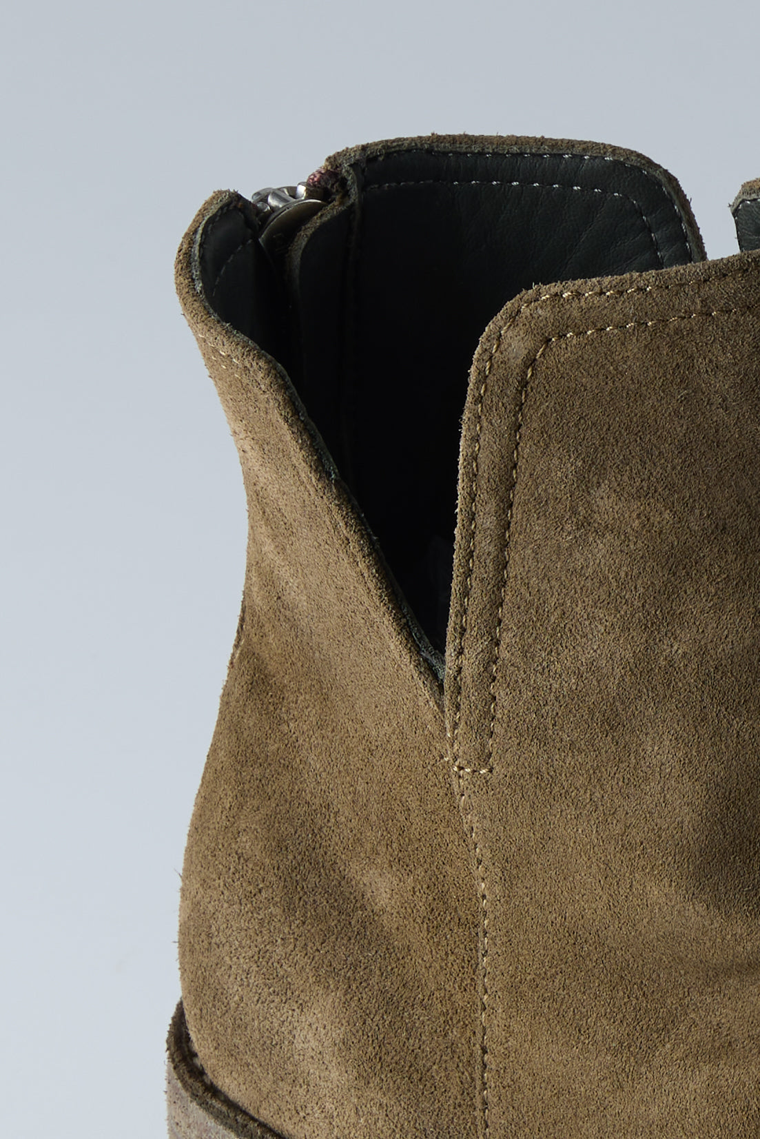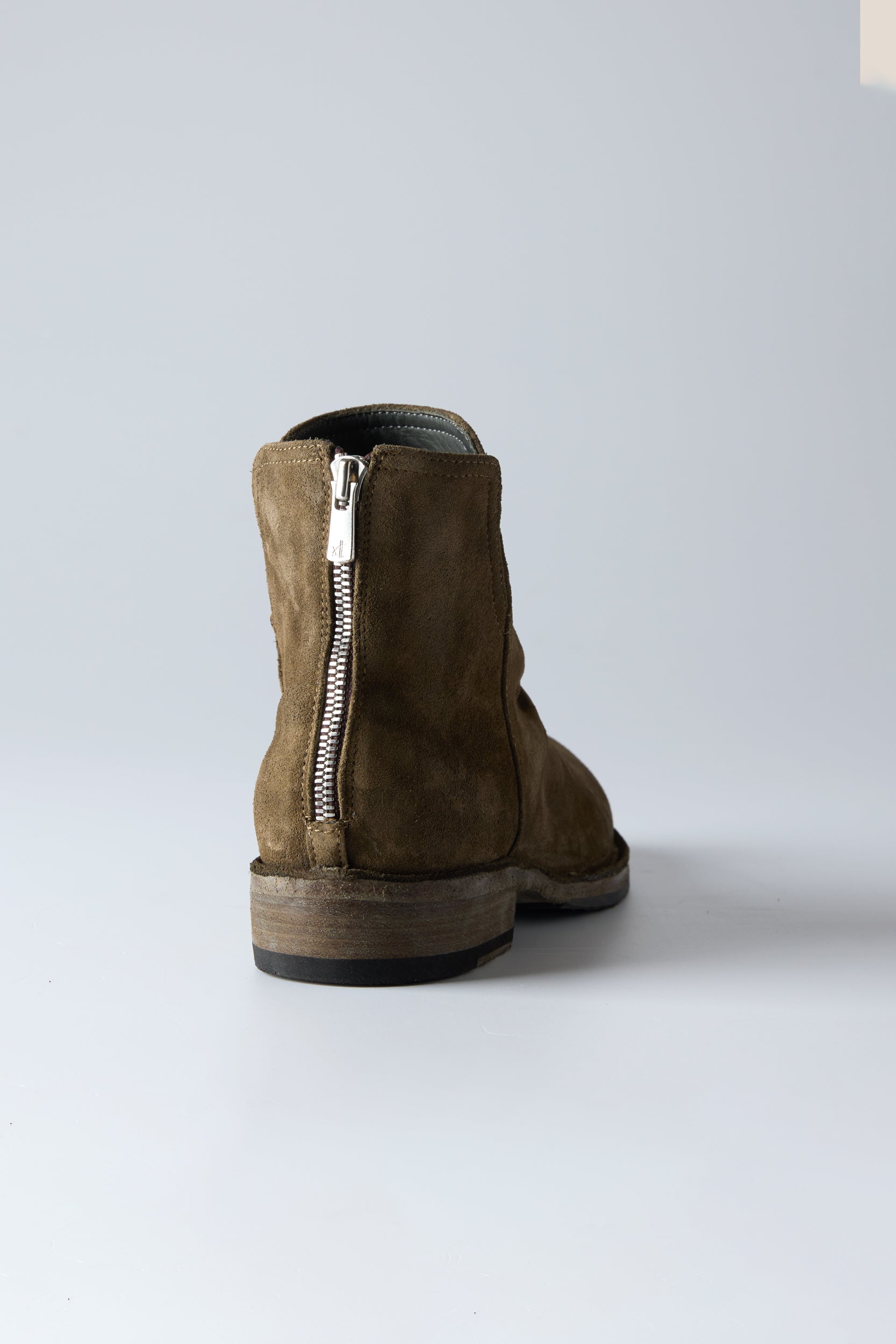 LEGRAND 169 by Italian shoe brand Officine Creative. Handcrafted from soft suede, the Legrand 169 boots are defined by subtle ruching on the vamp, a sturdy back zipper for easy wear and a rubber-injected sole with engraved poetry. Large fit, take one size up.