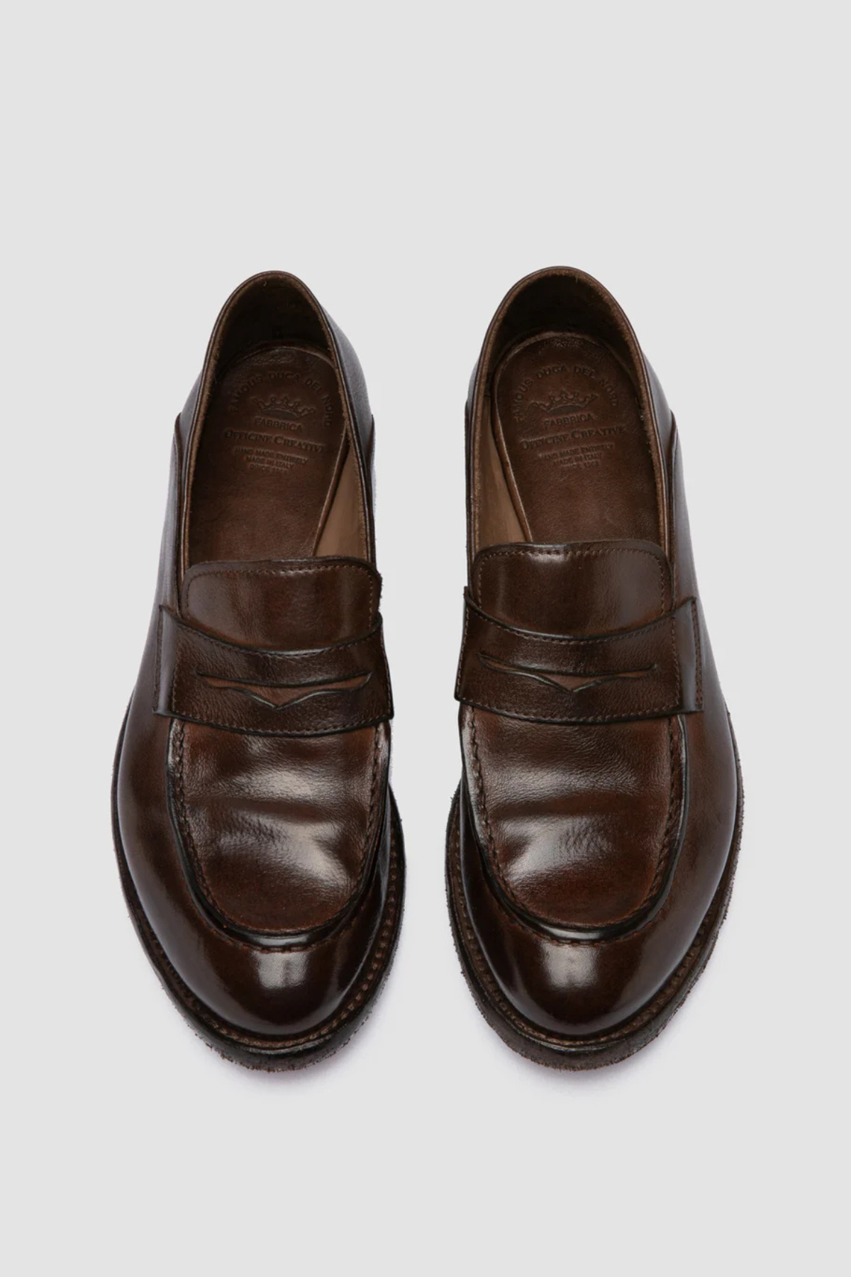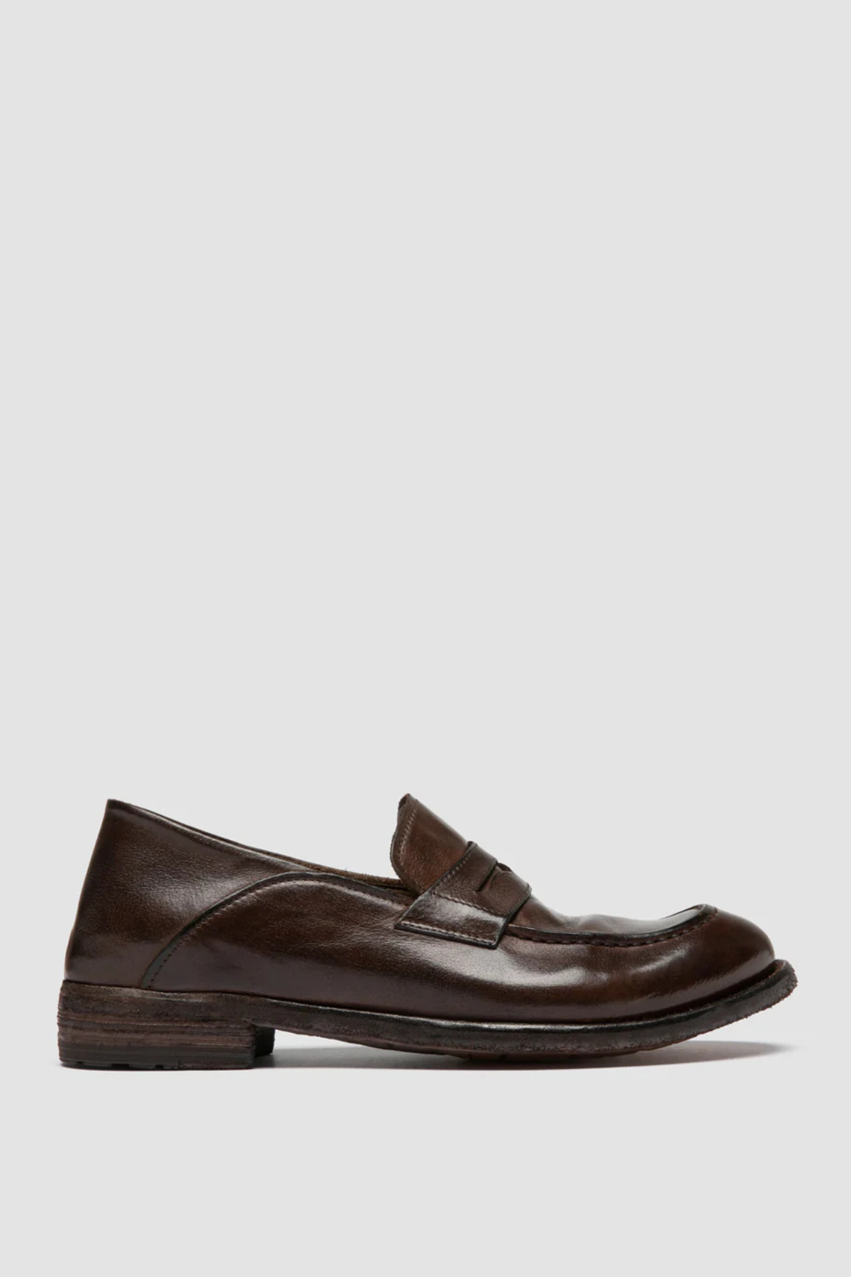 LEXIKON 140 Woven Leather Loafers by Italian shoe brand Officine Creative. A classic penny loafer that feature a vegetable tanned leather upper with a shaded effect, a rounded toe and a durable leather sole with a squared stacked heel, for a timeless and casual look.