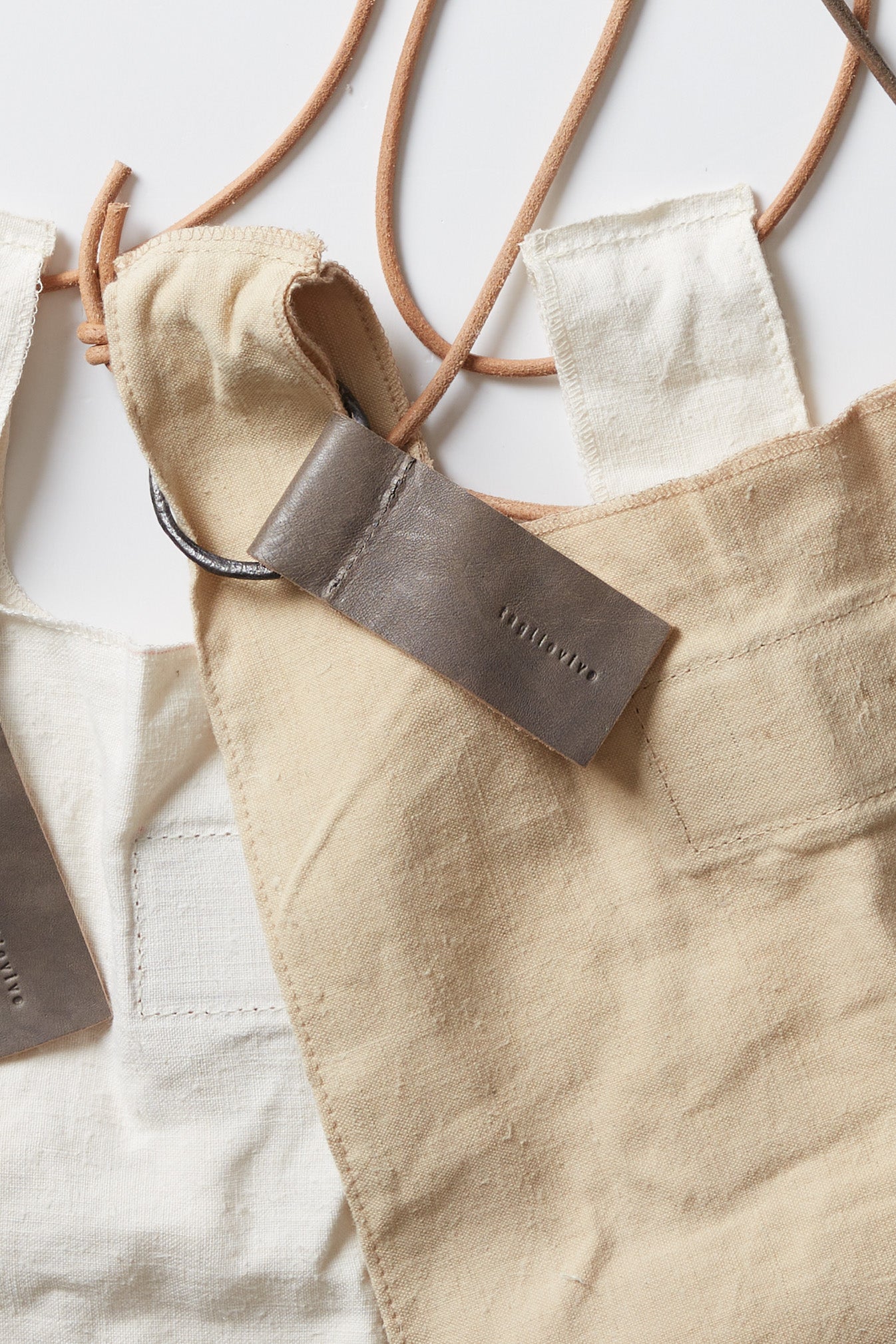 Tagliovivo’s “Light Busta” bag features a square hemp body with leather straps and tag. composed with vintage hemp, natural tanned rough leather and antique metal, all made in Italy with traditional Tuscan craftsmanship. light weight and comfortable thanks to its fine materials and adjustable leather straps.