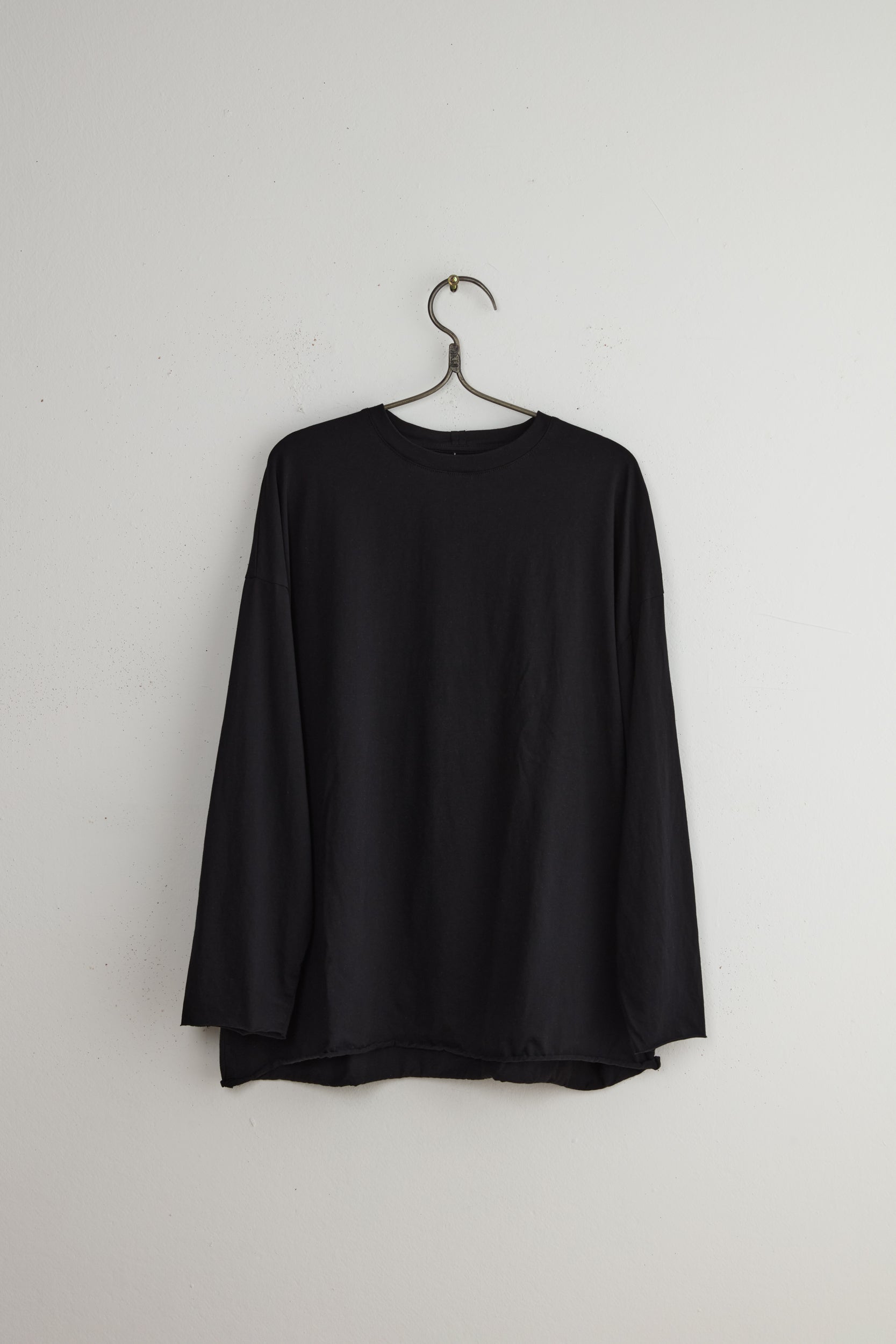 Lili t-shirt by Maya Zukerman. A colorful, soft cotton t-shirt with an oversized fit. A simple round neck tee with long sleeves and raw hemlines. The side seams are sawn in a diagonal line and so are the shoulder seams