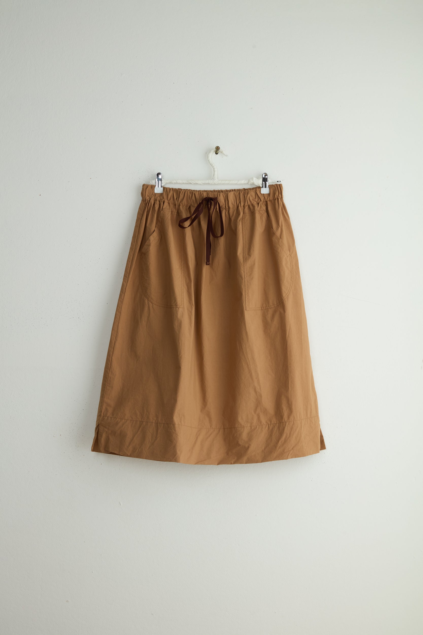 Tilly skirt by Maya Zukerman. A light, mid-length skirt made from crisp Japanese paper cotton. A-shaped with drawstring and elastic waist, two large front patch pockets and wide hems.