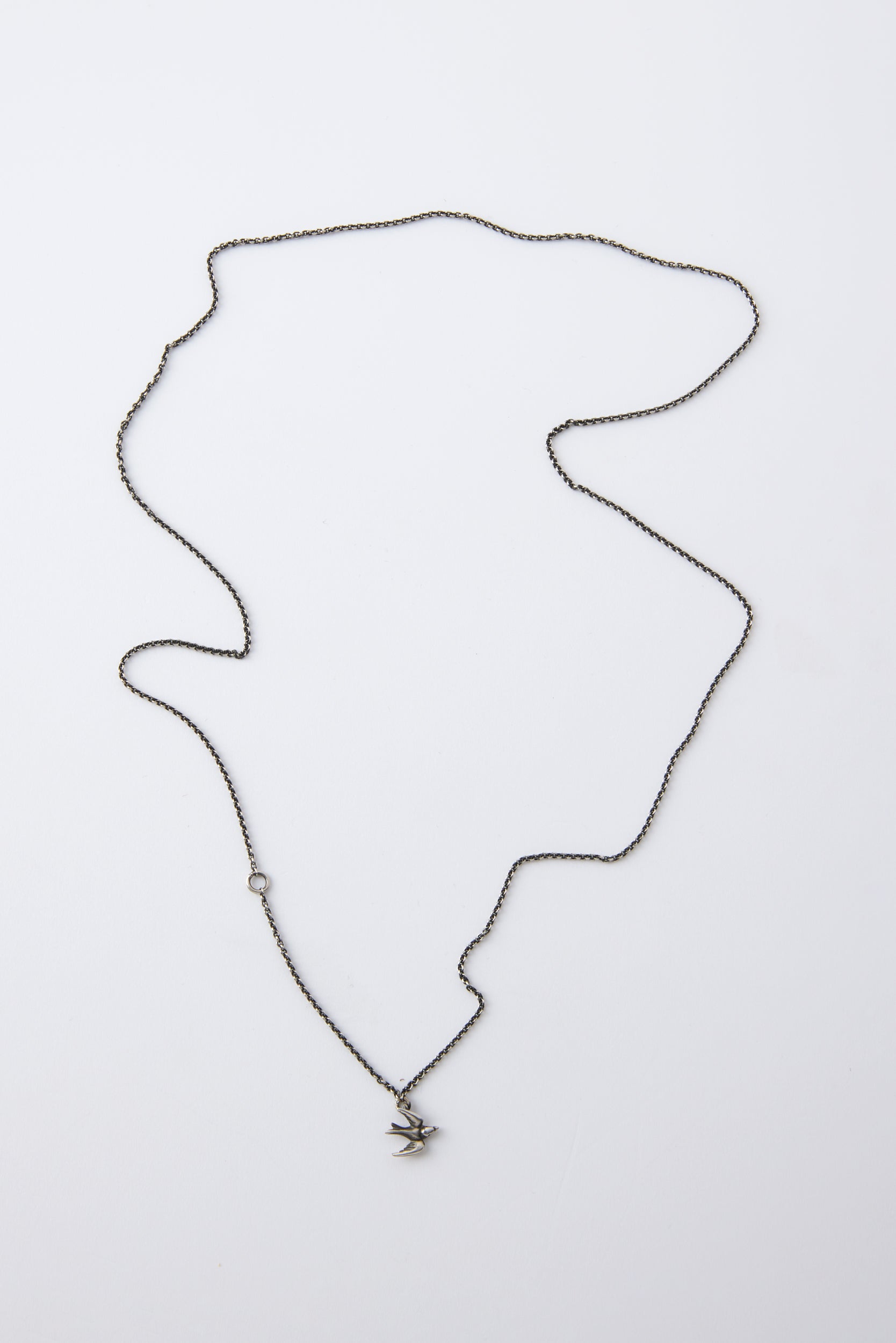 The mini swallow chain is a delicate sterling silver chain with a little swallow charm cast in silver. long enough to slide over your head.