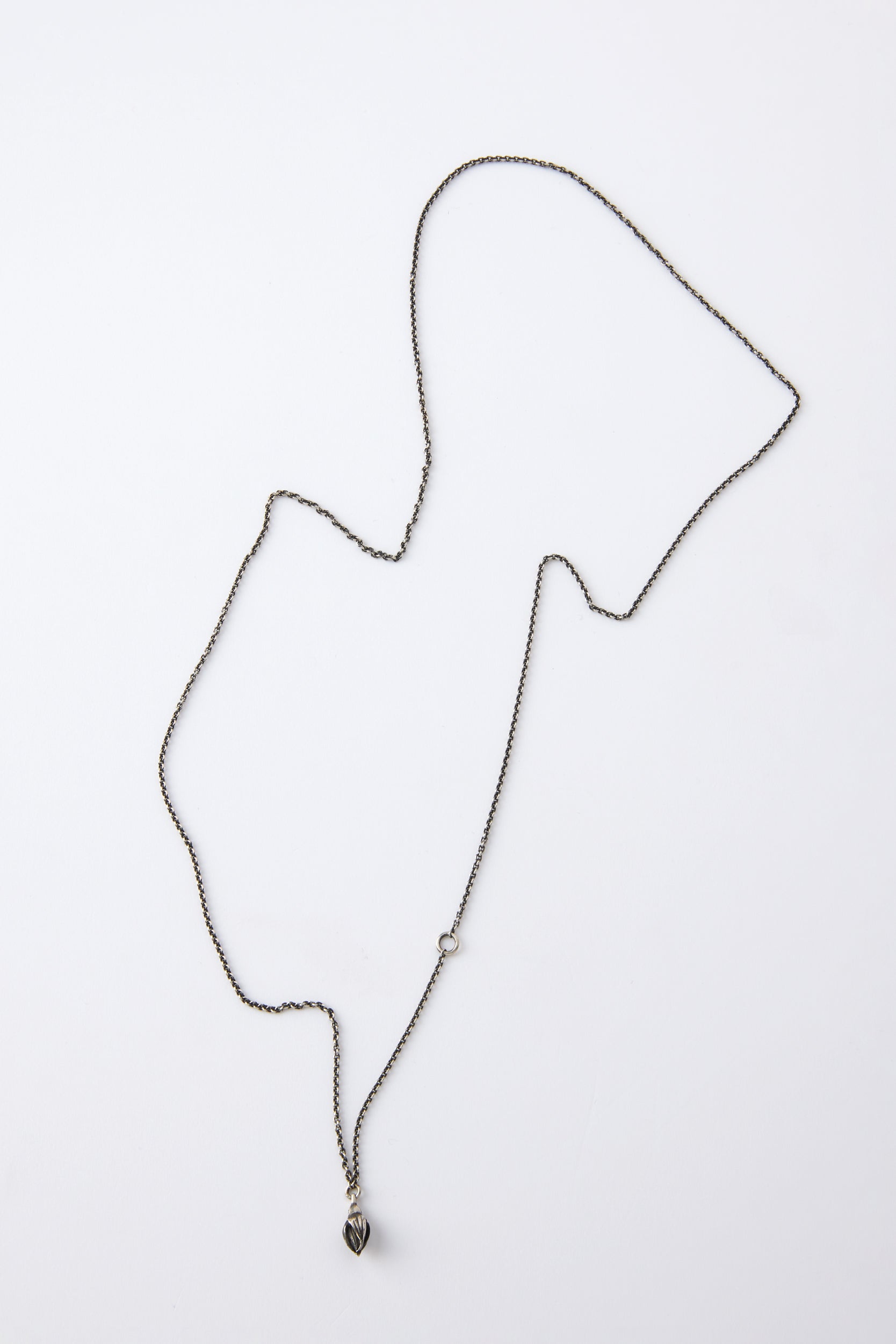 The mini rosebud chain is a delicate sterling silver chain with a little rosebud charm cast in silver. long enough to slide over your head.