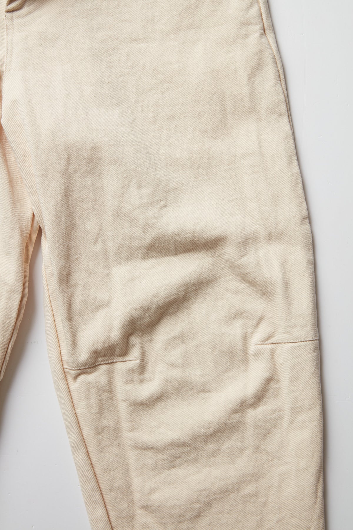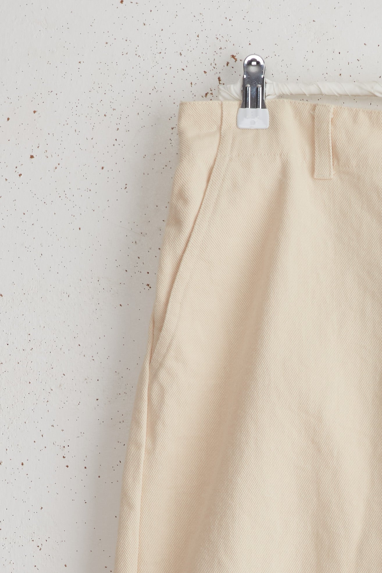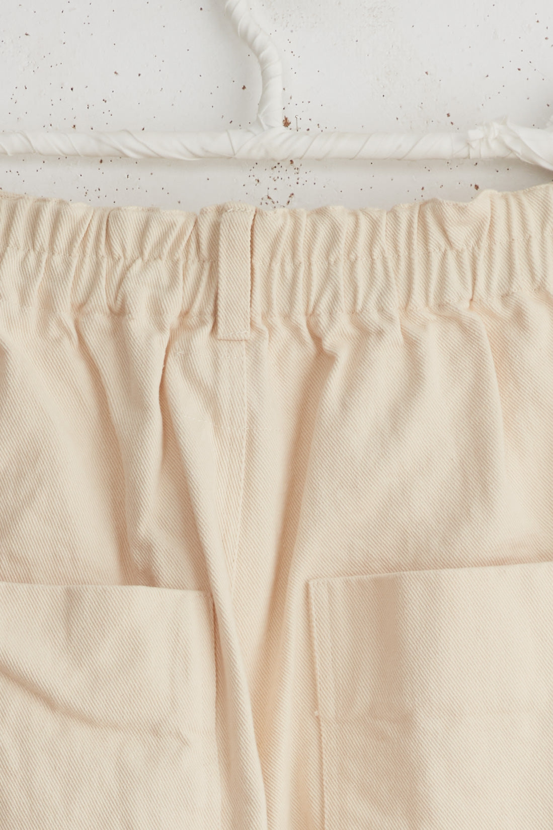 Marly pants by Maya Zukerman are relaxed, tapered legged pants made of soft cotton canvas. Featuring the signature Maya Zukerman square patch pockets and additional side pockets, these were designed with skipper work-wear in mind. Fitted with a metal button and zipper closure, elastic band and belt hoops. Mid-high rise fit with decorative stitch detail on the knee.