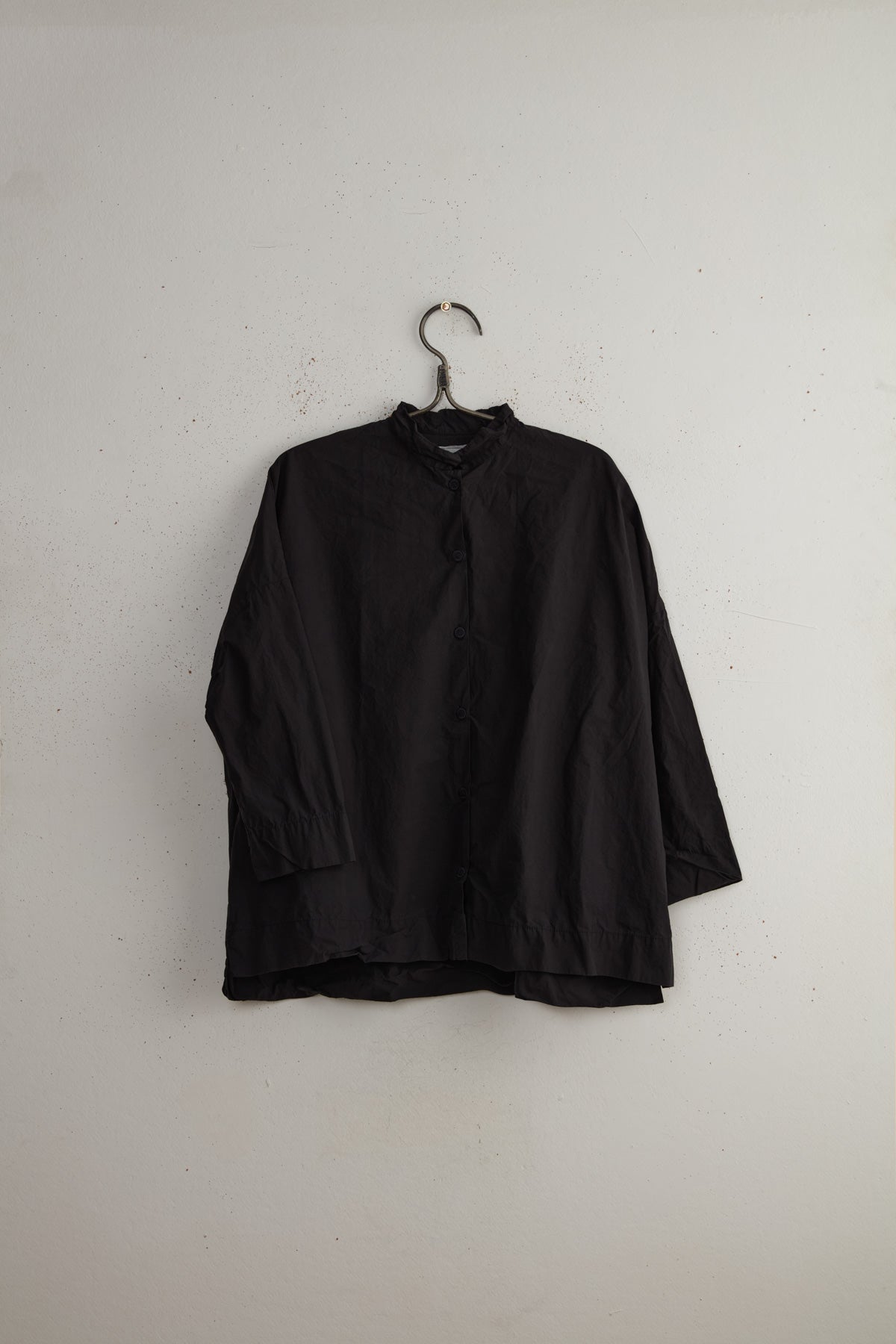 The Melody shirt by Maya Zukerman is a light and breezy collared shirt made of 100% Japanese paper cotton. A "BOXY" shaped silhouette, hand dyed Dorset button closure, slim collar and dropped shoulders. Finished with a wide hem, side slits and round cuff slits. Relaxed fit, slightly shorter on the front.