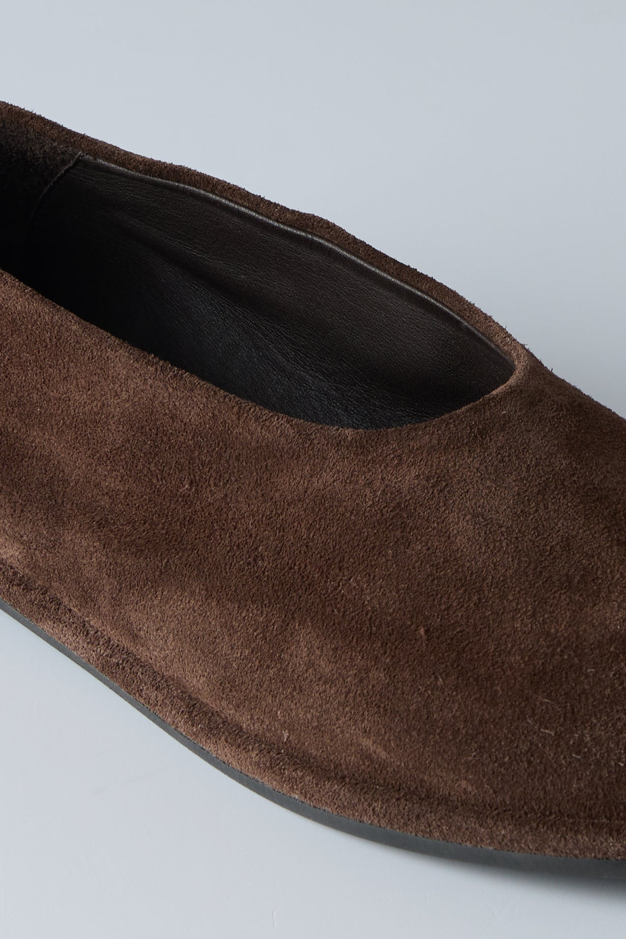 MIENNE 110 by Italian shoe brand Officine Creative. Minimalistic suede flats with a wide rounded toe and ultra-light EVA sole. Regular fit. Take your normal size.