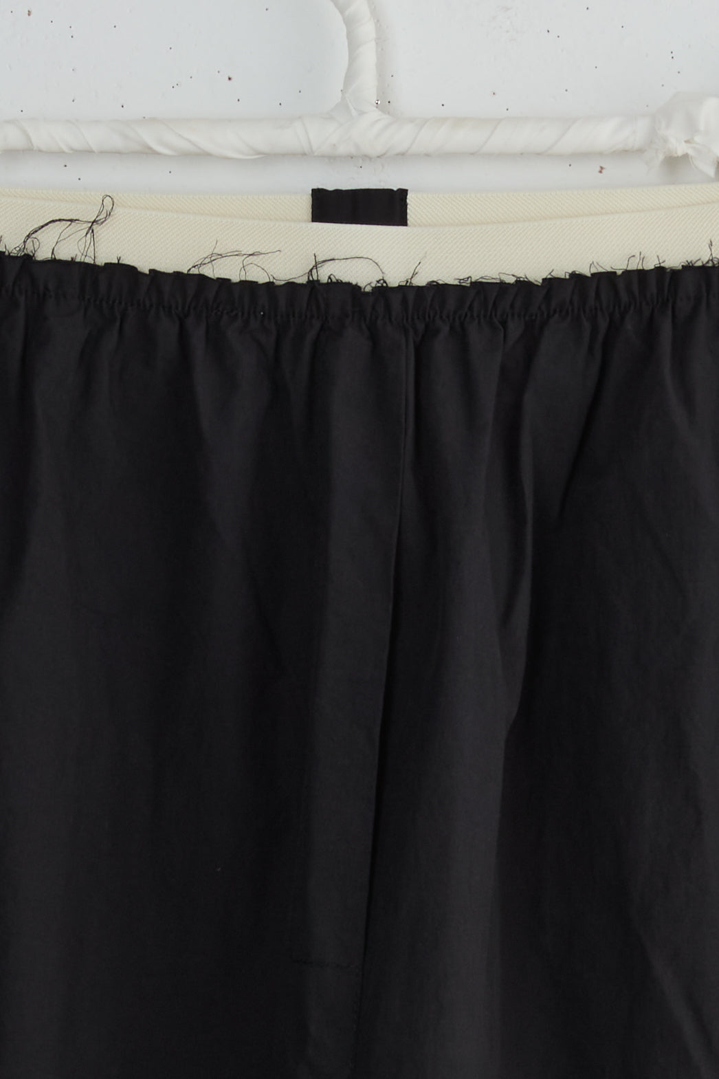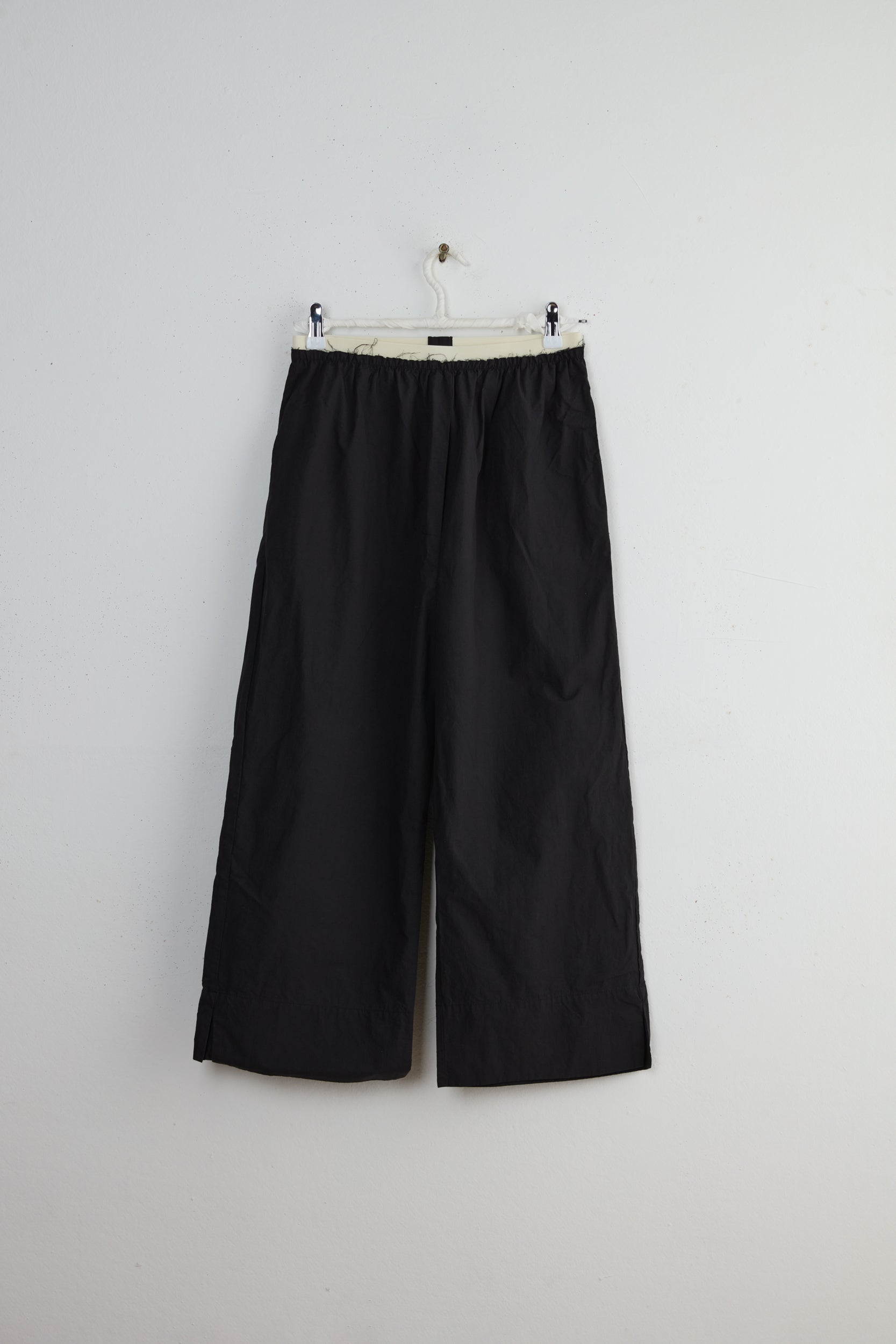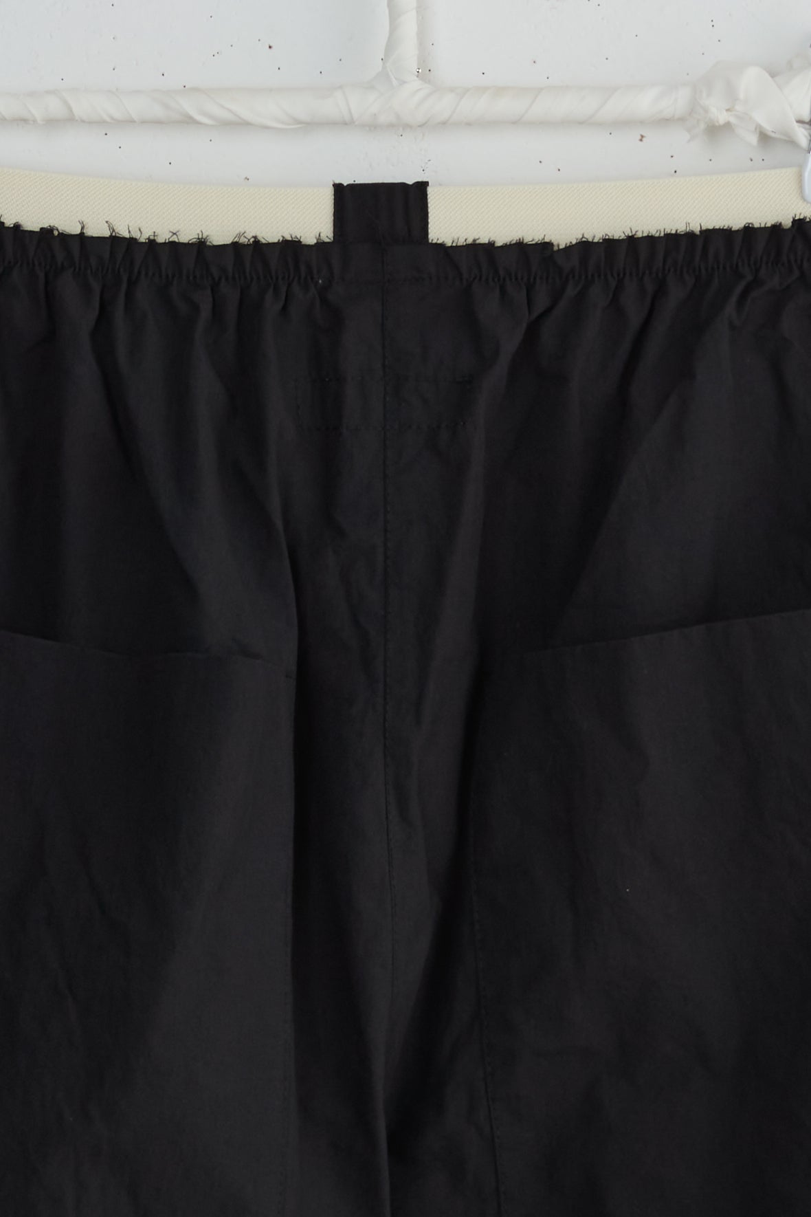 Monn pants by Maya Zukerman. Light and breezy paper cotton pants with an exposed elastic waist and false fly. A straight loose fit with two side pockets, back pockets and wide hems with side slits. Monn's elastic ribbon comes in a variety of colors.