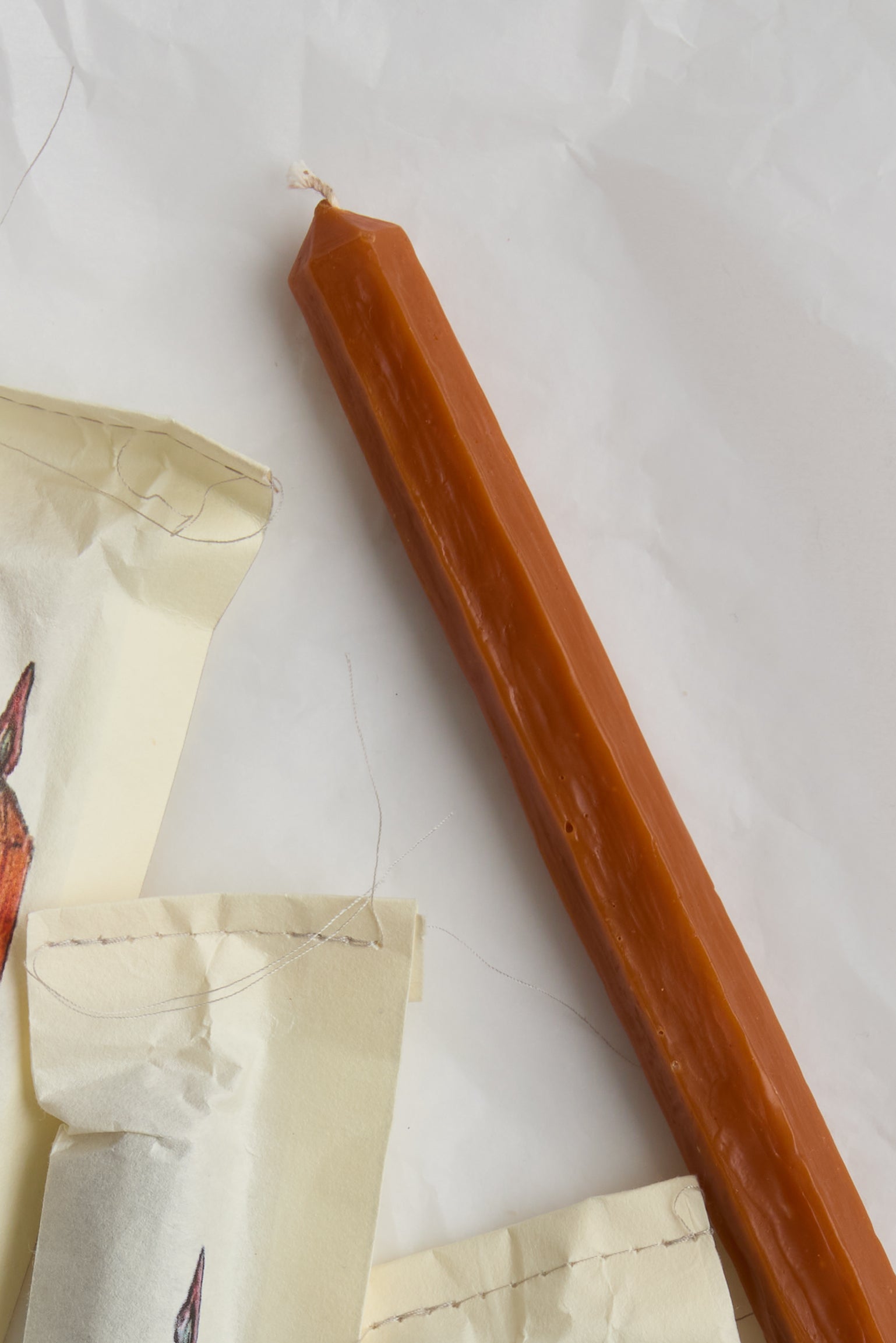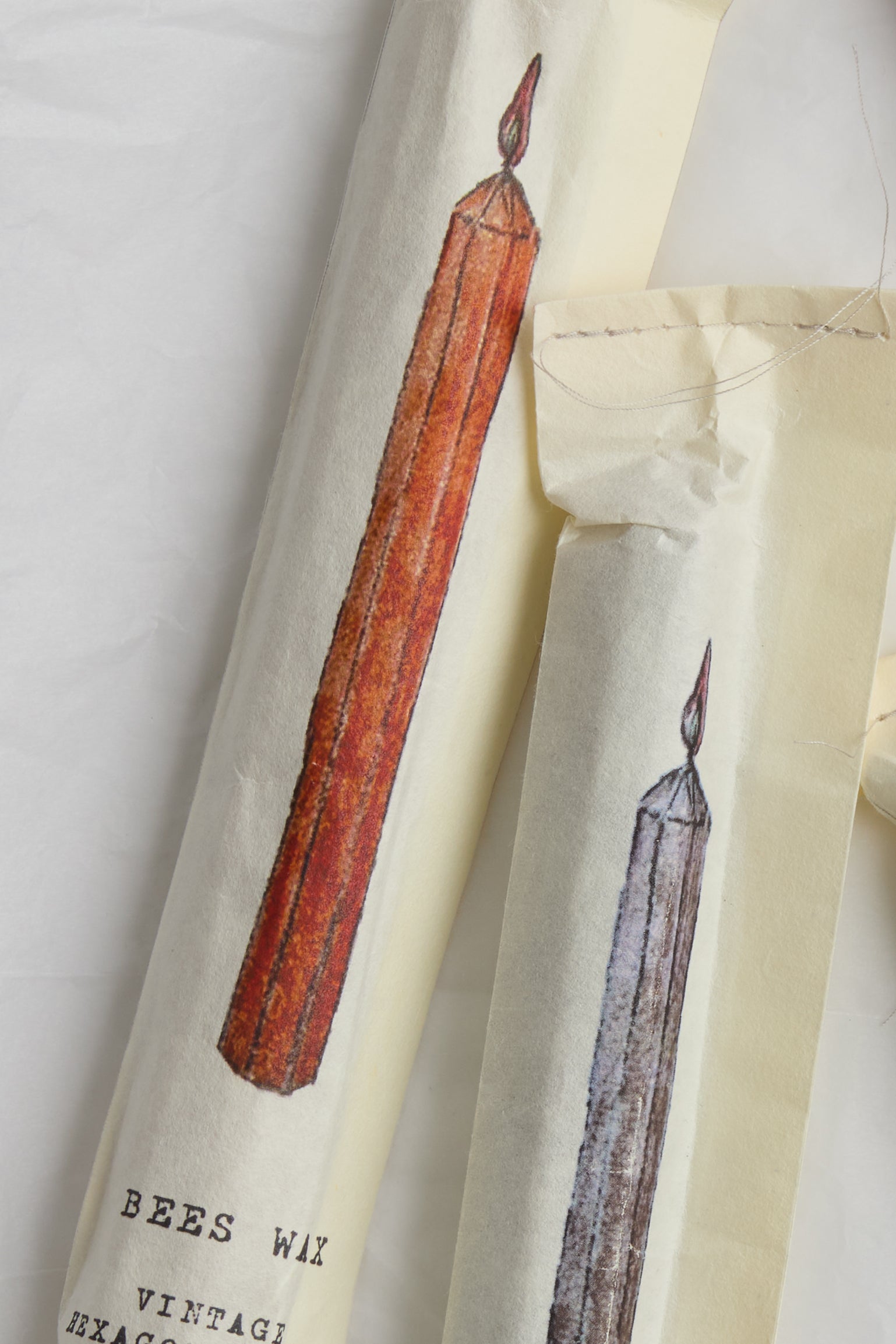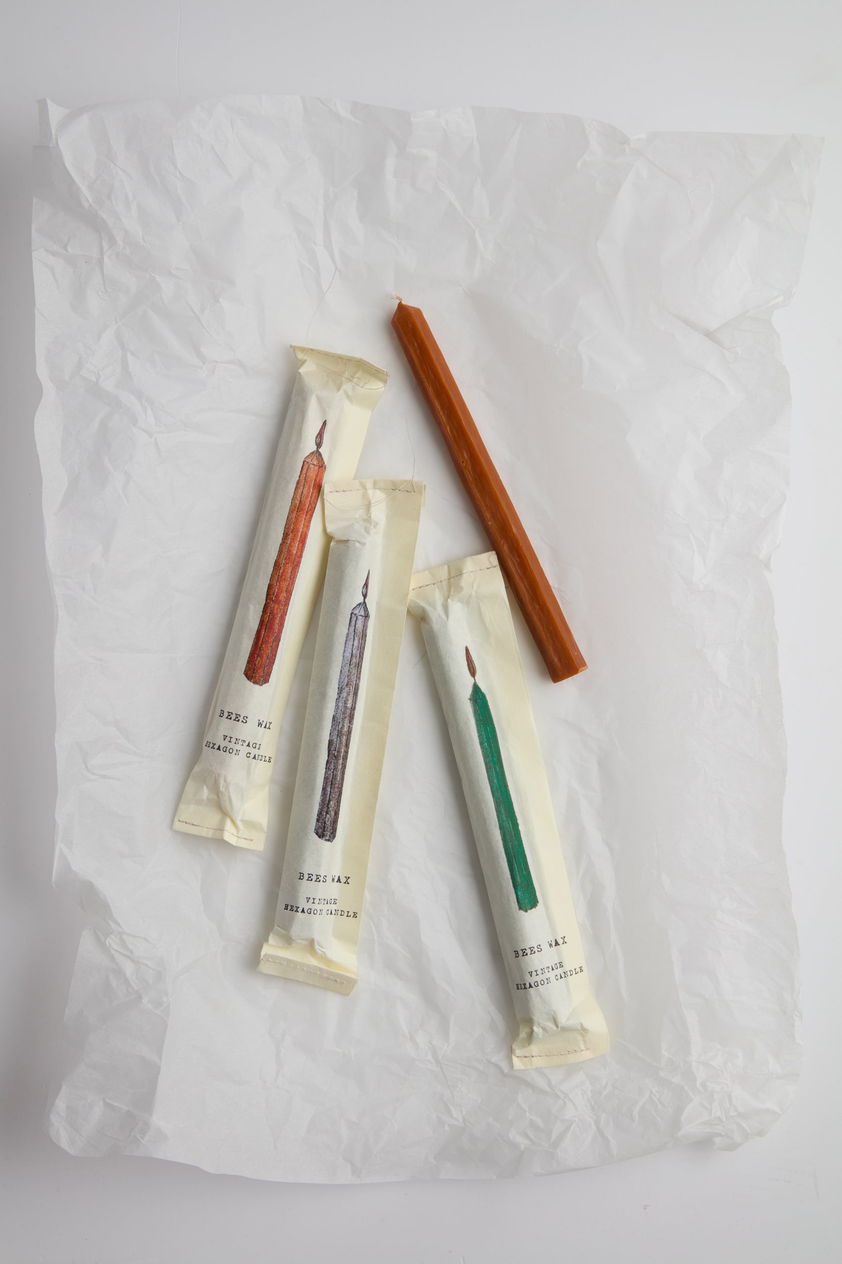 Vintage hexagon candle by Mi Soplete. A colorful, hand carved candle made of 100% natural beeswax. Beeswax contains propolis, a natural antibiotic that protects beehives, so it is effective in eliminating bacteria in the air (fine dust), preventing rhinitis, enhancing immunity, and treating asthma. This candle is not perfectly smooth because it was made by carving the surface and cutting the angles directly with a chisel.