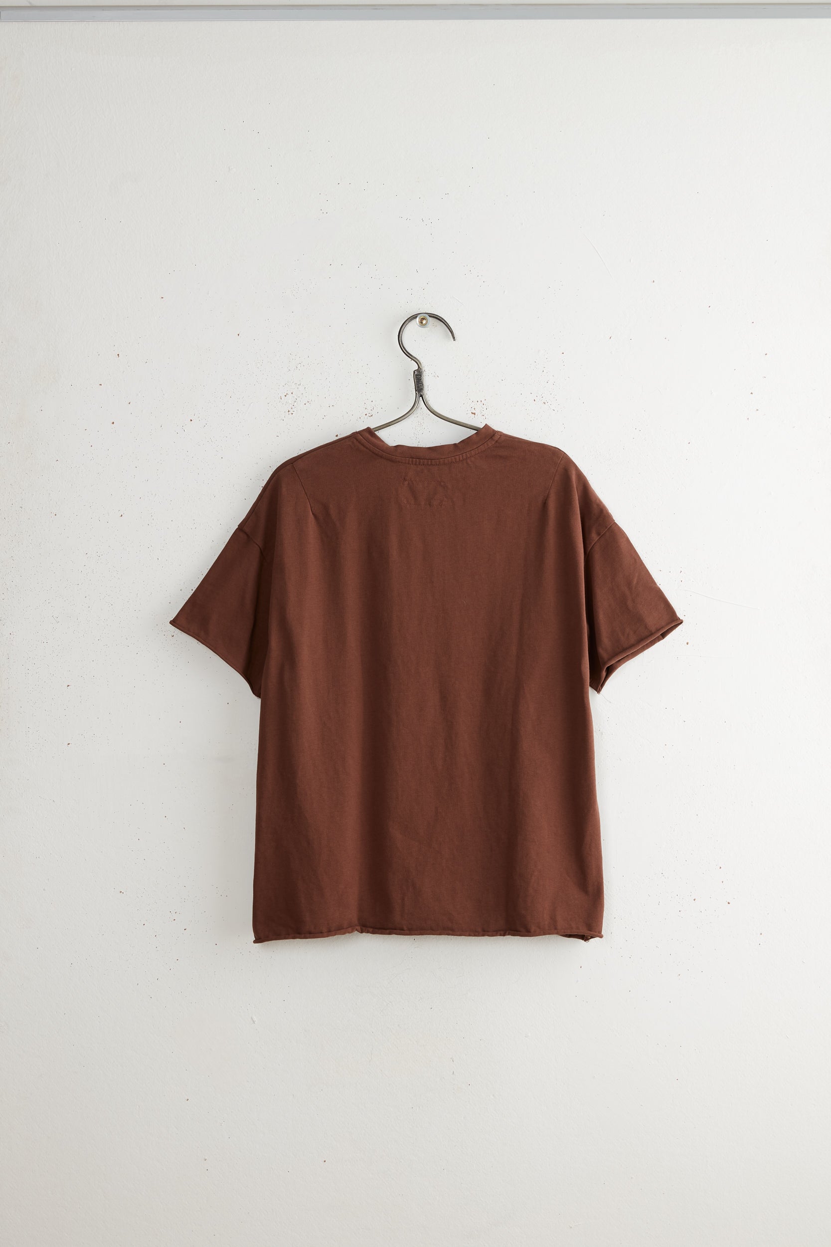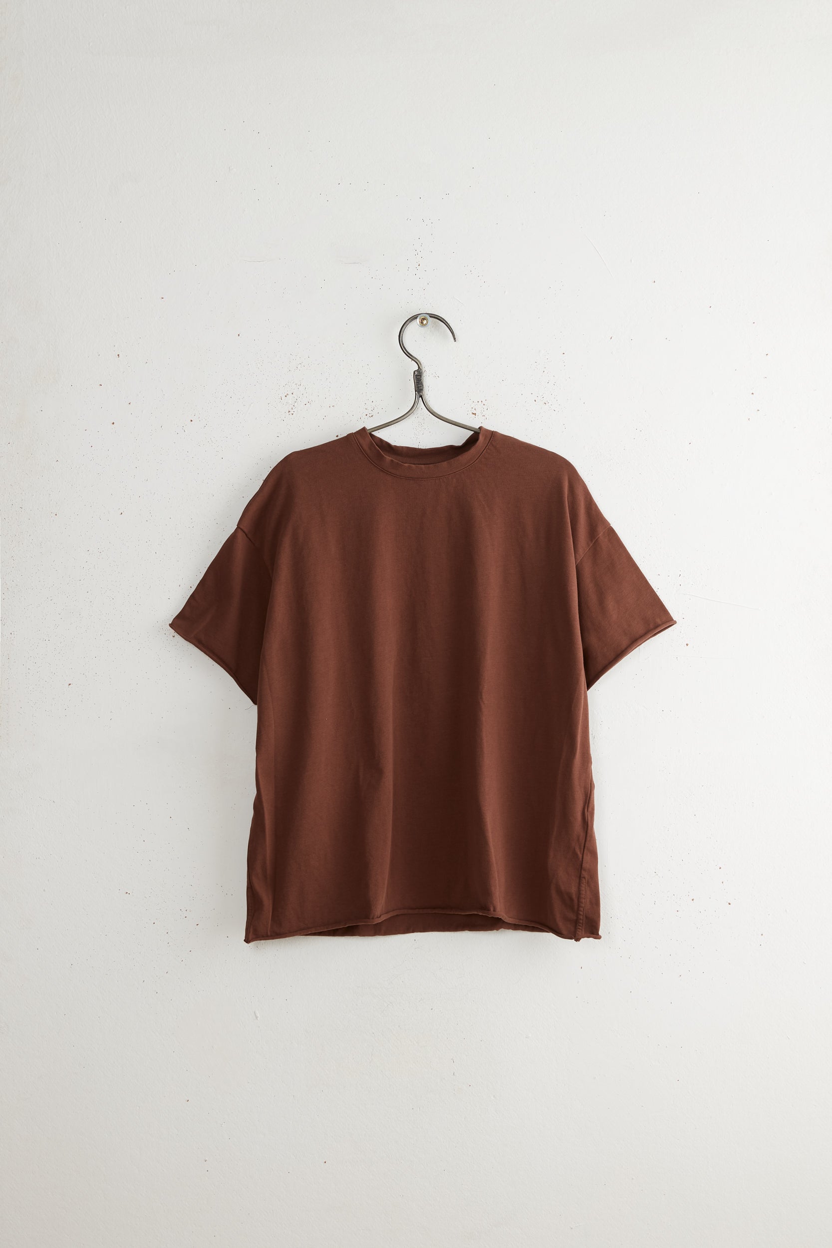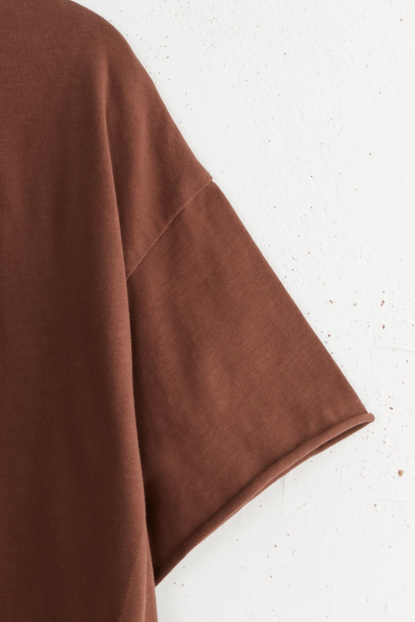 Nabily Cotton T-shirt by Maya Zukerman. Basic oversized tee made of mid-weight jersey with raw hems and colorful inner ribbons covering the side seams and the sleeve seams.