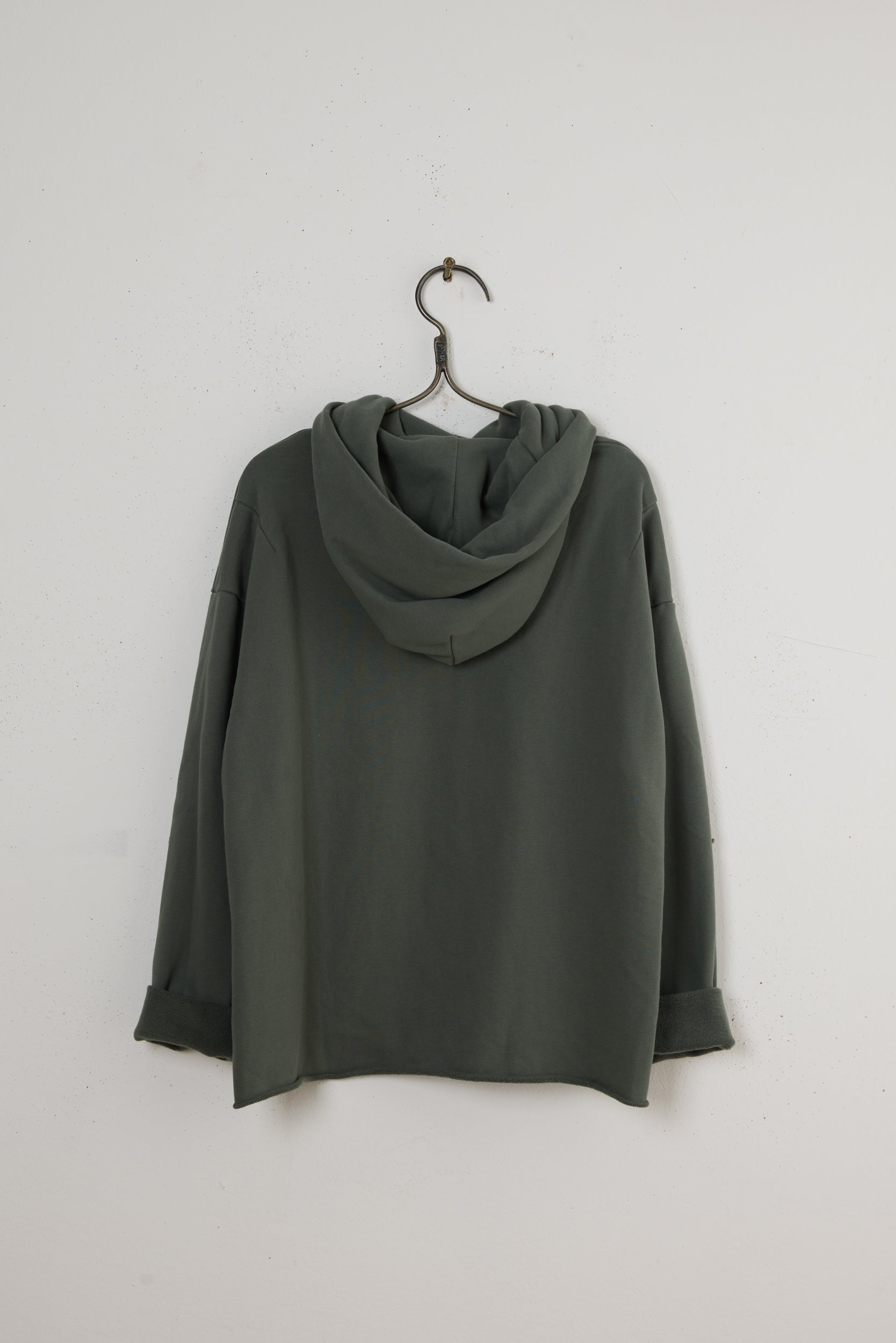 The Ollie hoodie by Maya Zukerman. A soft and cozy sweater made of 100% cotton footer. Featuring a chunky cross finished hoodie, dropped shoulders, colorful inner ribbons covering the side slits and the cuffs and a Raw hem longer at the back.
