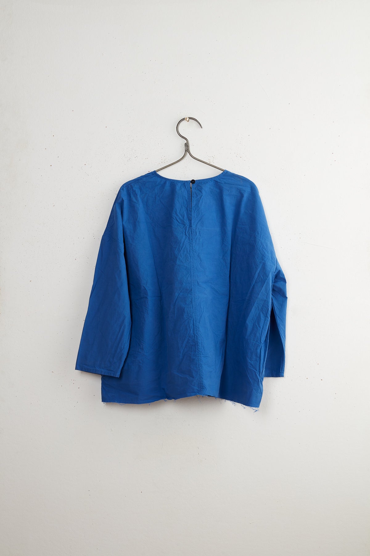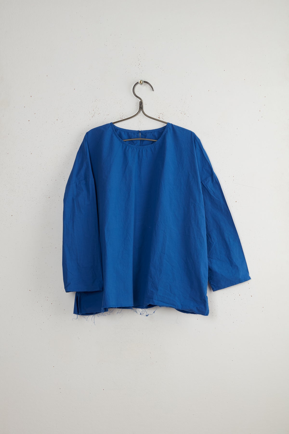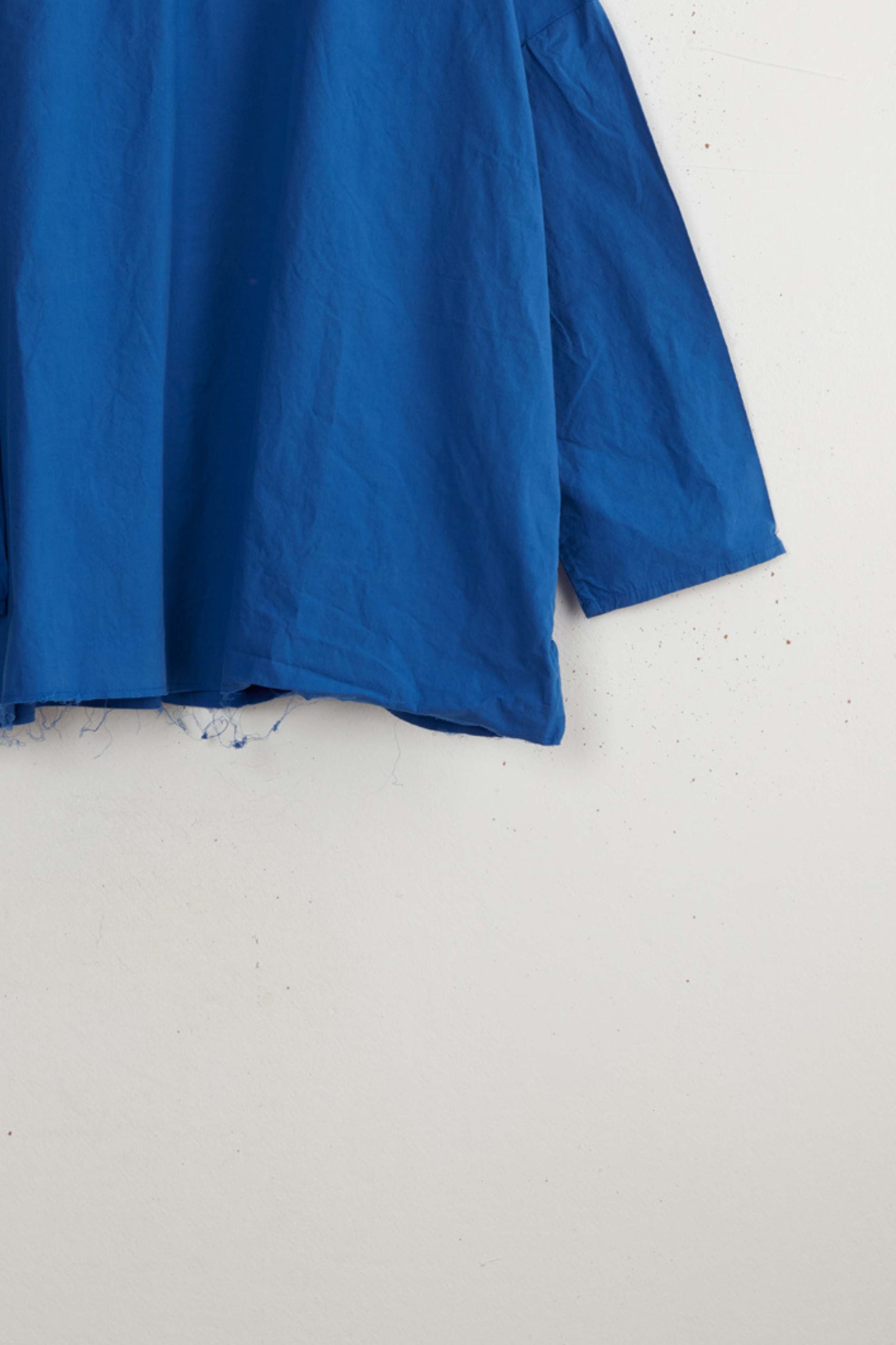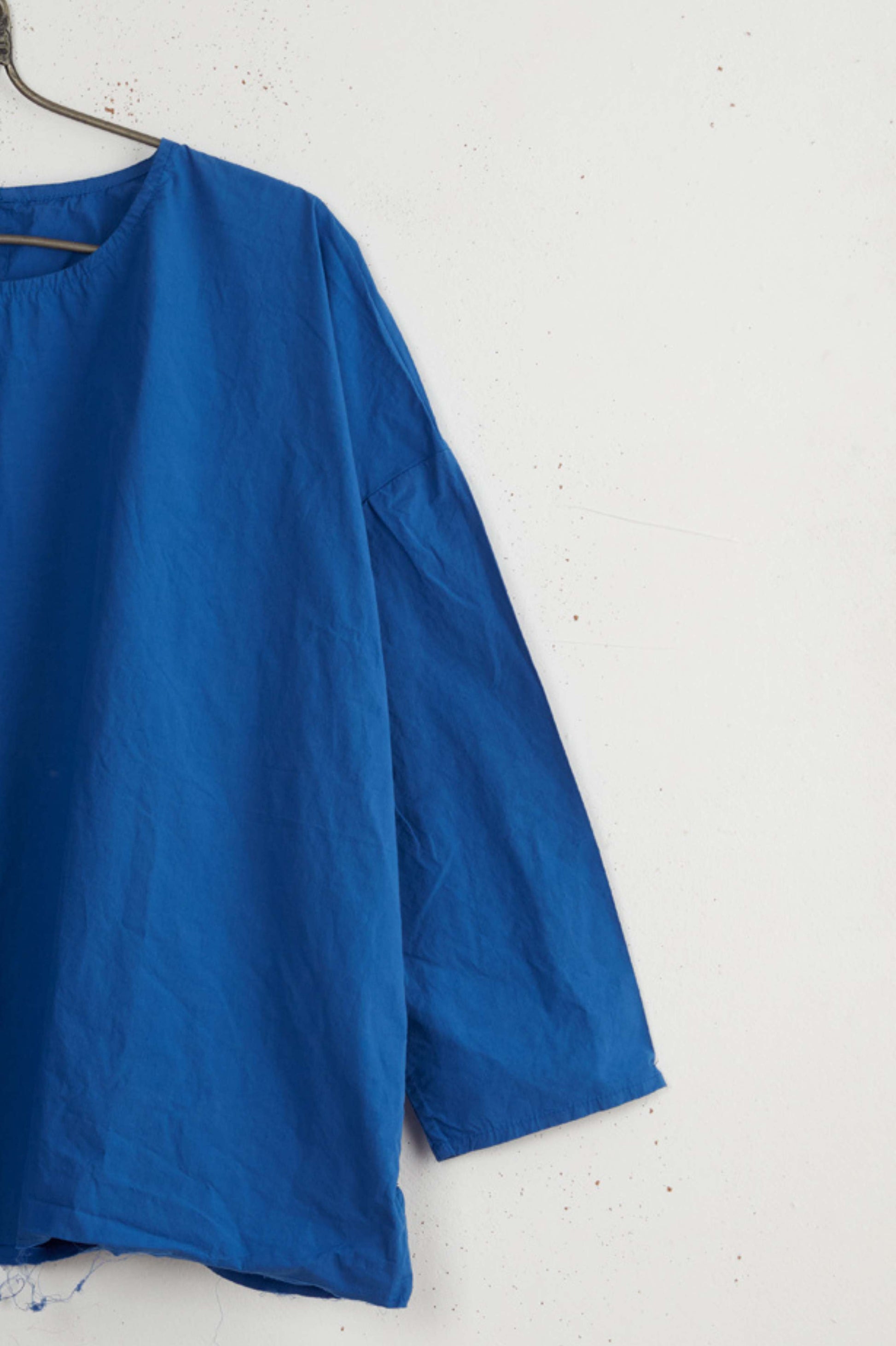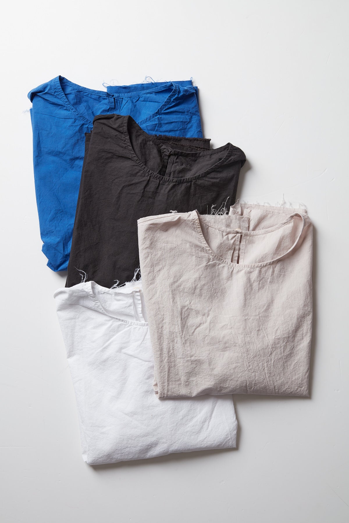 Pollyanna long shirt is a Maya Zukerman staple. A light-weight, classic silhouette made for year-round wear. made of 100% Japanese paper cotton, a straight oversized fit with dropped shoulder, crew neck and wrist long sleeves. A raw hem fitting shorter on the front, side slits and a back slit with a hand dyed Dorset button closure.