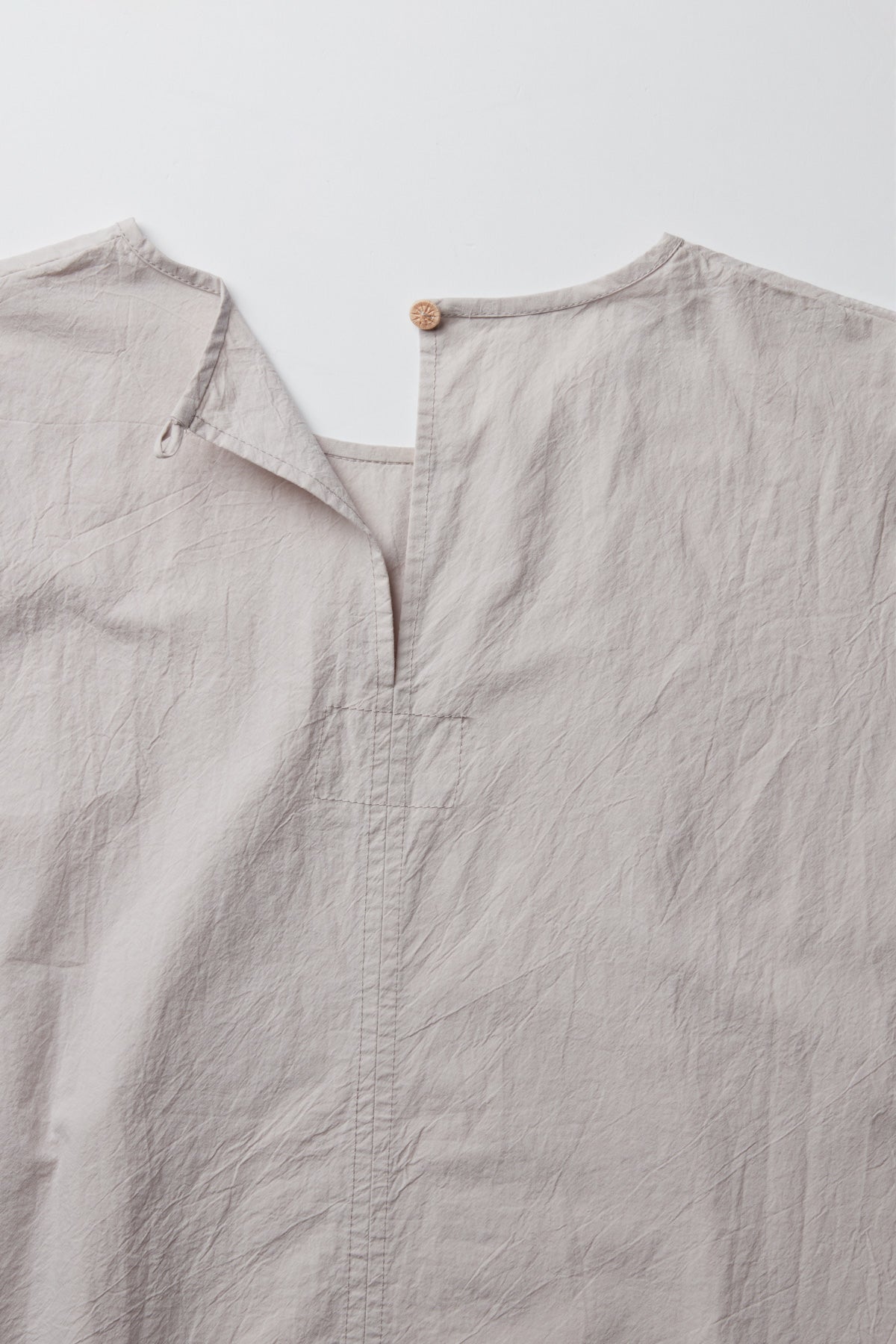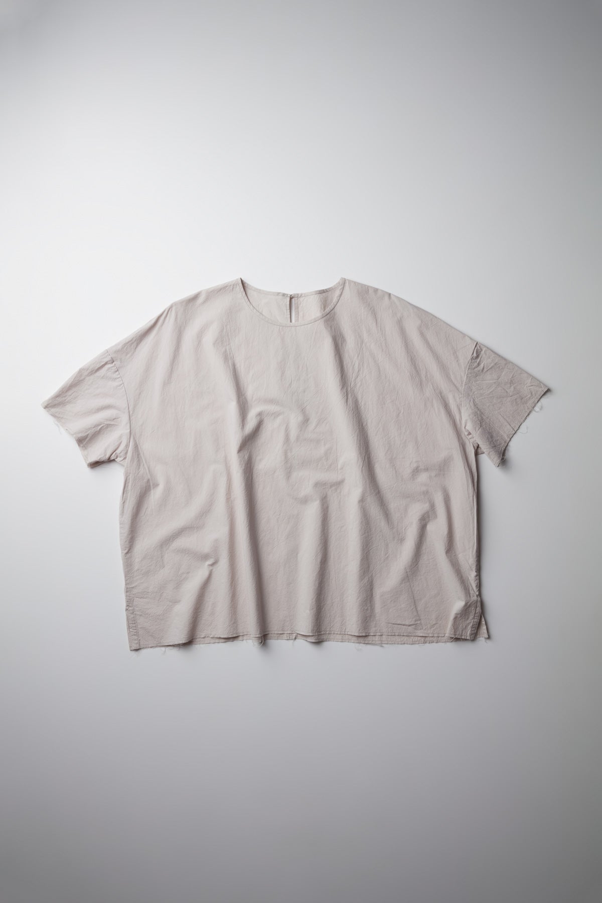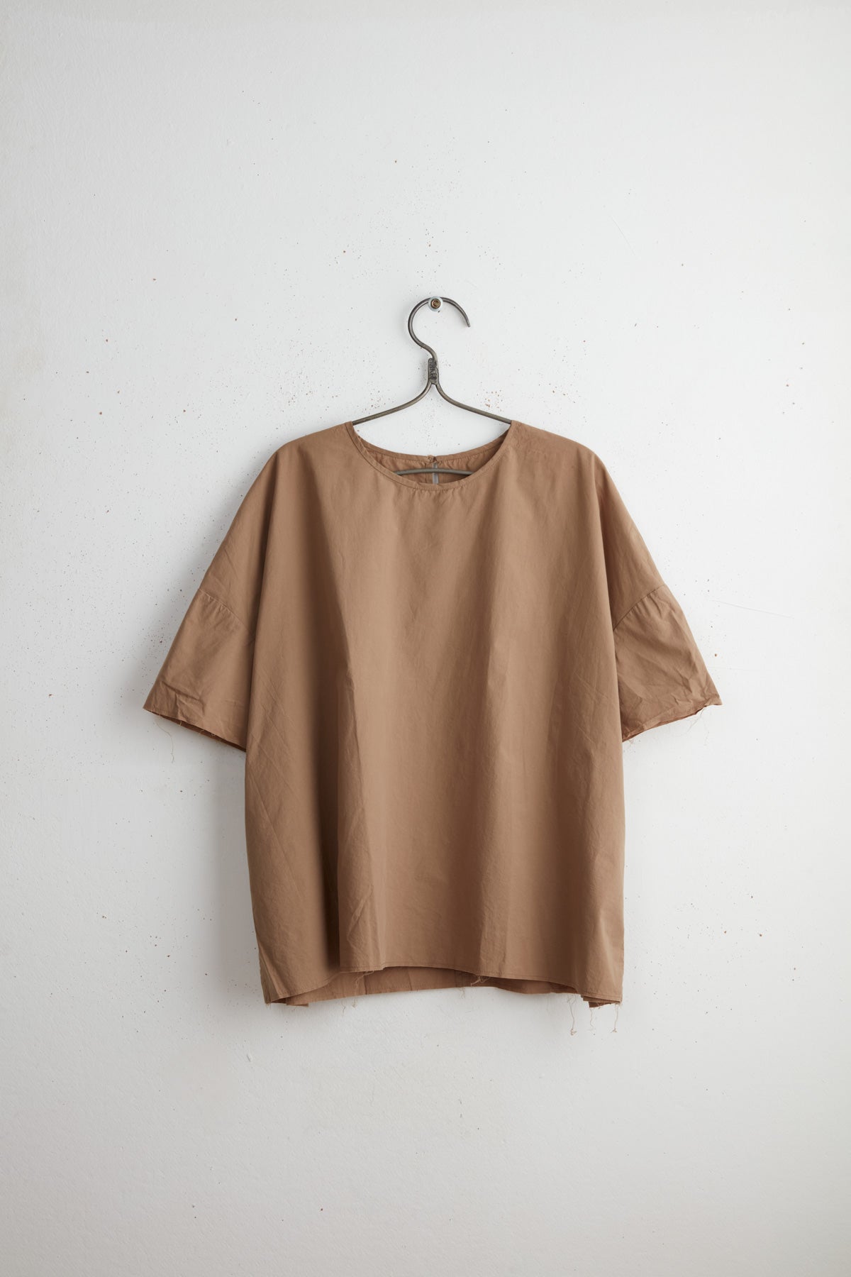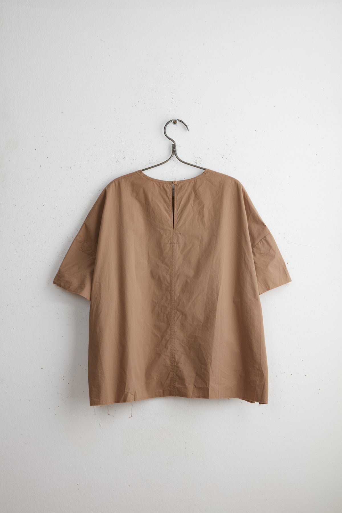 Pollyanna short shirt by Maya Zukerman. The light-weight, flowy silhouette is one of the brand’s signature cuts, now in a short sleeved version. made of 100% Japanese paper cotton, a straight oversized fit with dropped shoulder, crew neck and wrist long sleeves. A raw hem fitting shorter on the front, side slits and a back slit with a hand dyed Dorset button closure.