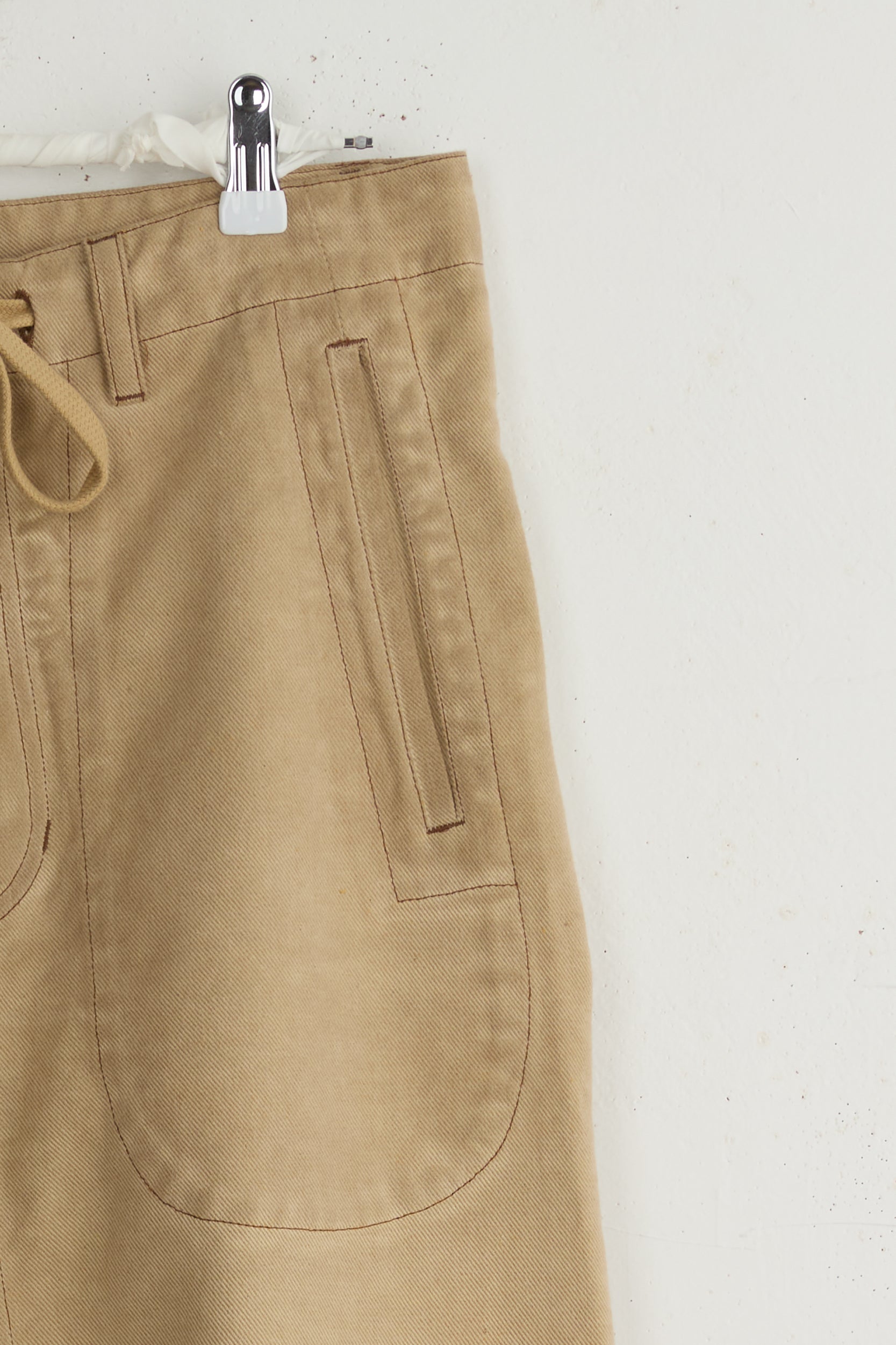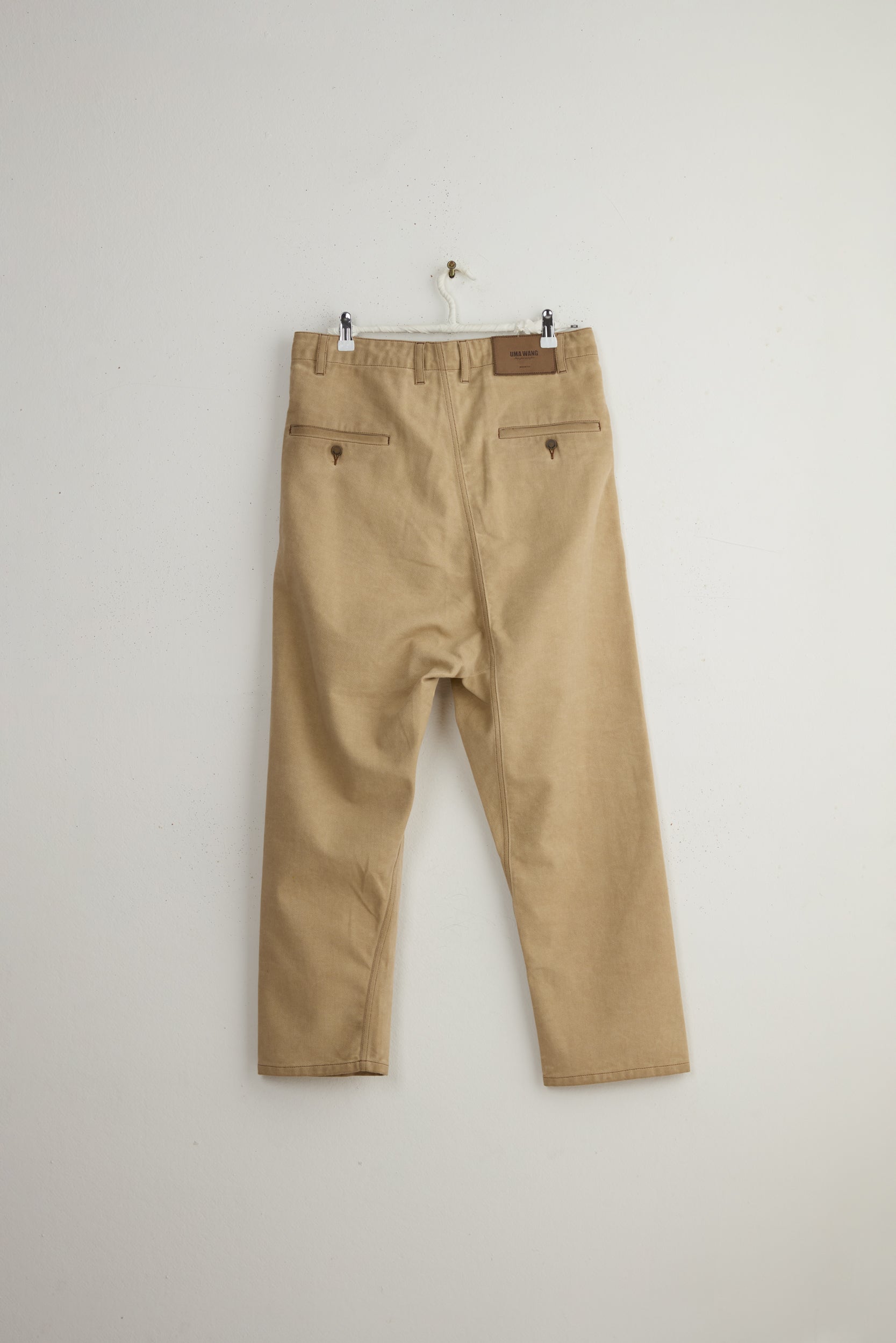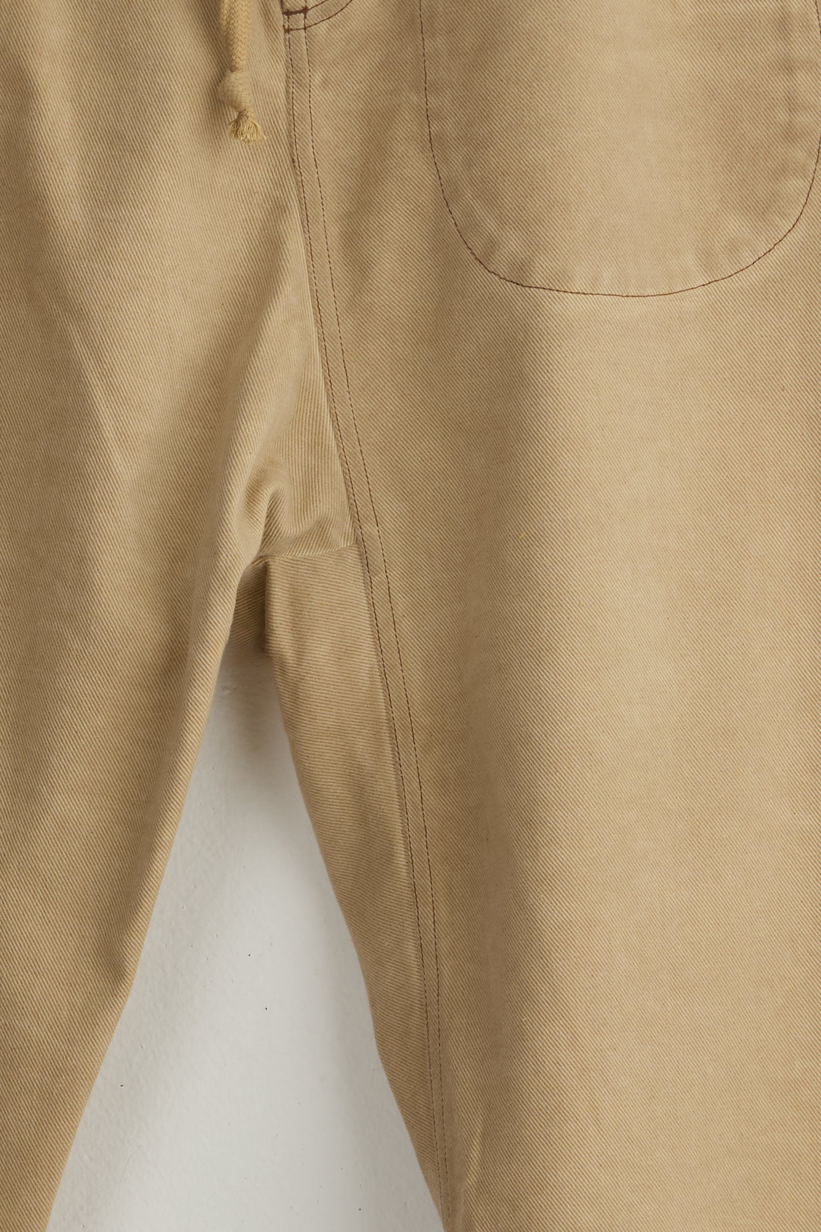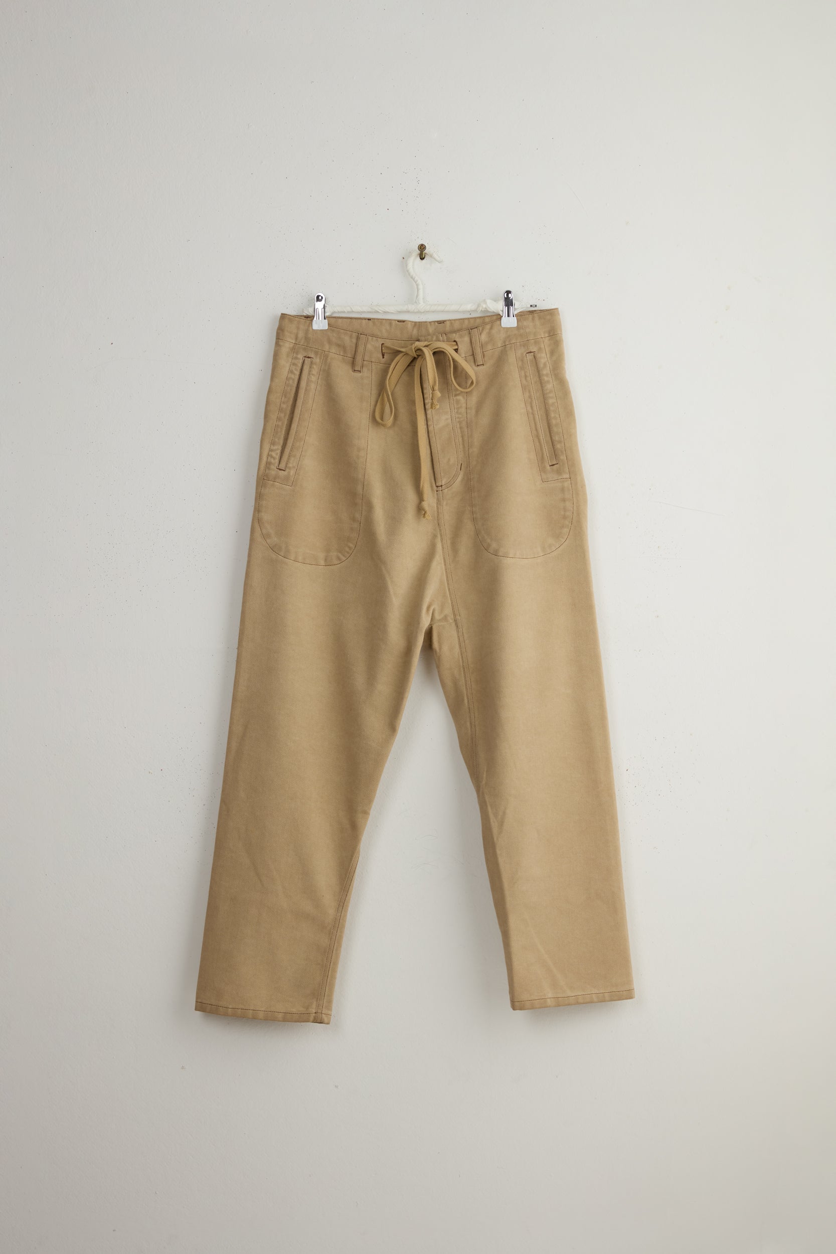 Pigiama pants from the house of Chinese designer Uma Wang. Slouchy and soft denim pants made from mid-weight cotton. Relaxed, tapered legged with a semi-low crotch, two side pockets, two back welt pockets, a buttoned fly, drawstring waist and belt loops.