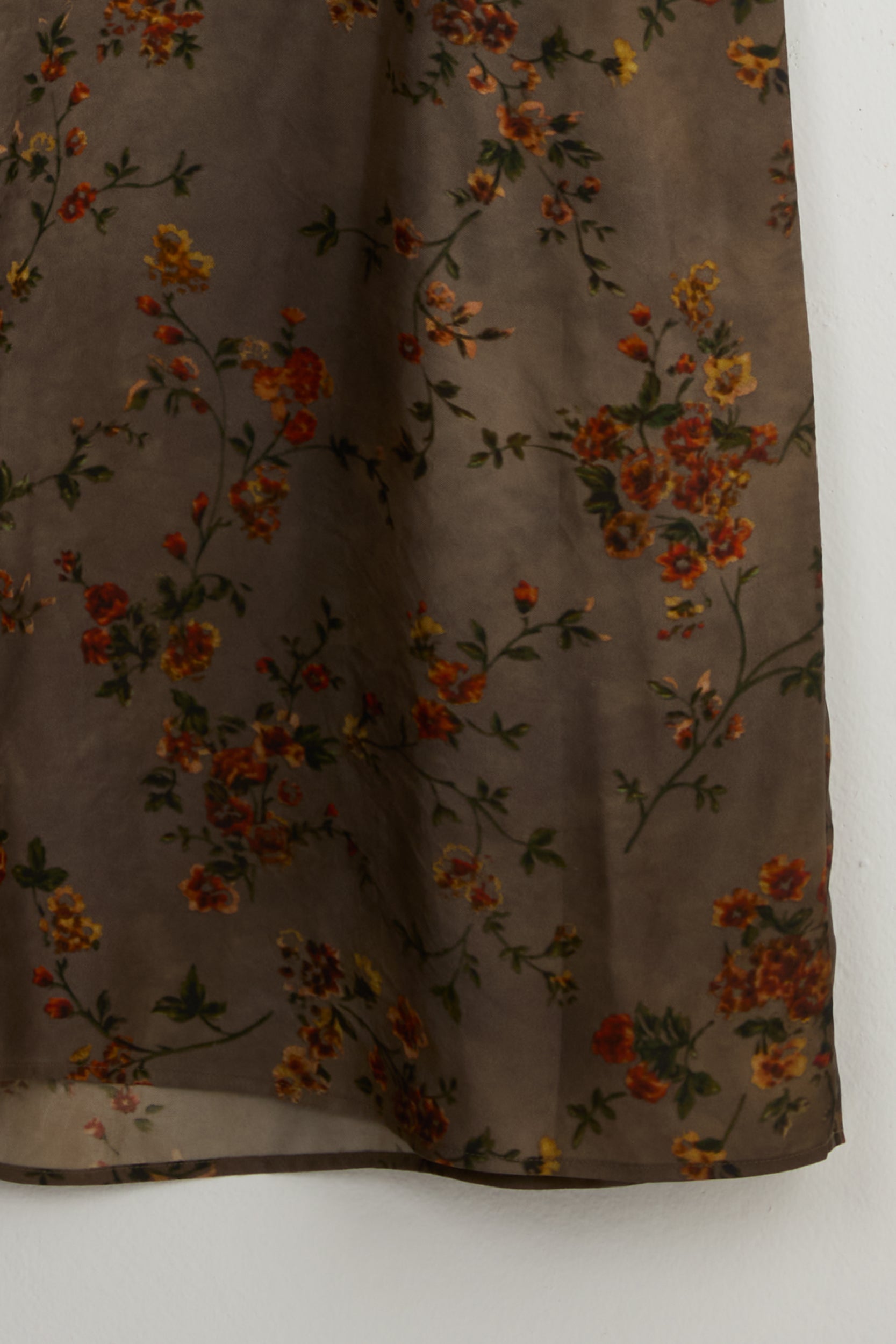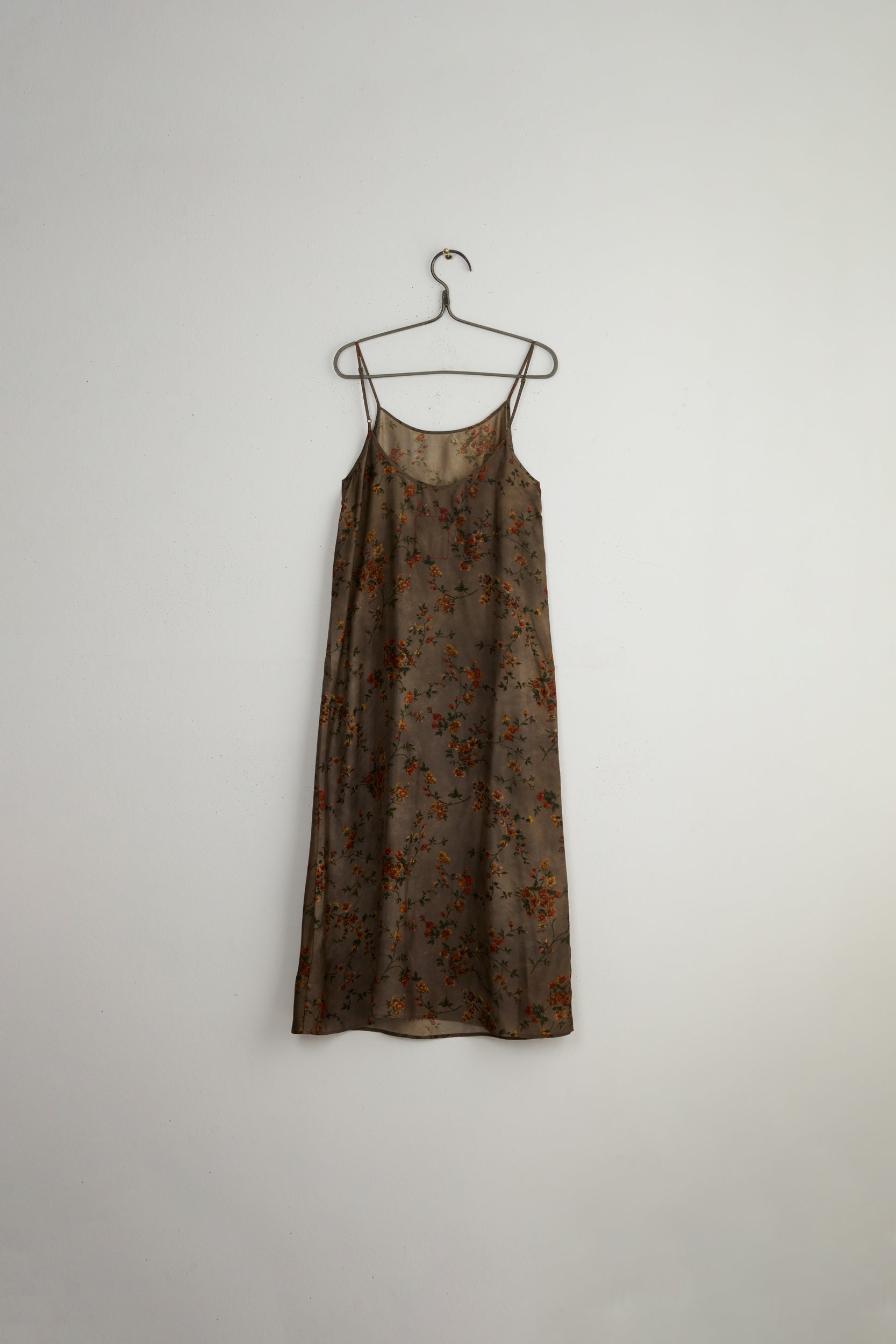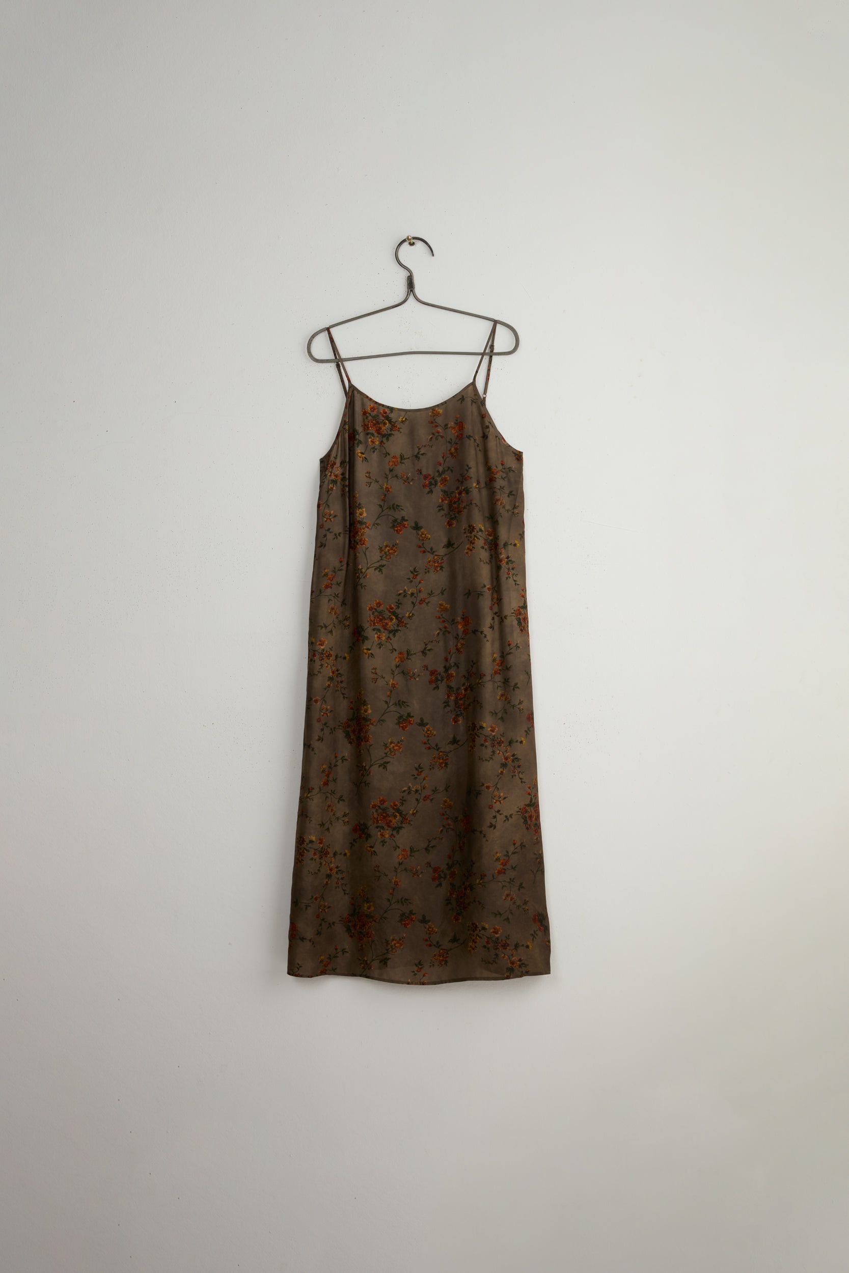 Anaya dress from the house of Chinese designer Uma Wang. Printed full length slip dress, scoop neck, deep back opening, straight hem and adjustable straps. A relaxed fit and a light satin weave fabric.